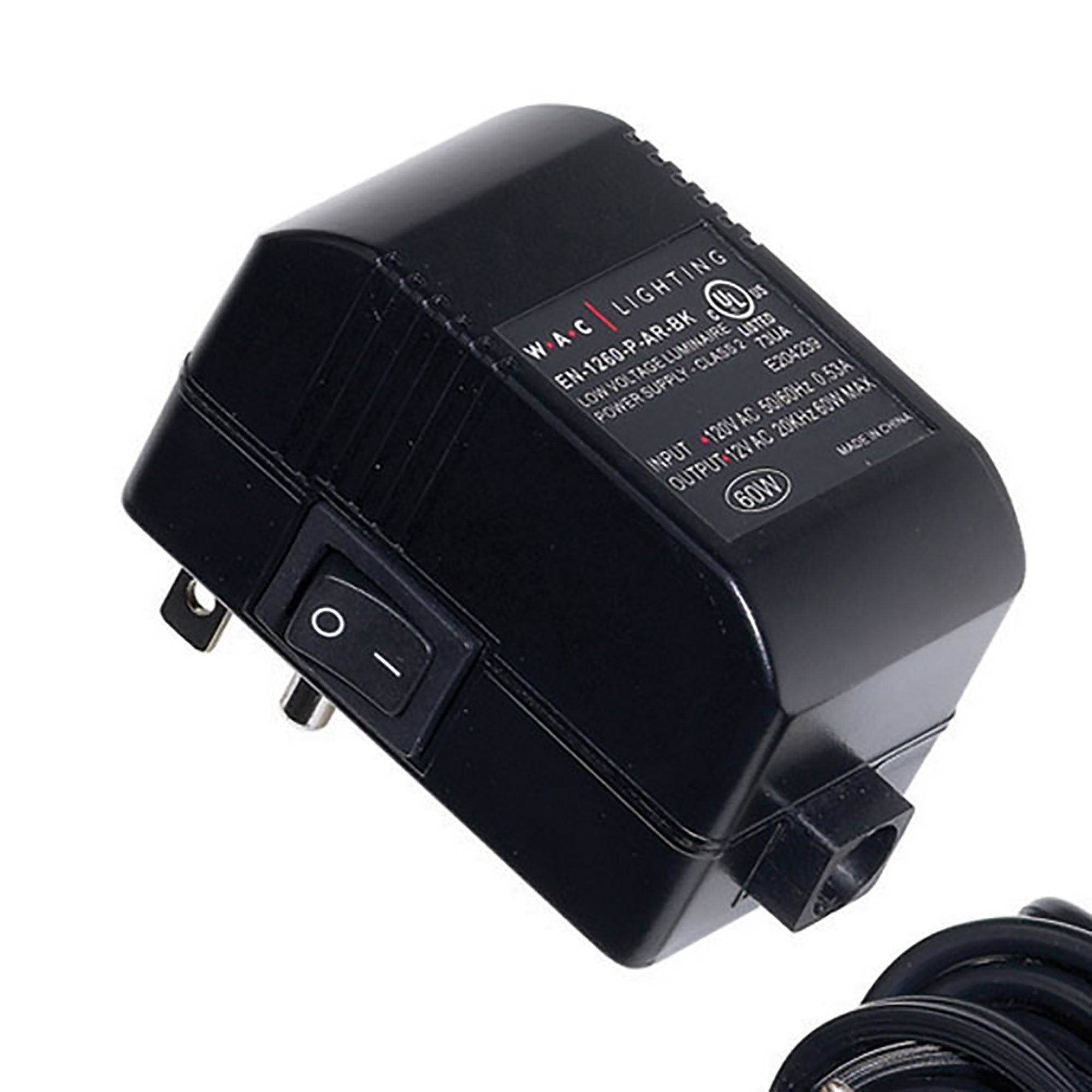 120V/24V 60W Plug-In Electronic Transformer Class 2 Power Supply designed to be used as a plug-and-play style transformer. Contains an on/off toggle switch at the base and a 72 inch detachable cord with an open splice. Inherently protected and power limited, protecting the lighting system from both normal and abnormal short circuits. Built-in auto reset, soft start, short and overload circuit protection features. The soft start delayed start feature extends lamp life by delaying the abrupt inrush current to the lamp. Ideal for WAC Lighting under cabinet systems.