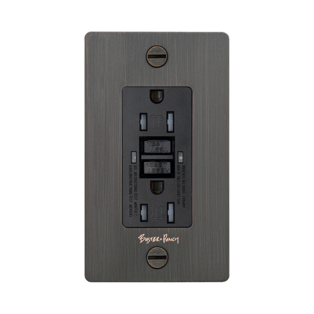 Streamline lighting performance with the 1G Duplex GFCI Outlet from Buster + Punch. Created to safely detect and interrupt surges, this outlet adds advanced functionality. Metal construction is rugged and precise, with solid metal coin screws affixing this outlet securely.