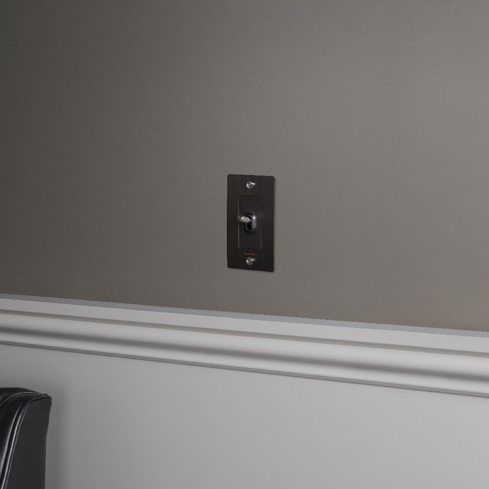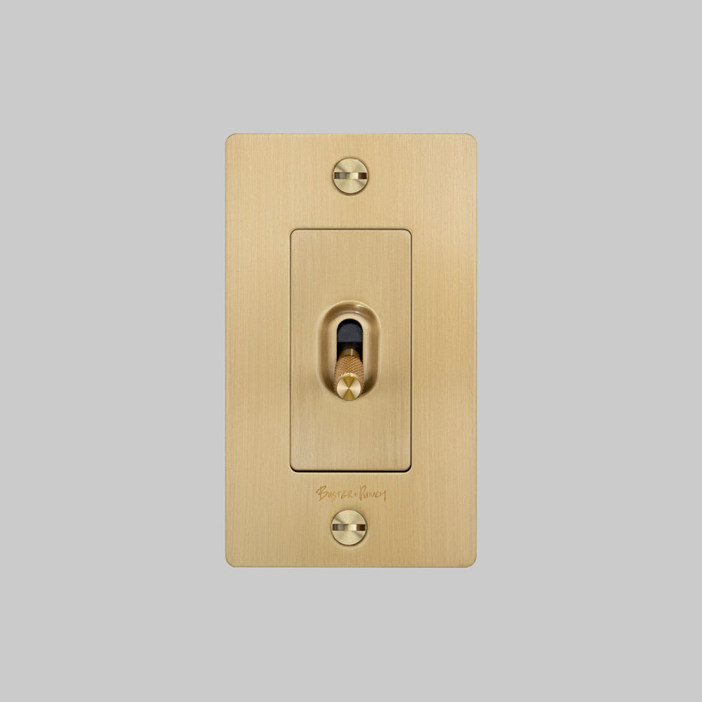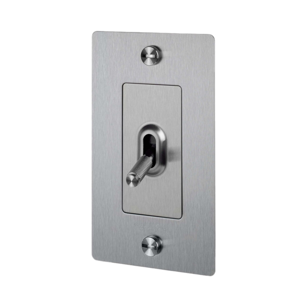 Easily operate electrical lighting and appliances with the 1G Toggle Switch from Buster + Punch. A proprietary textural design adds elegance to a toggle arm. This unit features construction of solid anodized metal.