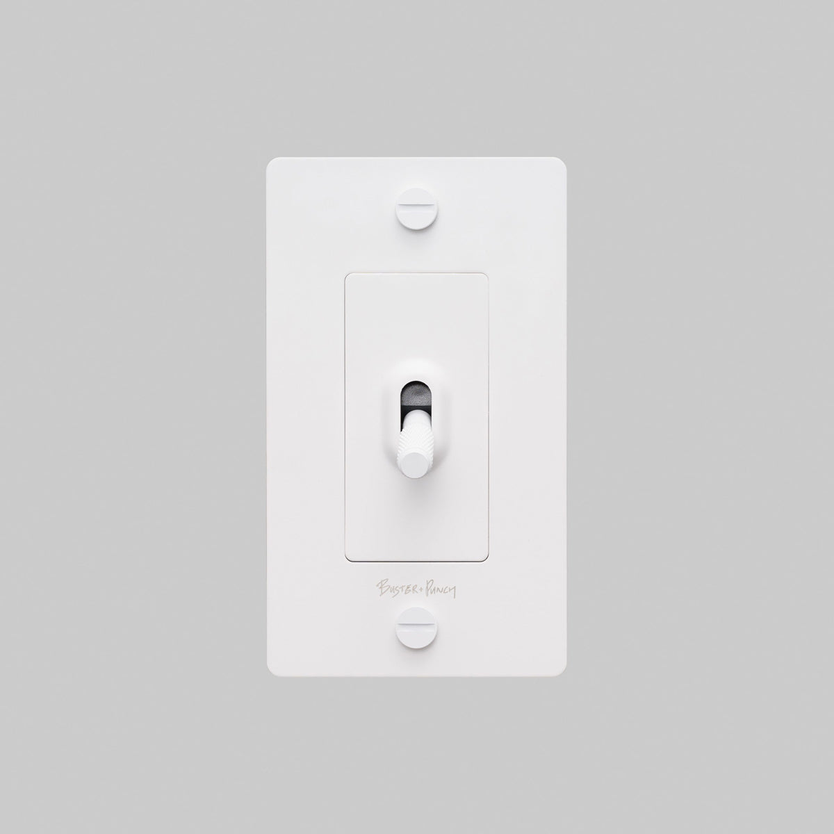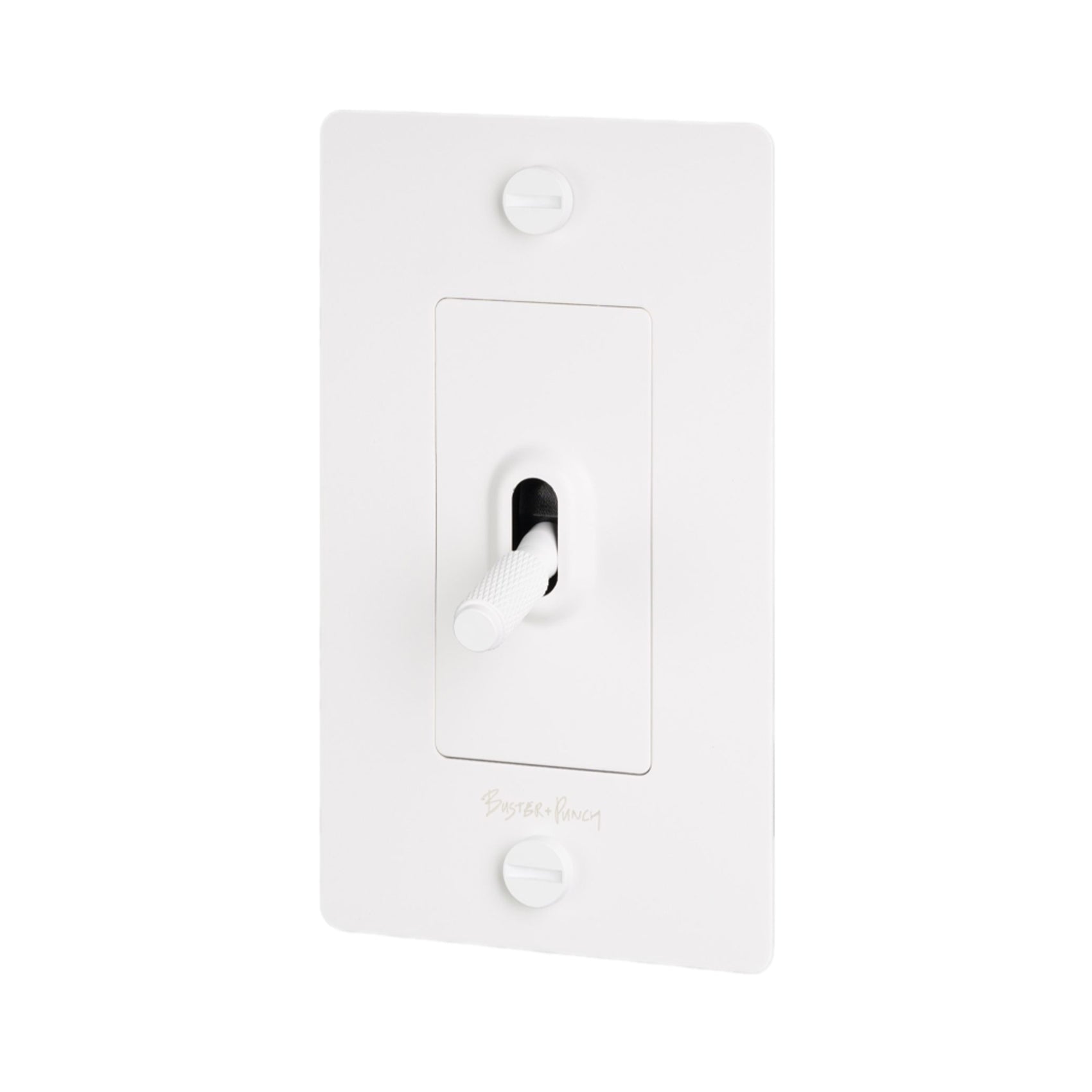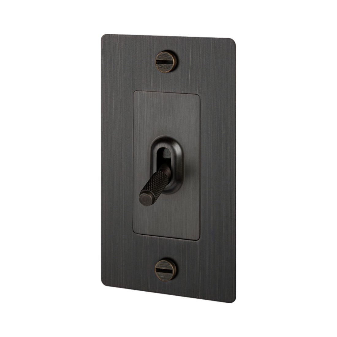 Easily operate electrical lighting and appliances with the 1G Toggle Switch from Buster + Punch. A proprietary textural design adds elegance to a toggle arm. This unit features construction of solid anodized metal.