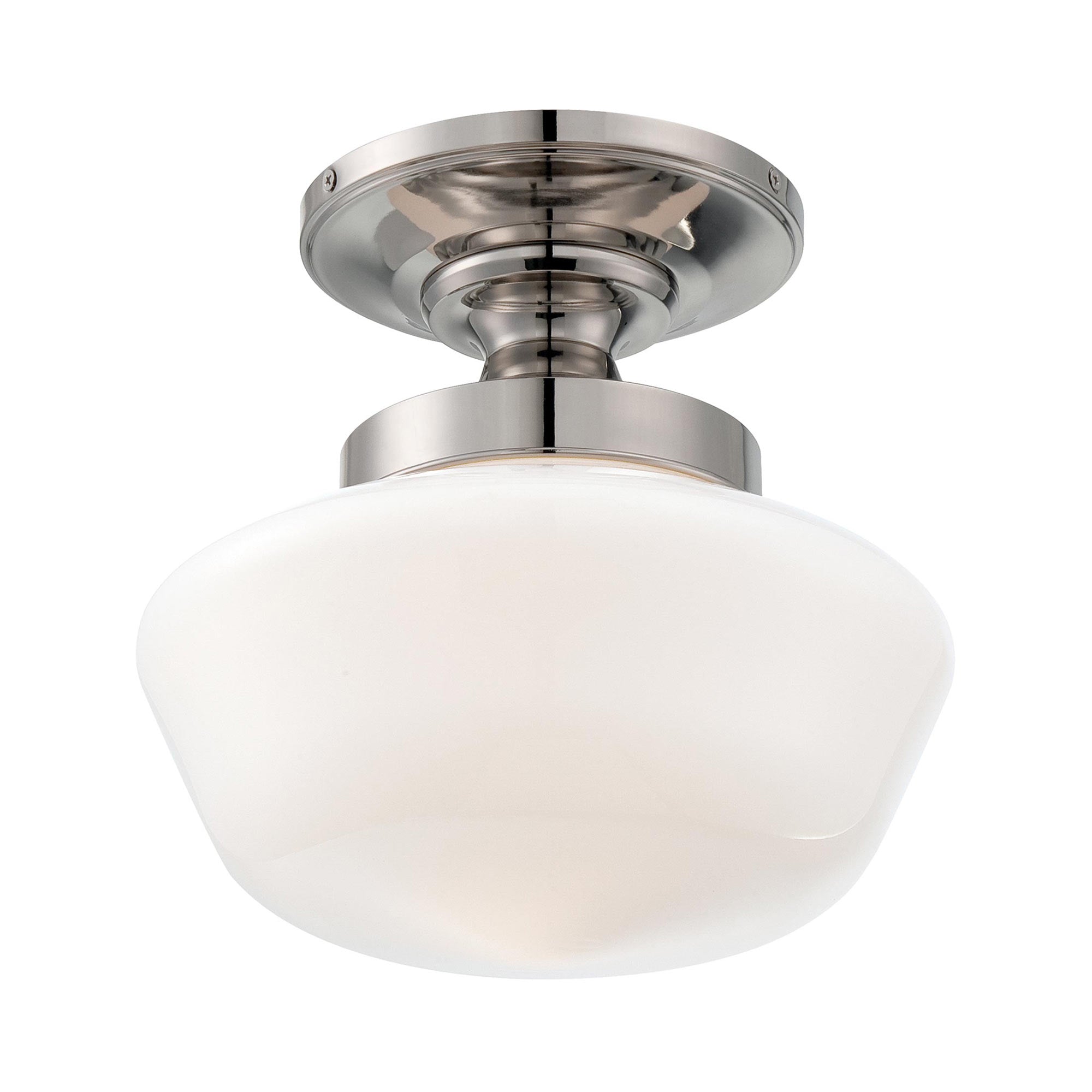 Embrace the critical impact of silhouetting in a light fixture that delivers a statement-making style. The 2255 Semi Flush Mount Ceiling Light from Minka Lavery, noting ornate metal framing. A shapely shade created of opal schoolhouse glass harkens back to a past era, making this light ideal for a transitional design scheme.