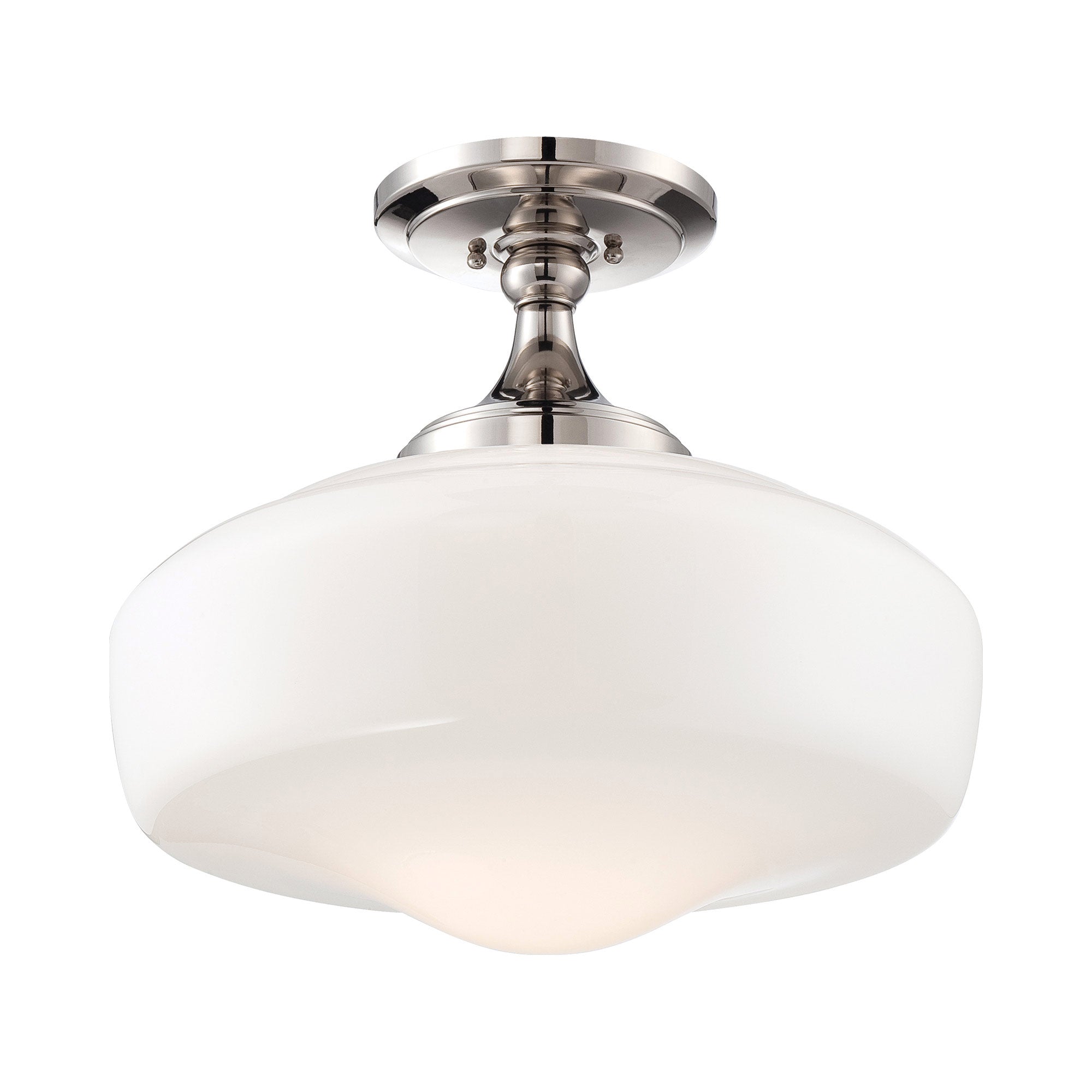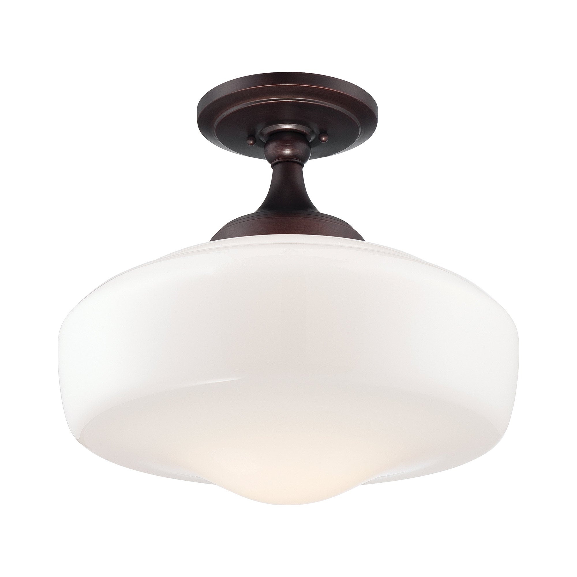 An emphasis on glam artisan style converts to an oversized shapely shade as this light fixture becomes a showstopper in a kitchen, foyer, or dining room. The 2259 Semi Flush Mount Ceiling Light from Minka Lavery dabbles in a gallery rendition of farmhouse style, with chic metal framing and a high-profile shade fashioned of opal schoolhouse glass.