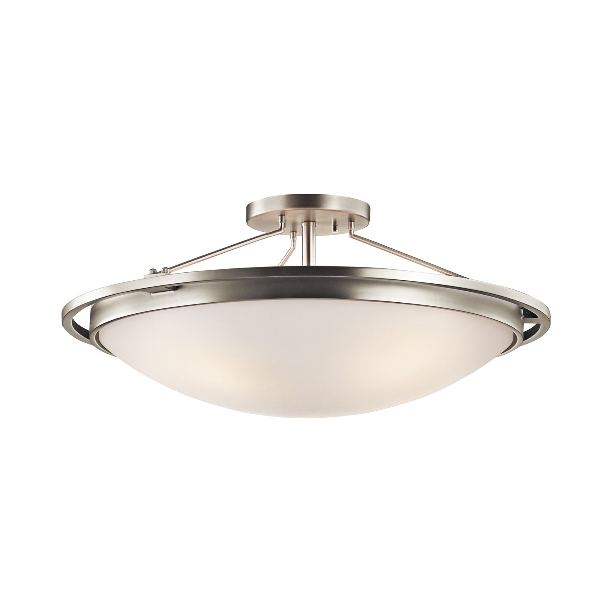 23.25" Semi Flush Mount Ceiling Light features a polished, Brushed Nickel finish and clean, Etched White Glass that will effortlessly complement your home.