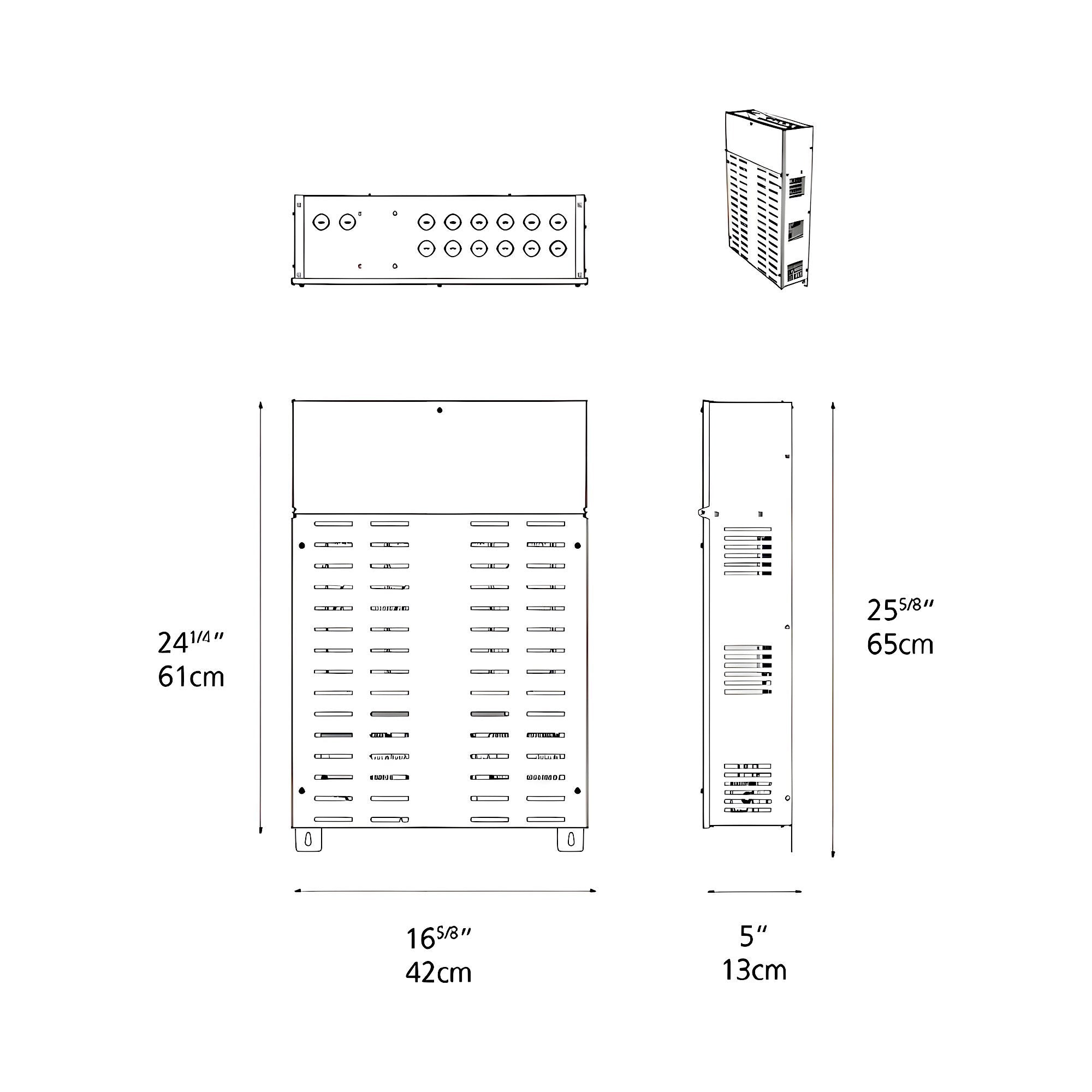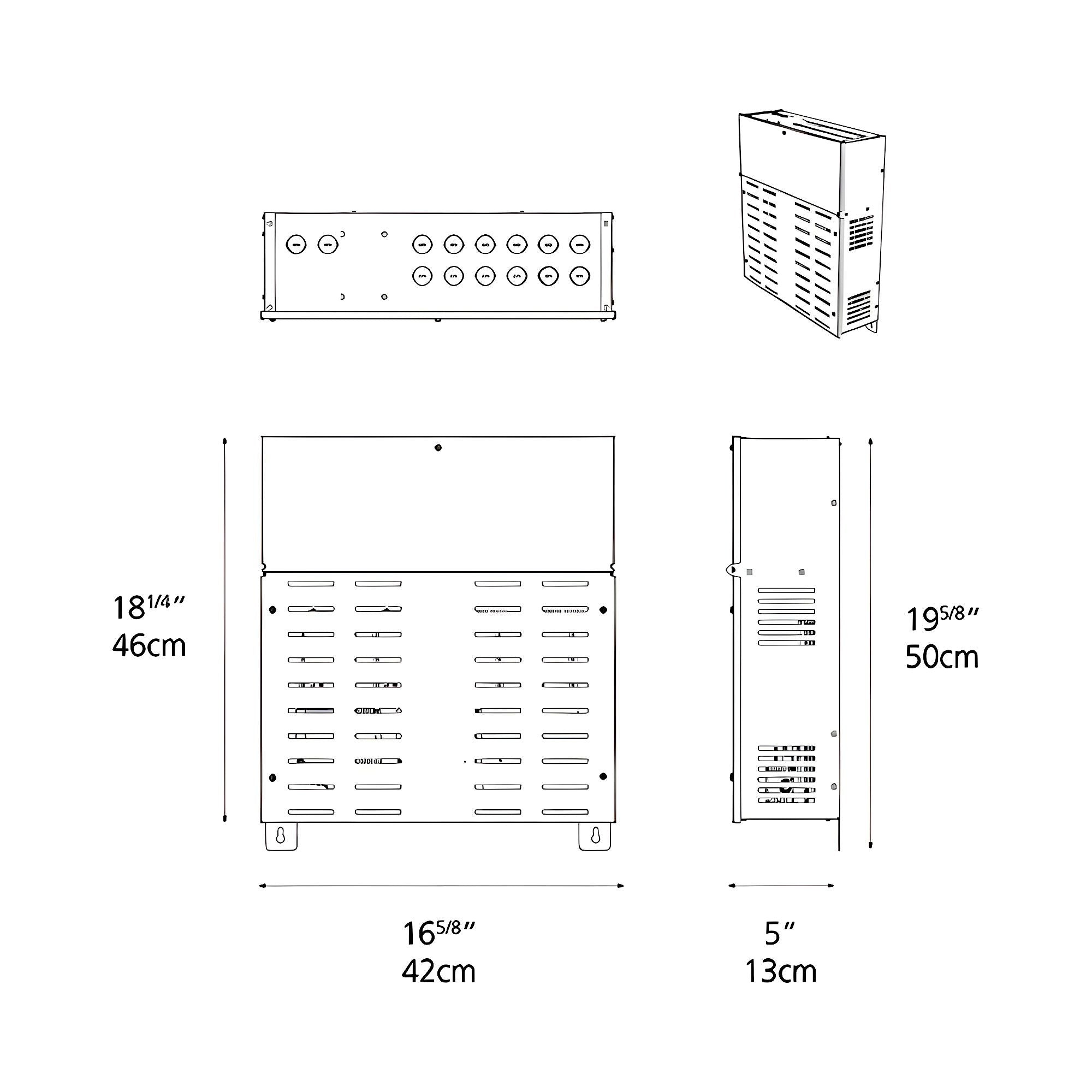 - 5-Output, 6-Output: 16.63"W X 25.63"H
