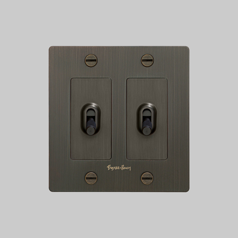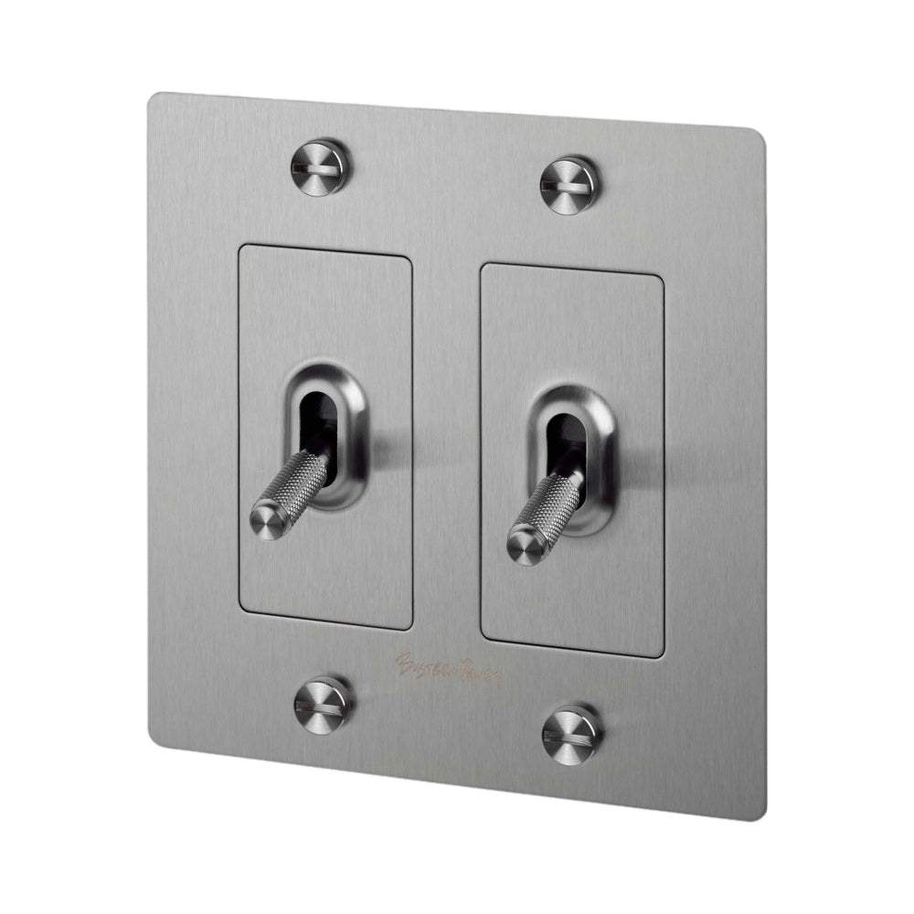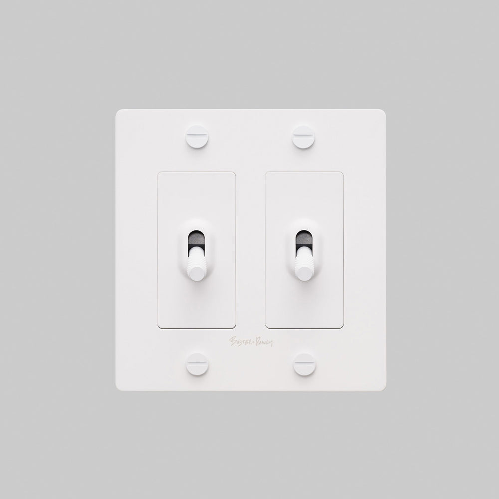 Control a pair of light fixtures or other electrical devices with the 2G Toggle Switch from Buster + Punch. Smooth metal construction with coin screw mountings show the quality of this dual switch outlet. Seamless operation follows toggling of arms with proprietary textural design boosts.
