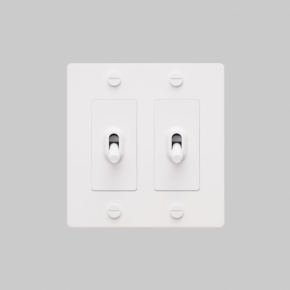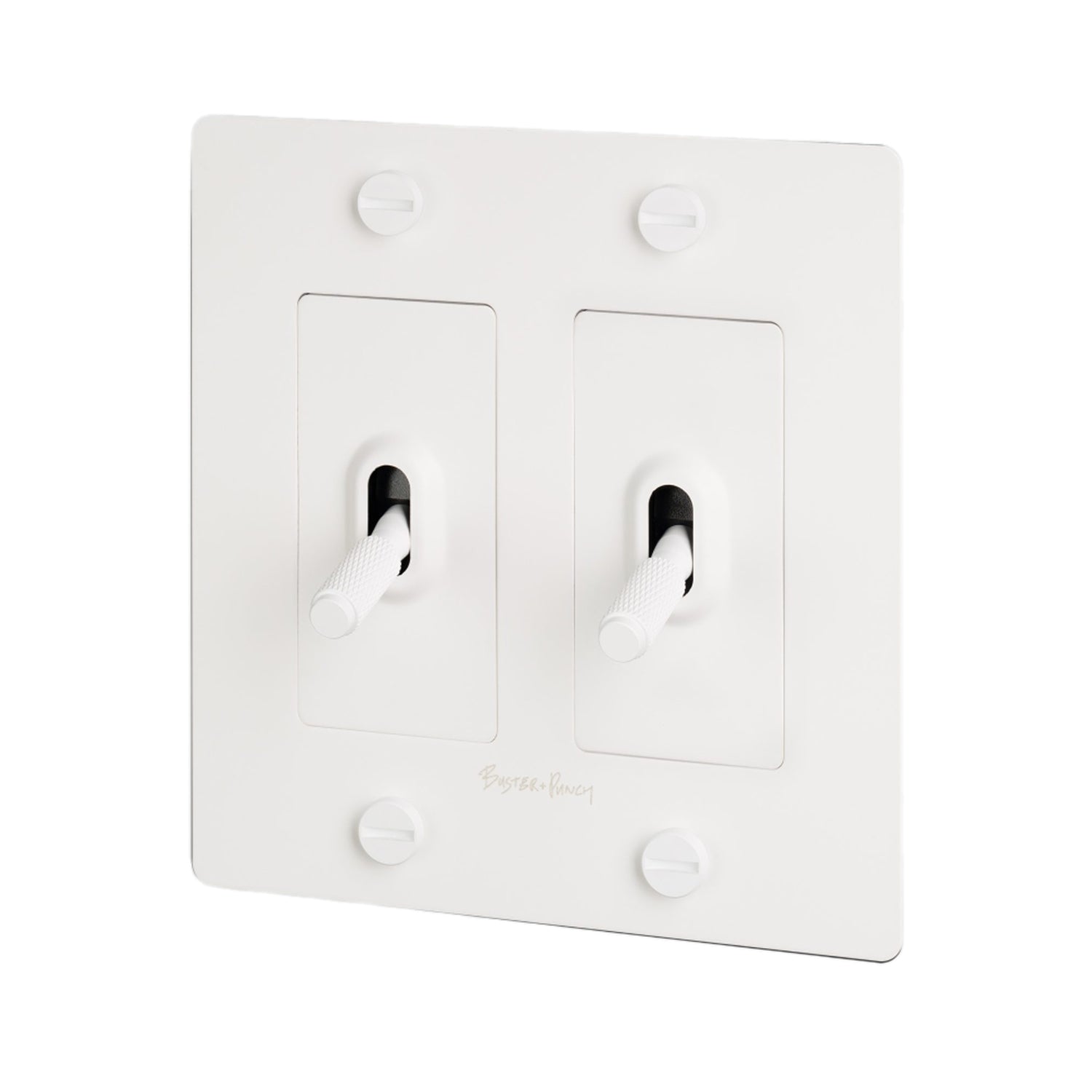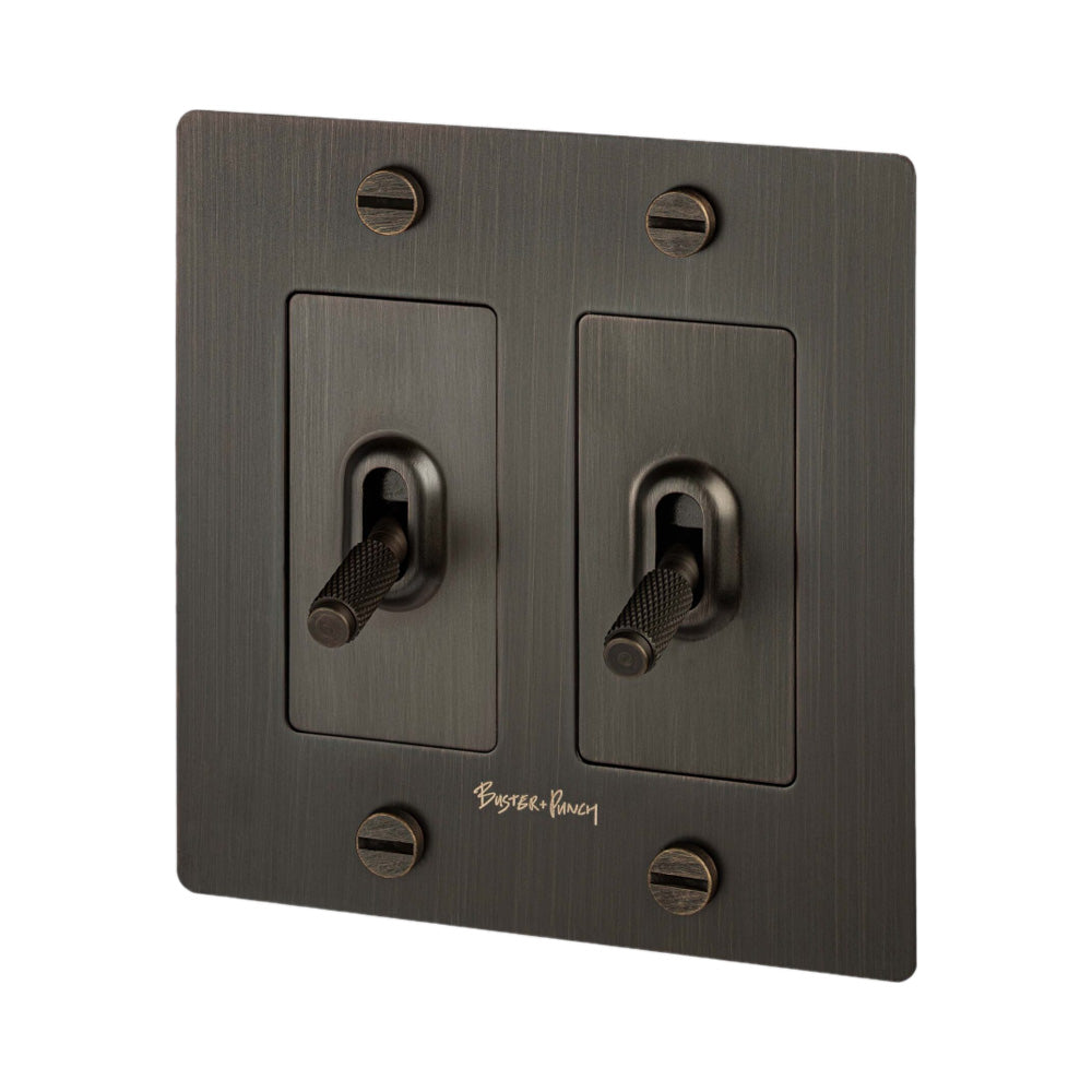 Control a pair of light fixtures or other electrical devices with the 2G Toggle Switch from Buster + Punch. Smooth metal construction with coin screw mountings show the quality of this dual switch outlet. Seamless operation follows toggling of arms with proprietary textural design boosts.
