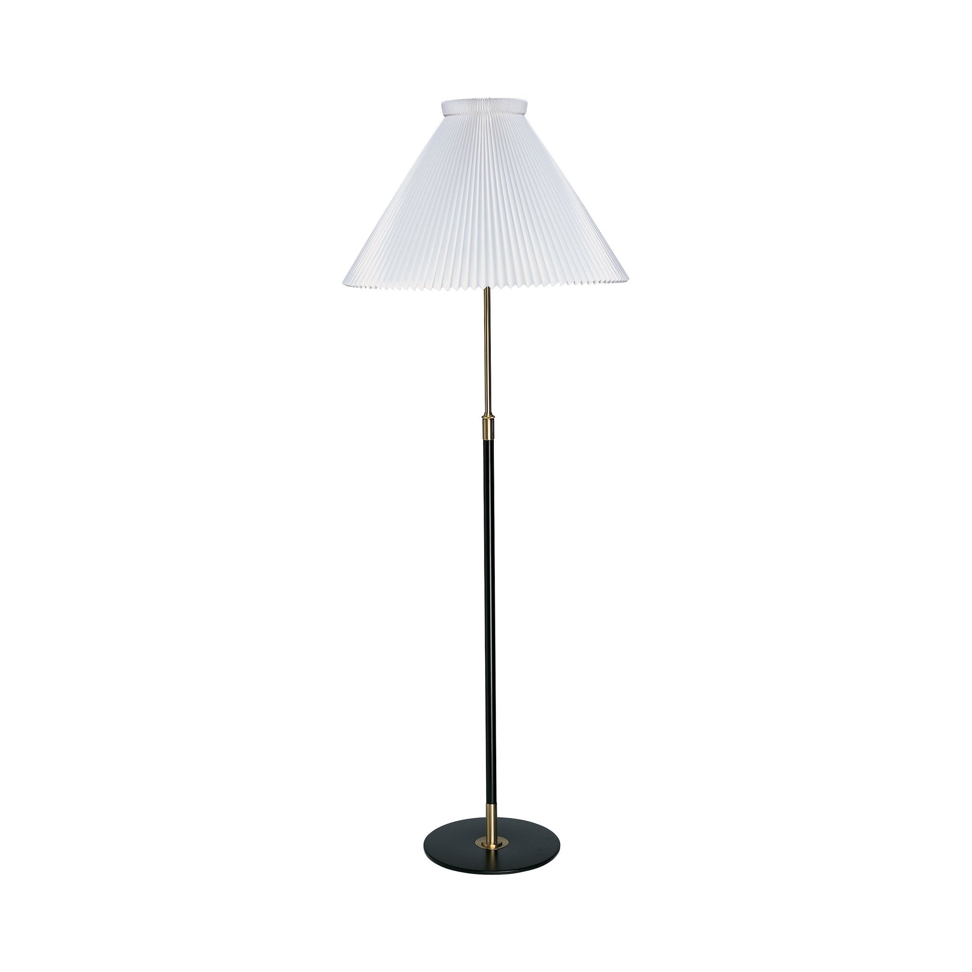 Count on a traditional design with light updates to illuminate a living room or bedroom space in style. The Le Klint 351 Floor Lamp offers an iconic metal frame and circular metal base, with a dual finish palette creating a chic look. Topped with a crowned empire shade with the sculptural impact of an accordion design, this lamp toes the line between pedestrian and artisan.