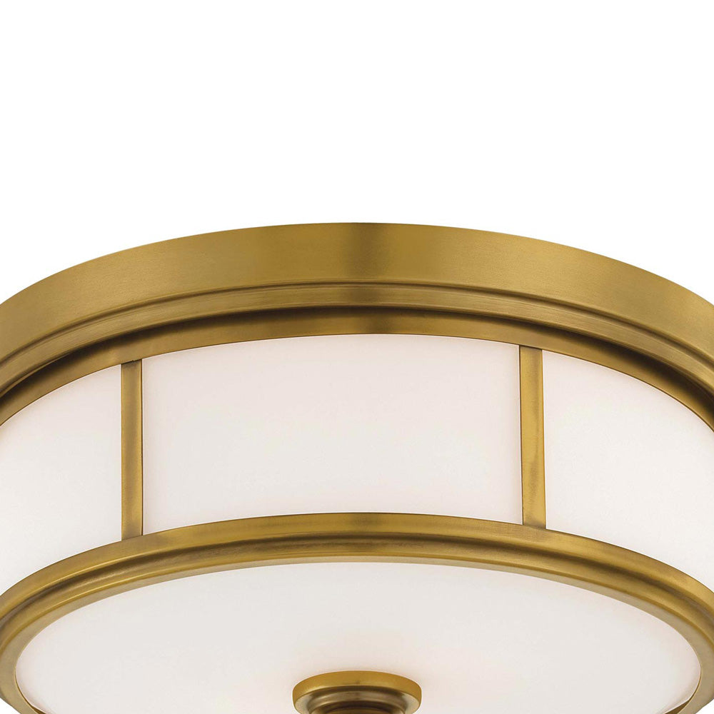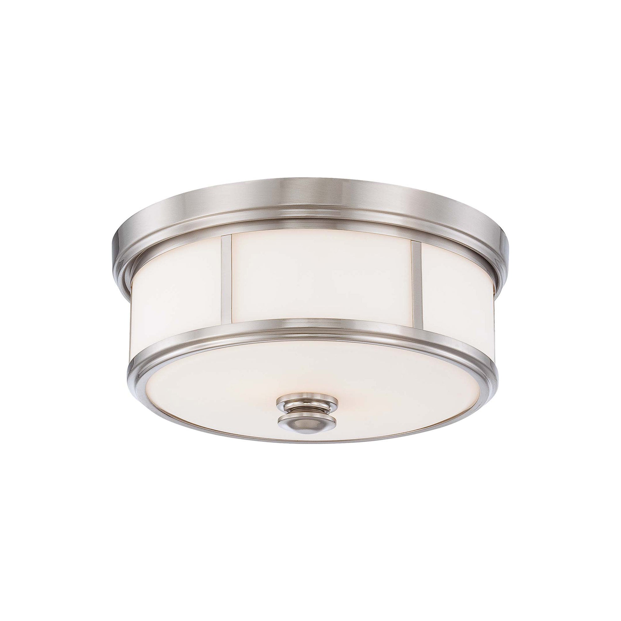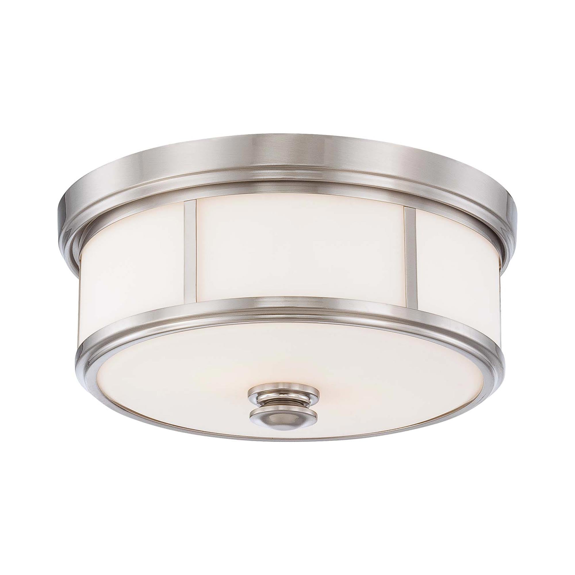 The 636 Flush Mount Ceiling Light from Minka Lavery represents a classic mid-century motif, drilling down to basics with a sense of organic style. Enhance a kitchen or foyer with an iconic fixture blending gleaming metal with glam opal glass, as space separation through metal strips and stacked framing elements upgrade the design factor of a light with personality.