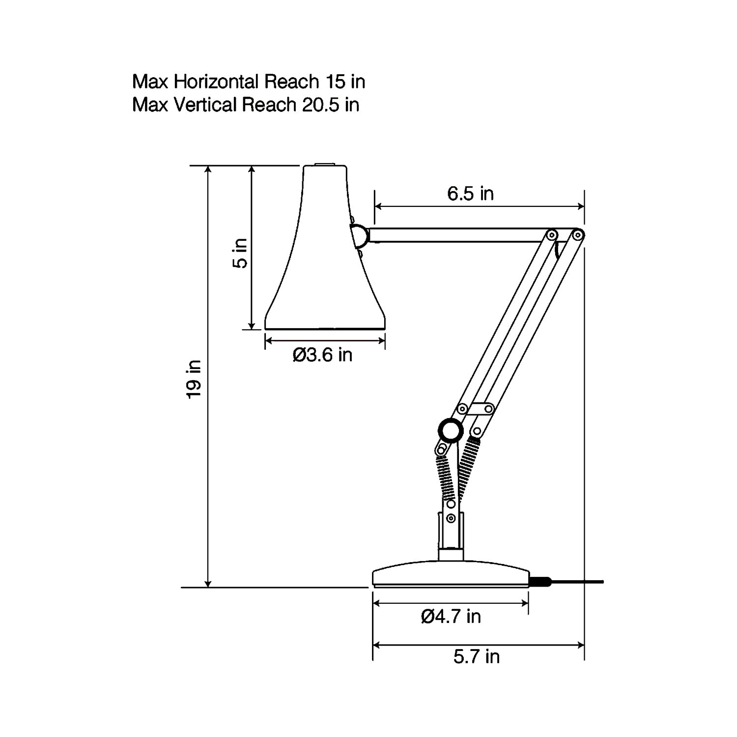 - Dimensions: 15"W X 20.5"H; 59" Cord Length