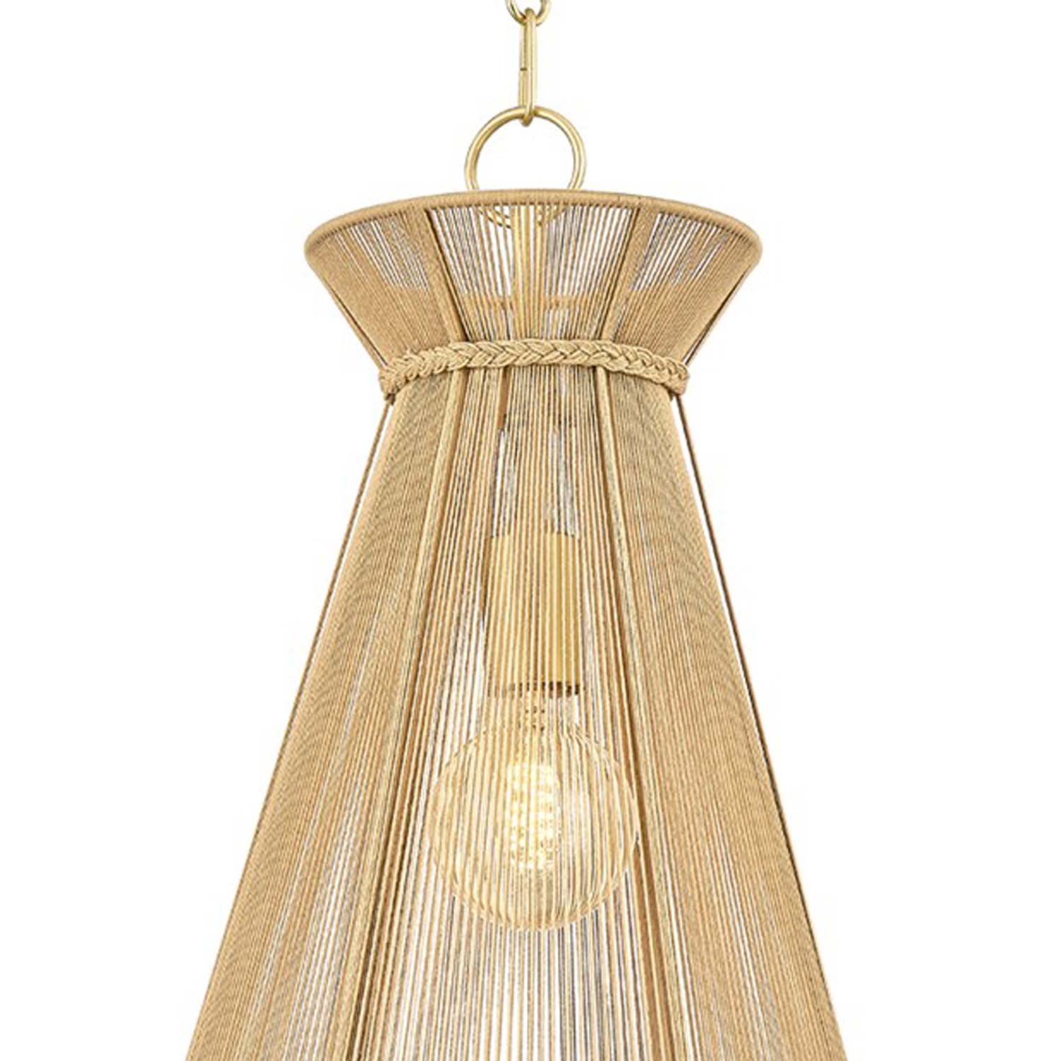 Soft, casual coastal style is inherent in a fixture design that adds a dose of sophistication. With a shapely silhouette and organic feel, the Aaliyah Pendant Light from Mitzi borrows from nature and art to craft a light source with character. A scalloped bottom and panel framing stand out in a shade fashioned of hand-strung cotton strands and bound by refined hand-cinching.