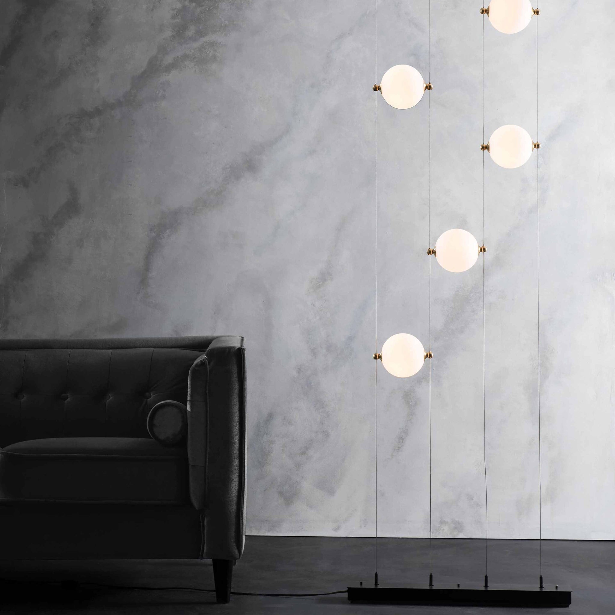 Innovative and engaging, the Abacus Floor to Ceiling Plug-In LED Light from Hubbardton Forge is an award-winning design that sets the tone in a sophisticated living room.
