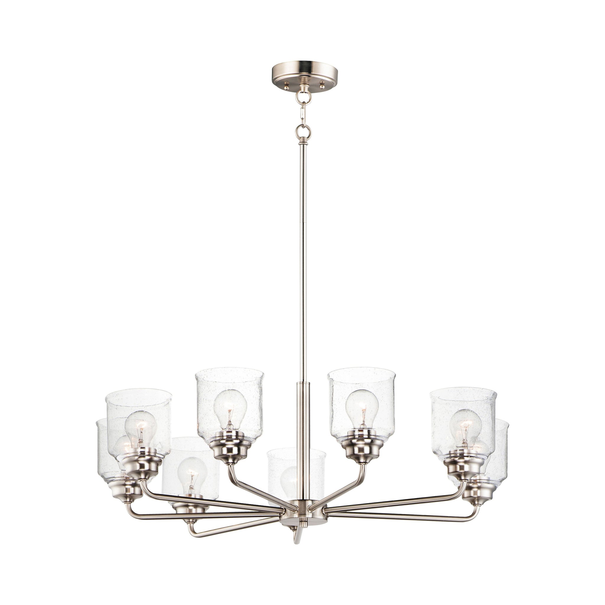 - 8-Light: 32"D X 8.5"H; 55.5" max height
