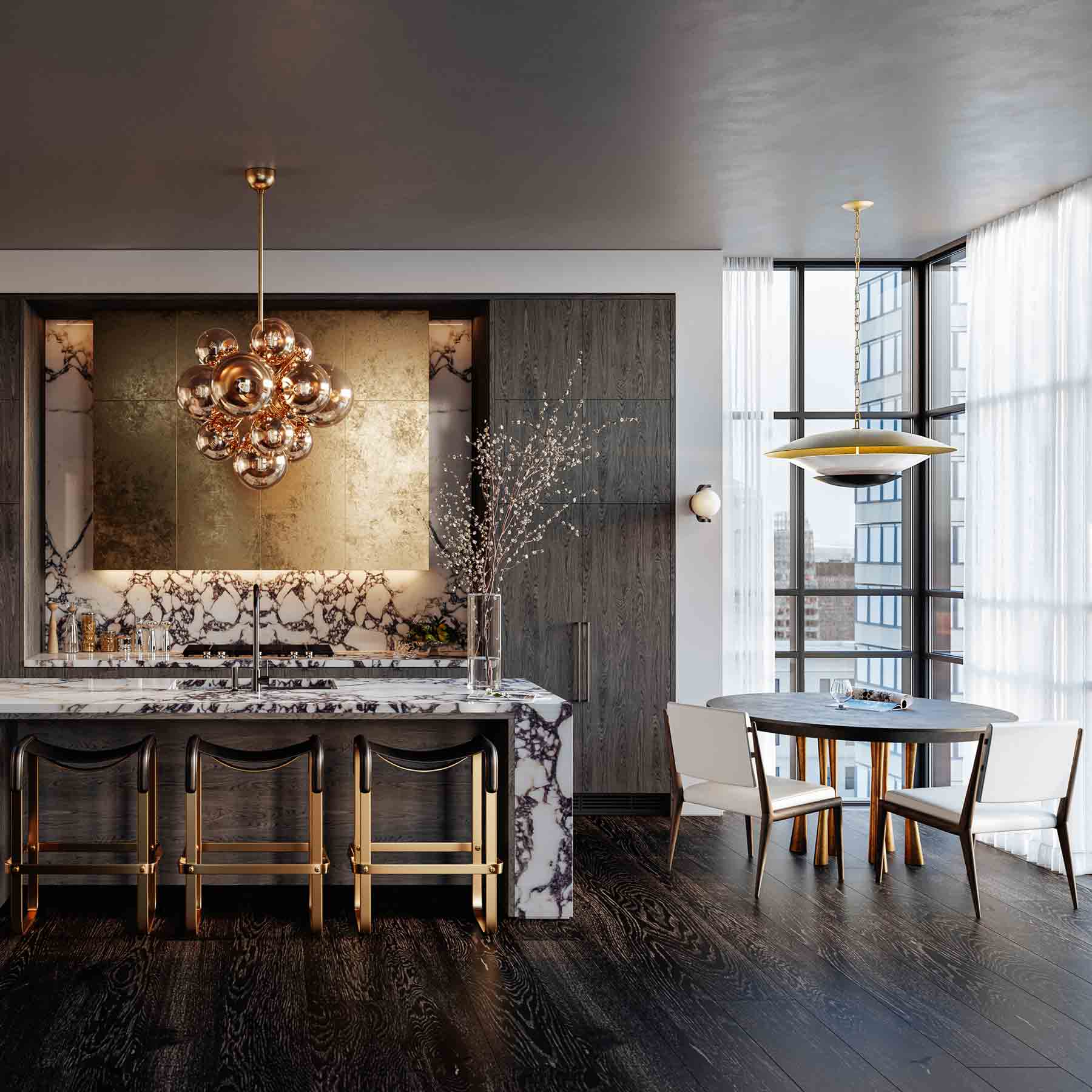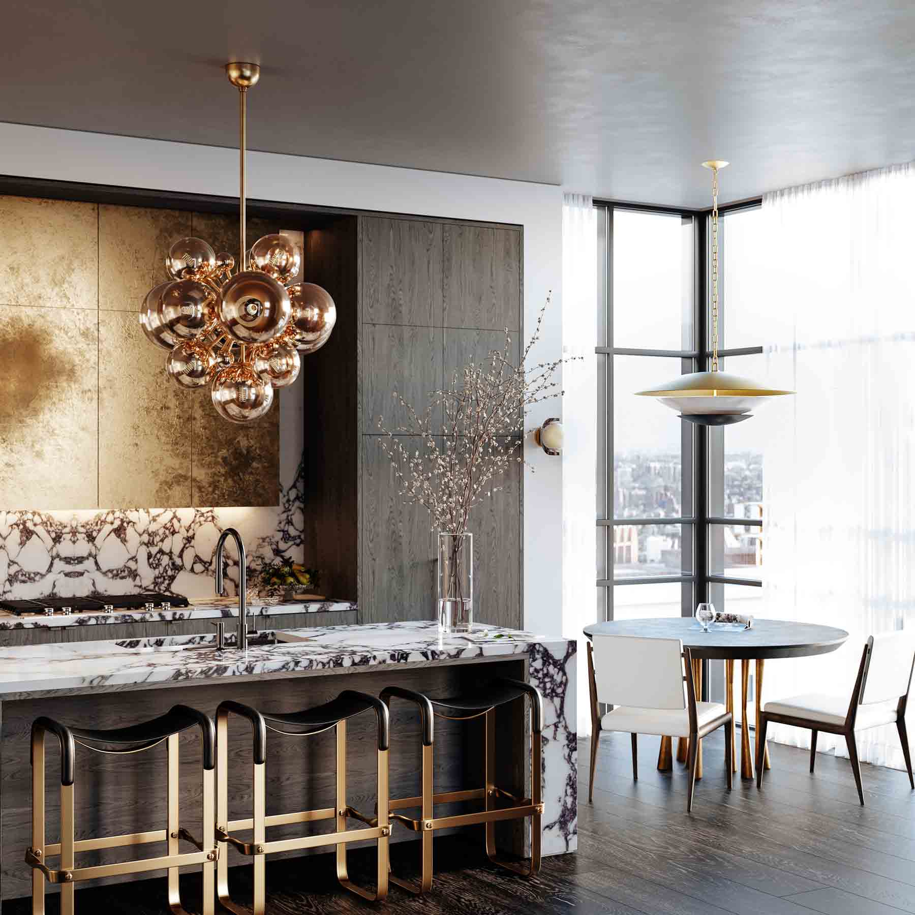 Corbett's intricate designs and hand-applied finishes set its lighting fixtures apart. Whether you choose a Corbett wall sconce or chandelier, these unexpected pieces command attention and look captivating from every angle. The City Lights team will collaborate with you to determine the best style and placement to optimize your lighting functionally and to showcase Corbett's designs in your space. | ![]() |