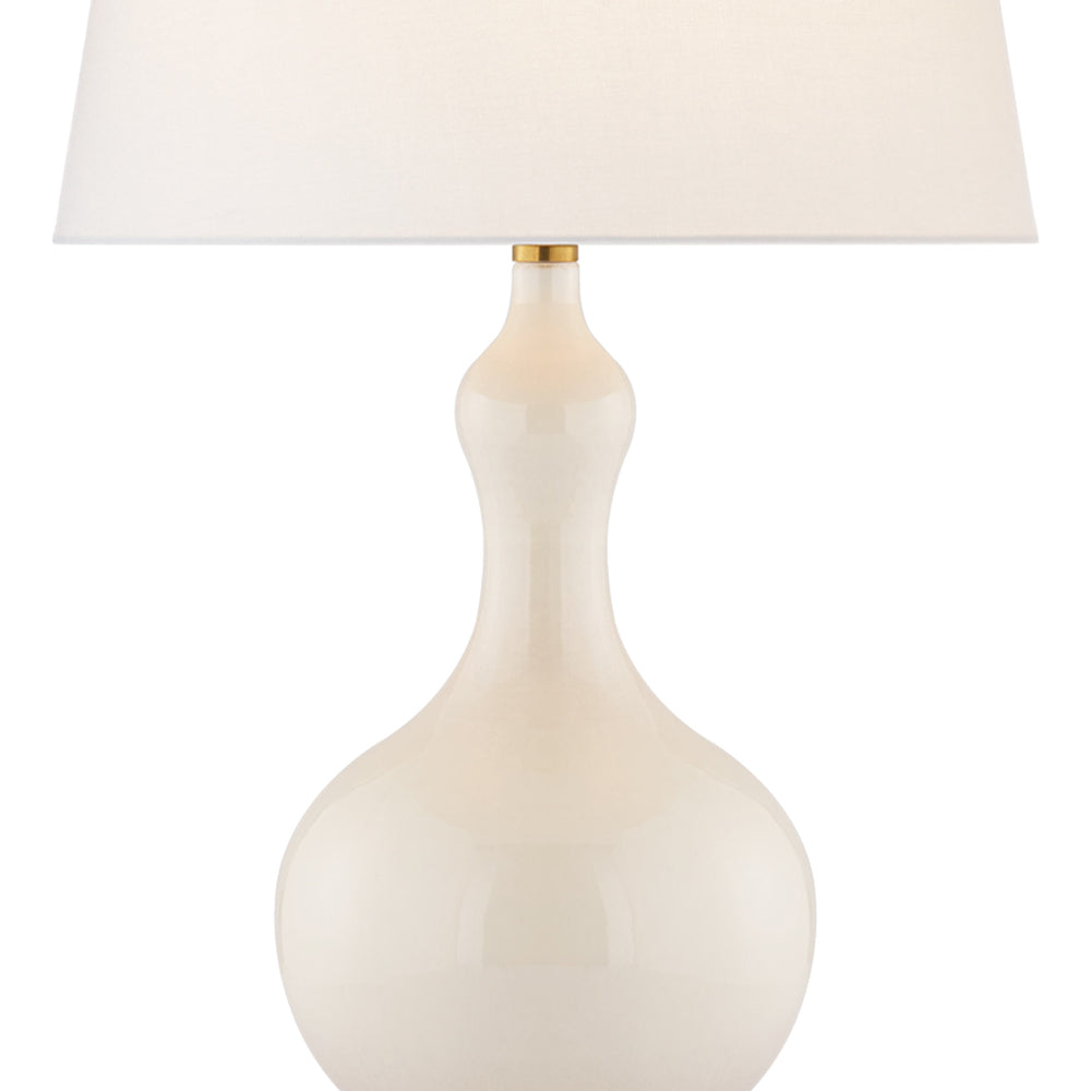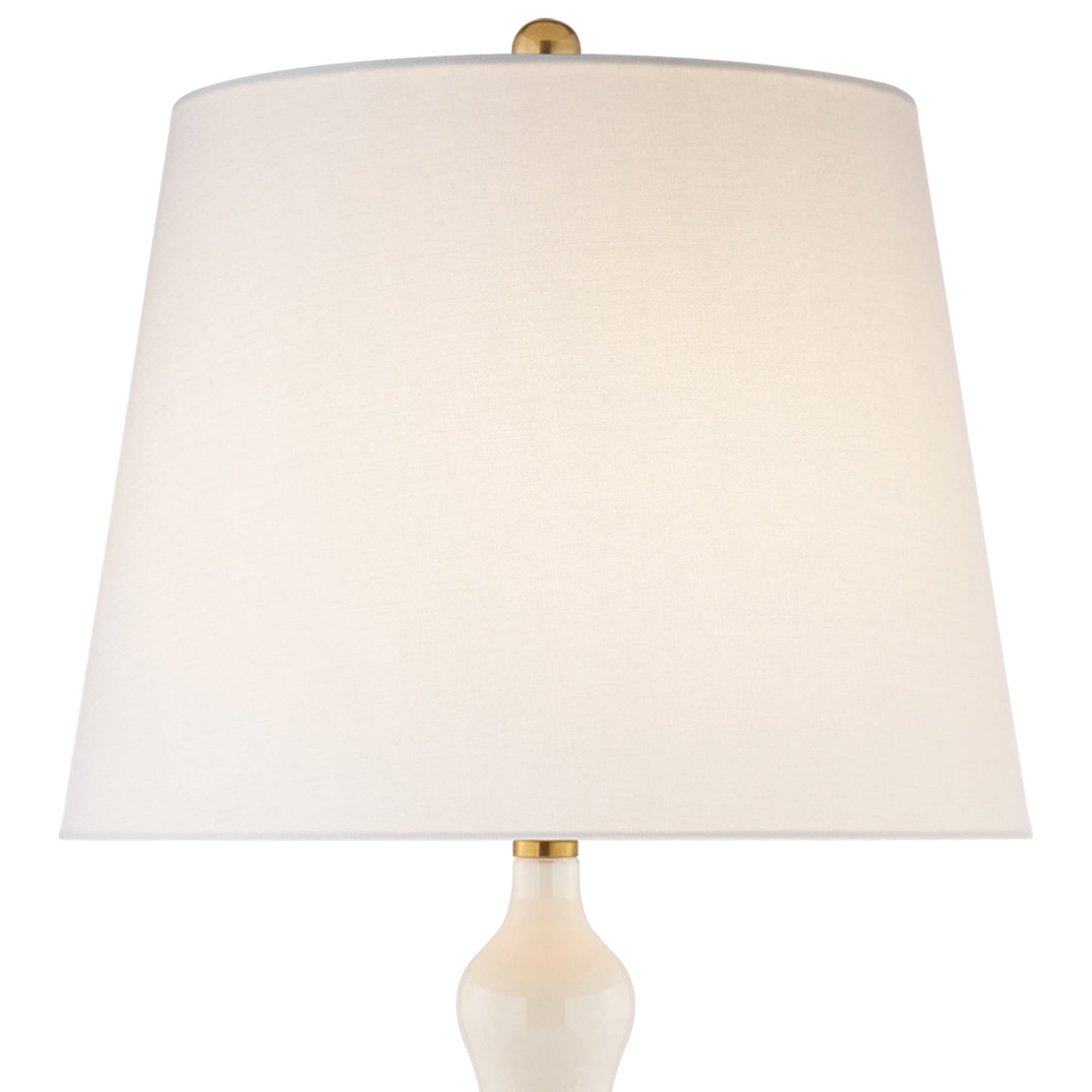 The Addison Table Lamp from Visual Comfort Signature incorporates elegant traditional elements to embellish an easy living main room, entryway, or bedroom. Creamy ivory reactive ceramic glaze offers a shiny surface, as its shapely body delivers an exquisite design. A coordinating linen shade and metal base complete the stylish, romantic look of a classic light source.