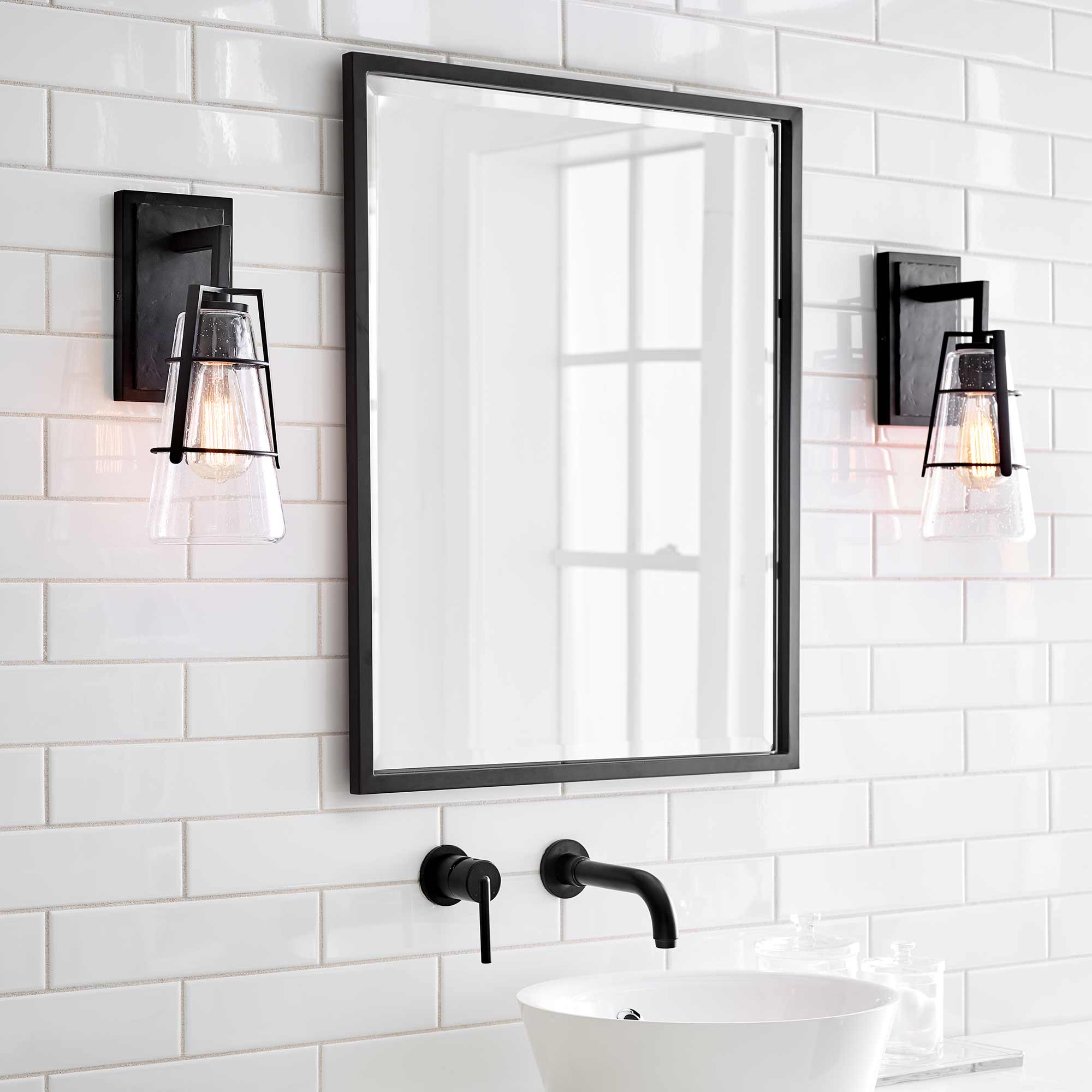 The Adelaide Bath Wall Light from Generation Lighting brings an ambient glow with a seed shade.