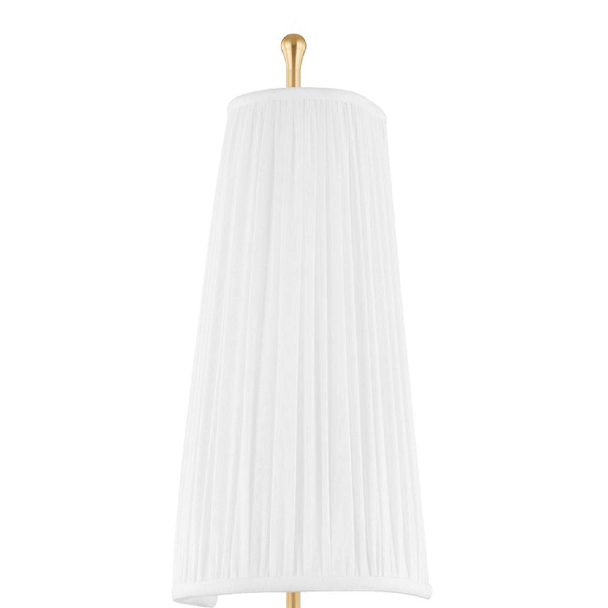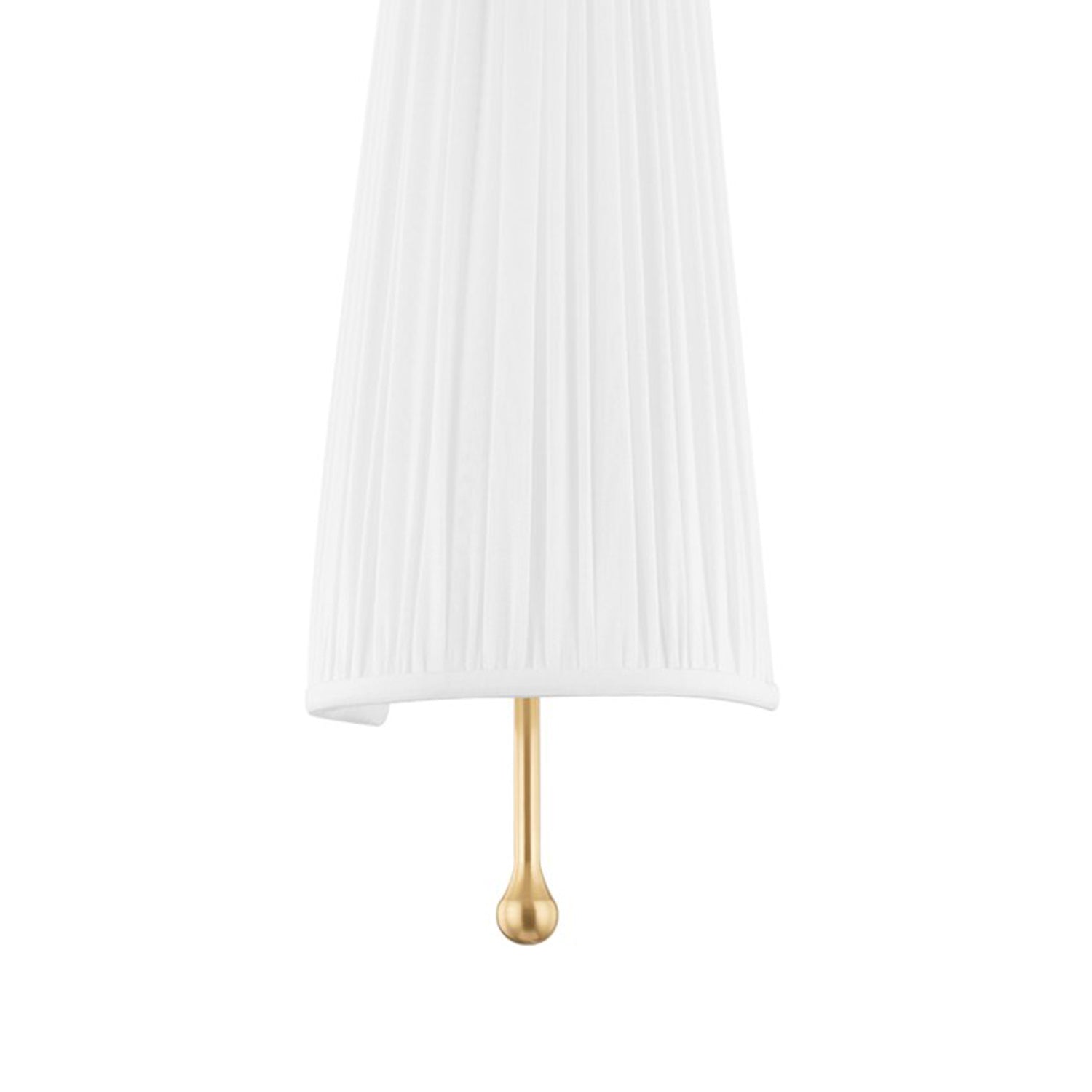 A thirst for tradition is met with sophistication as the Adeline Wall Light from Mitzi maintains simplicity in its elegance. Revel in the texture-inducing pleated white fabric shade with an extended length that delivers optical intrigue, and appreciate the subtle accent in aged brass finish metal forming a stem that shows from above and below.
