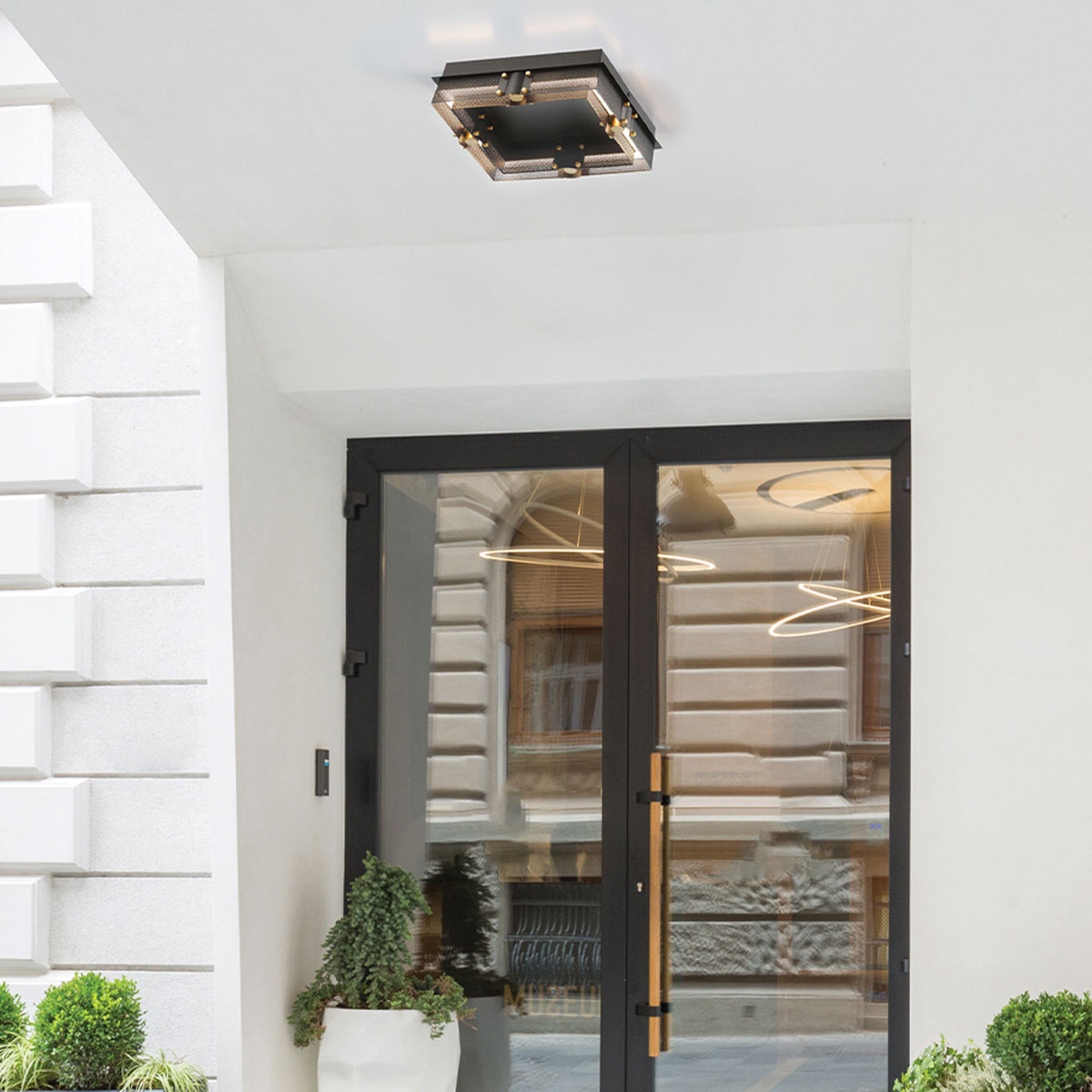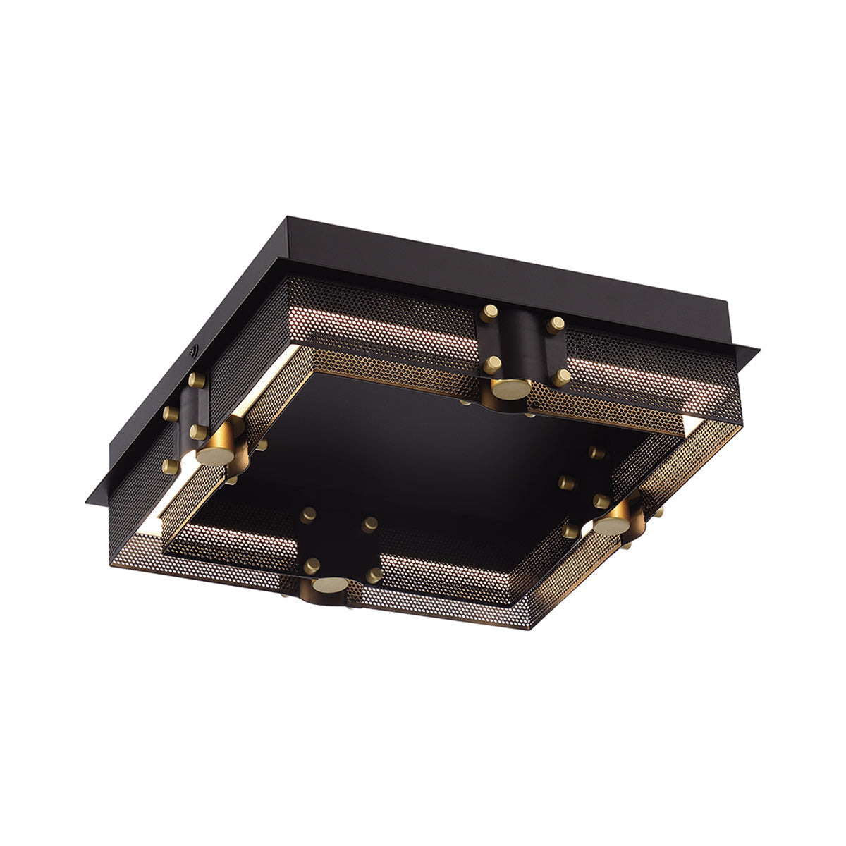 A bevy of bold character follows an industrial motif that creates a statement-making effect in a transitional space. The Admiral LED Flush Mount Ceiling Light from Eurofase blends sleek metal construction sending LED bands of integrated light beams through filigreed panels. Lush finishes of matte black, brass, and gold form a gorgeous palette with tons of versatility.