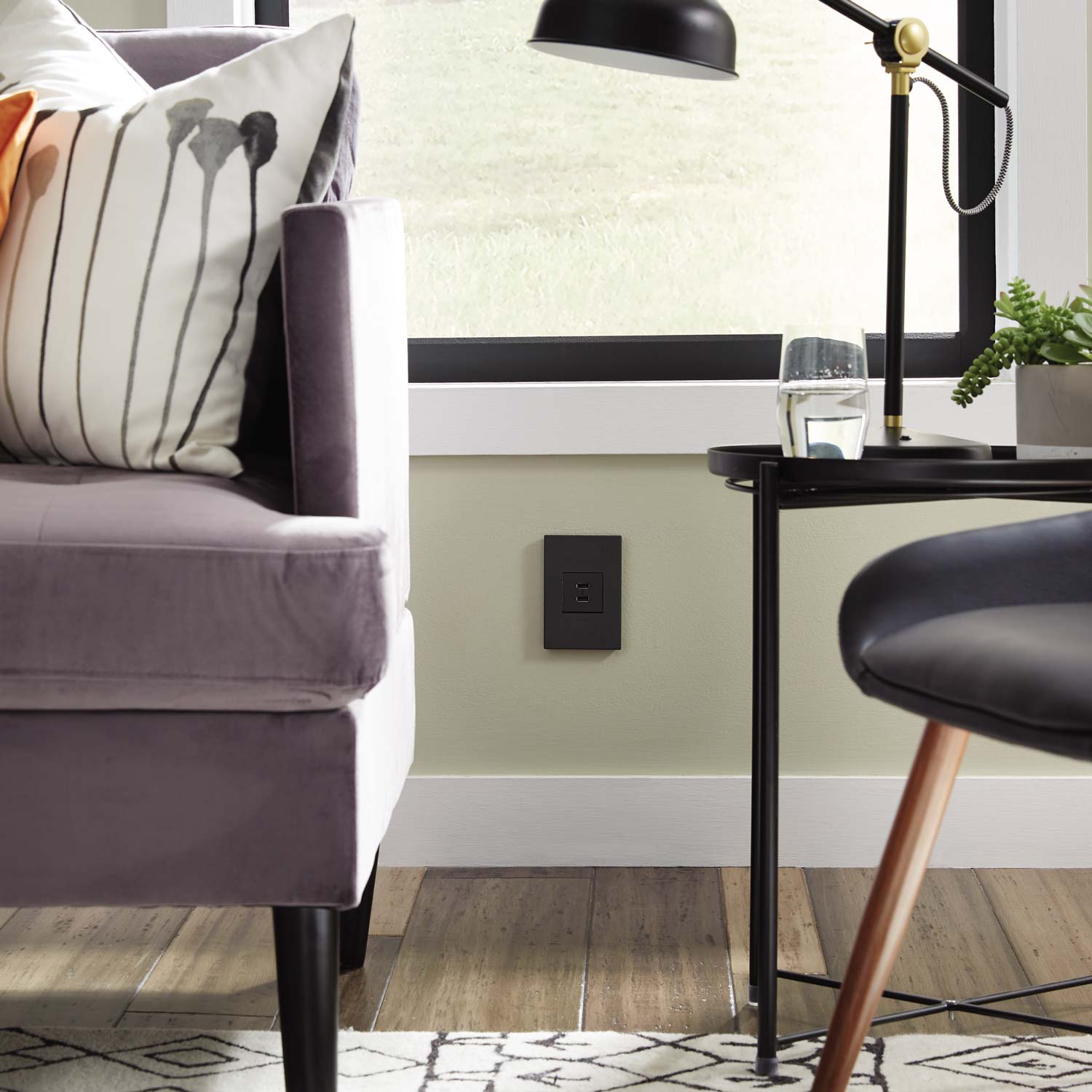 A screwless design cements the modern minimalist style of this Adorne Plastics Wall Plate from Legrand.