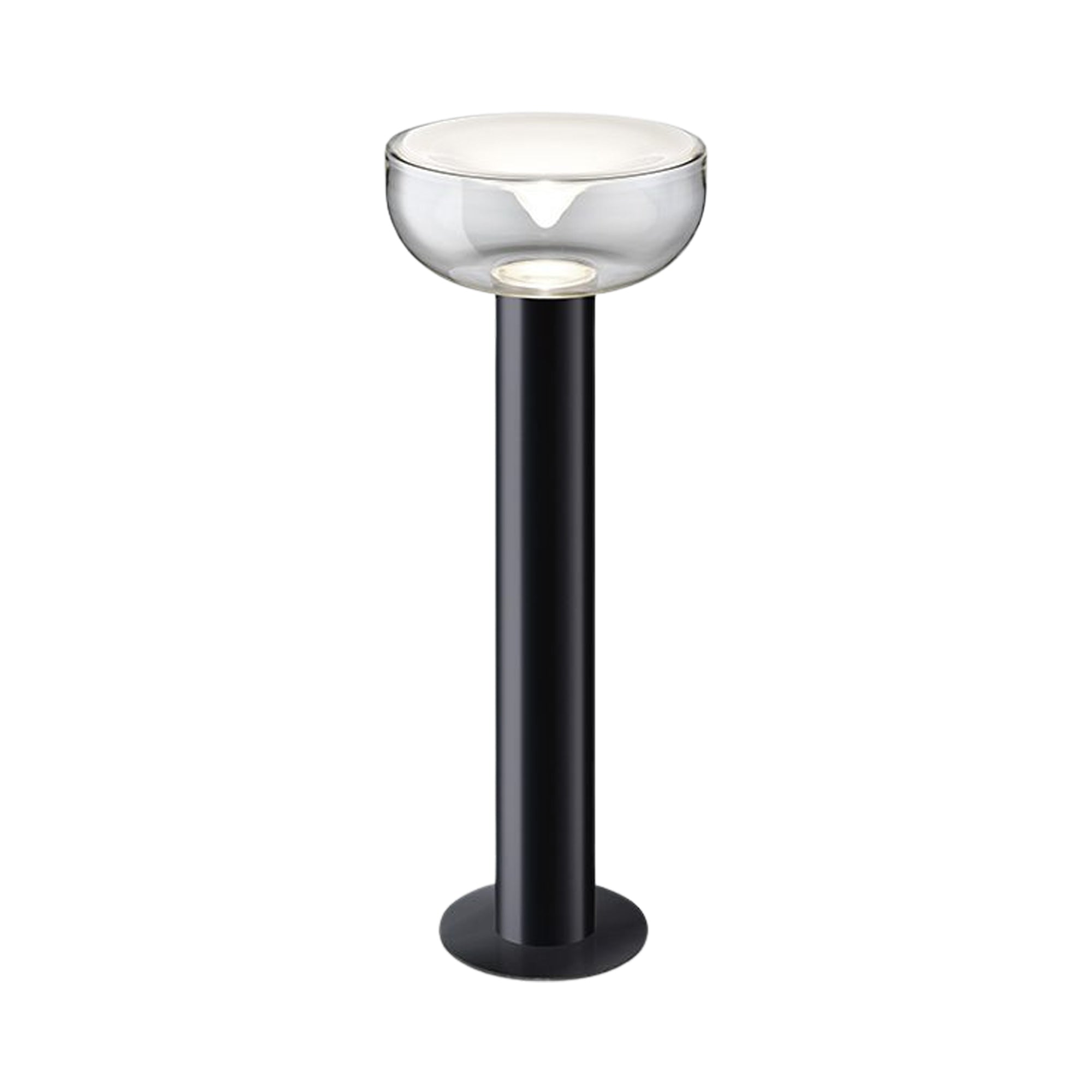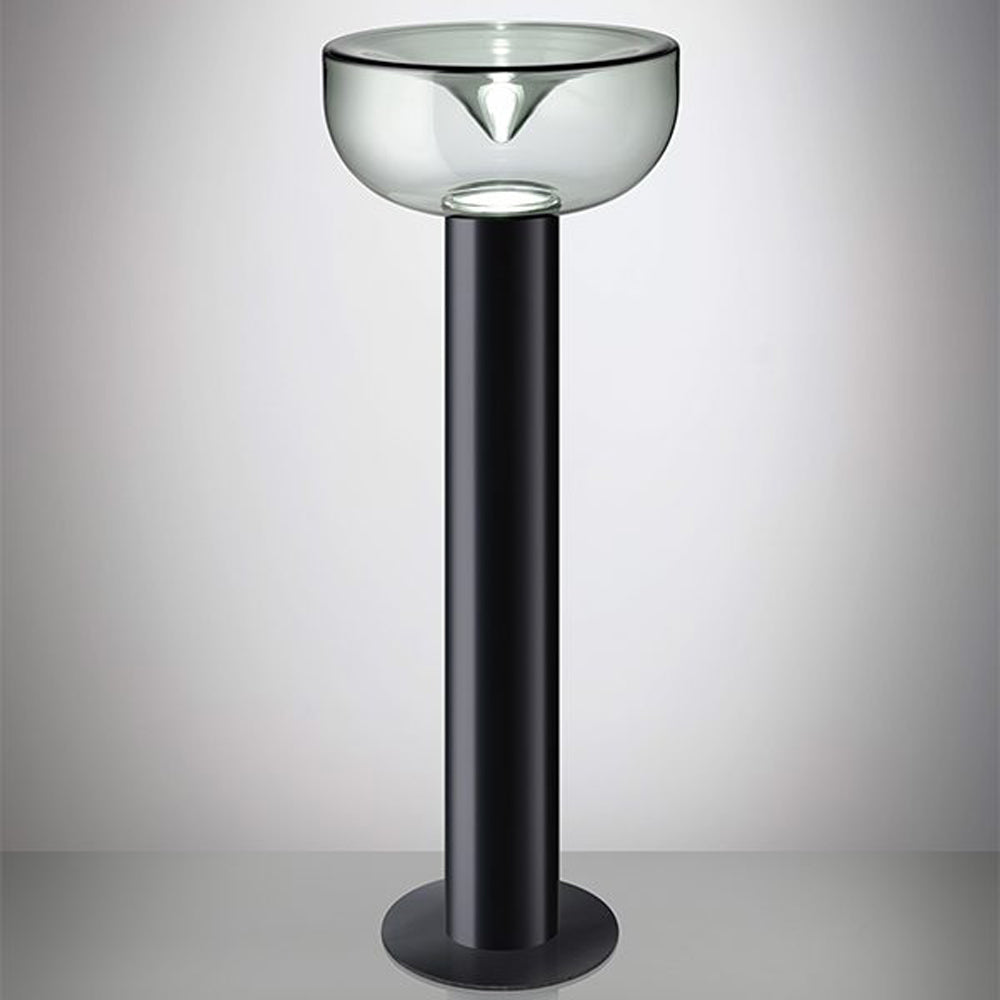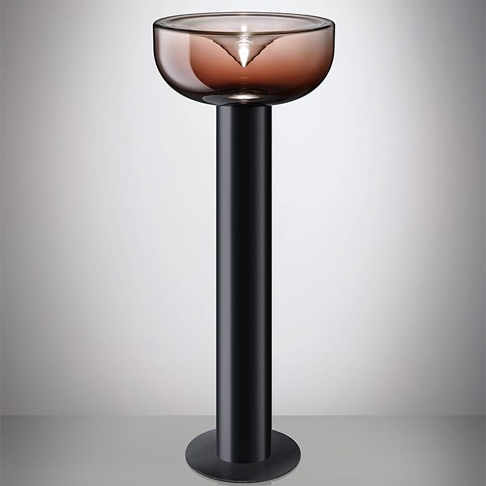 In the fine tradition of Italian artistry, the Aella LED Floor Lamp from Leucos changes the mood and expectations of a custom bedroom or living space. Silhouetting resembles a goblet-like form featuring a glam glass bowl shade, with a metal cylinder stem and base expanding its wide profile. The decadence and romance of soft lighting from a gallery-inspired lamp is irreplaceable as an element of sophisticated and functional decor.