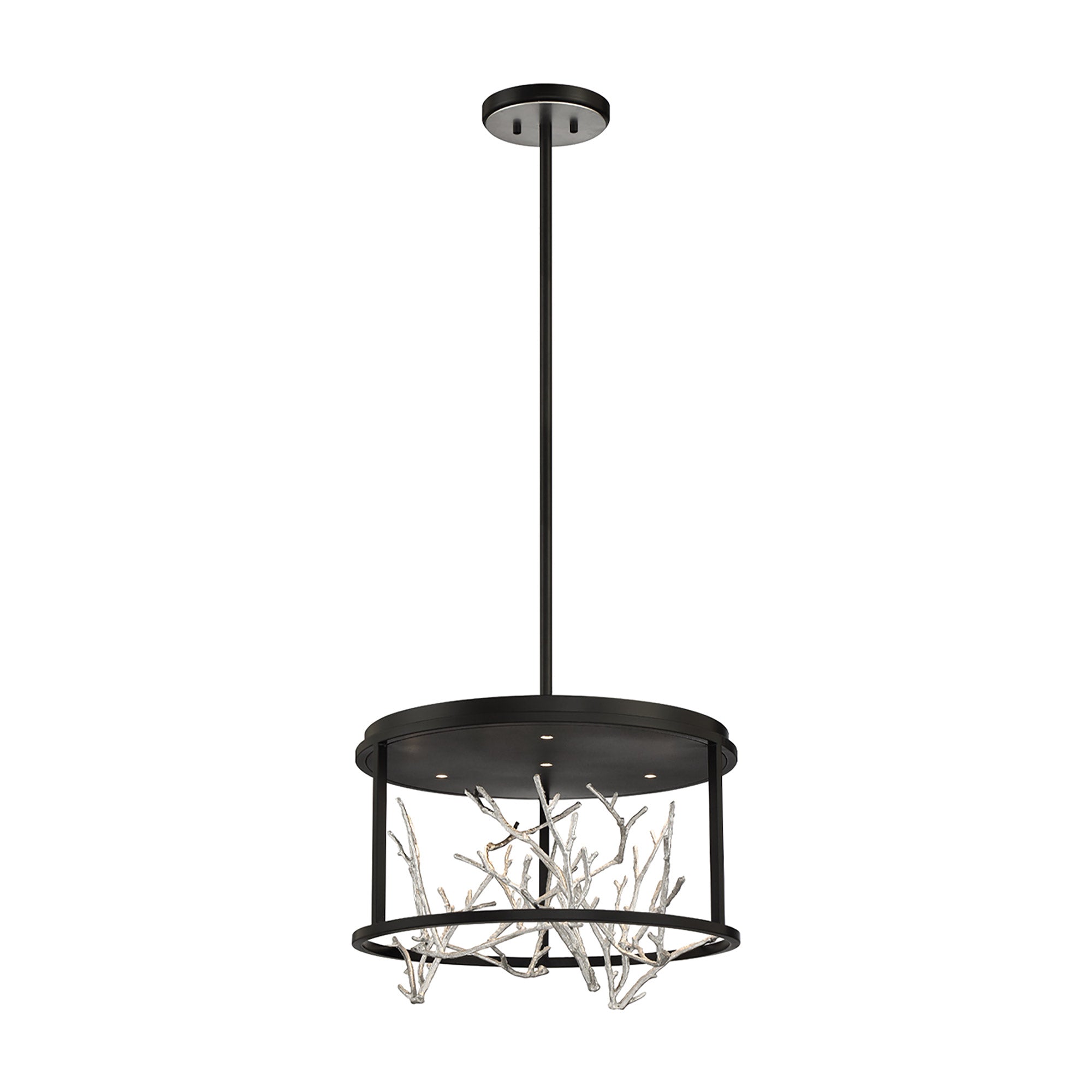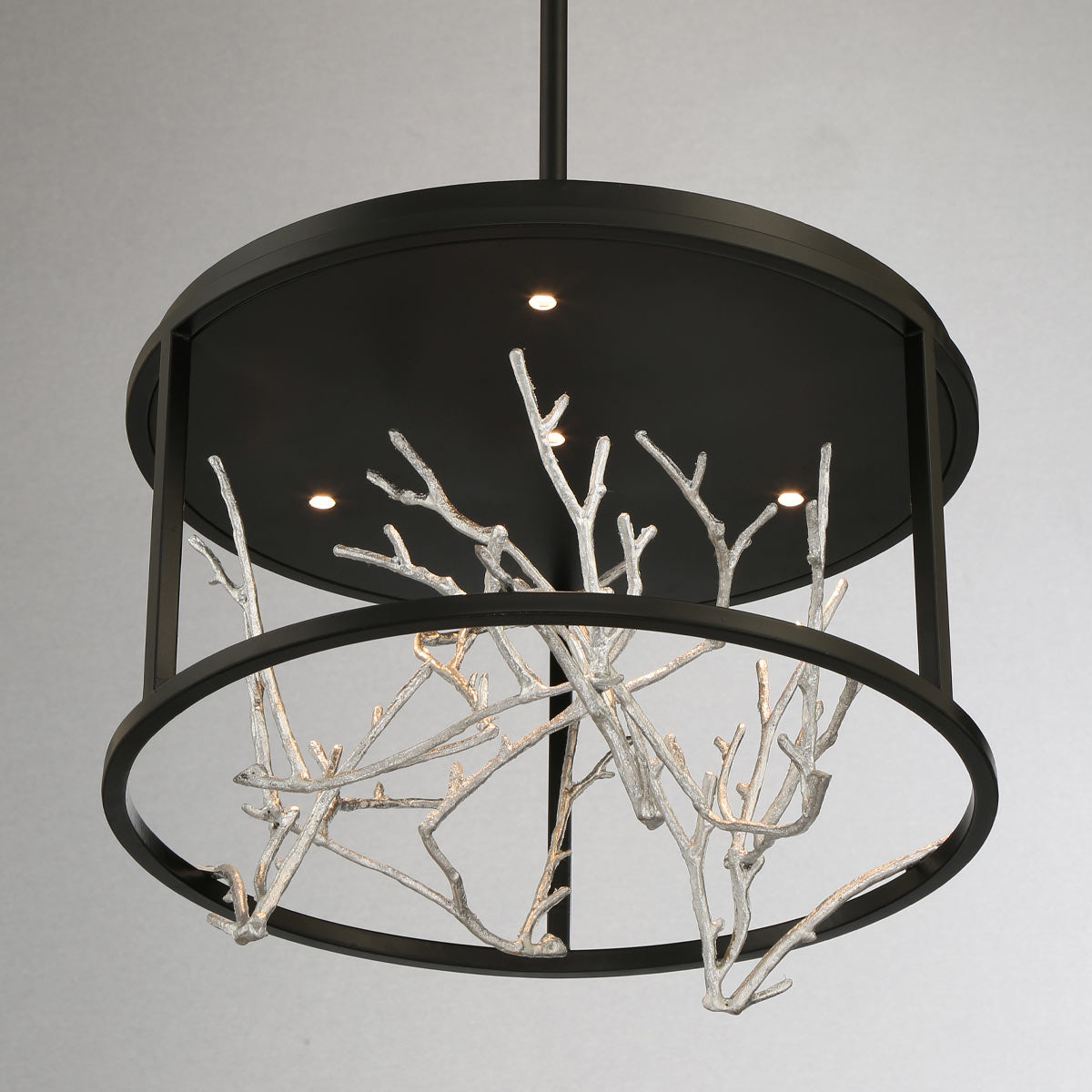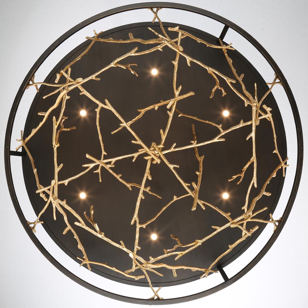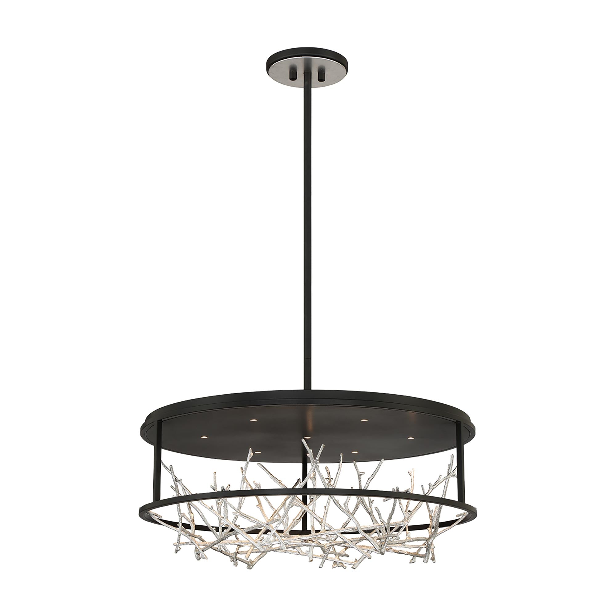 Decadence in lighting follows a path of nature-inspired artistry as the Aerie LED Chandelier from Eurofase seeks a novel approach to fixtures. Lush metal framing follows a rounded cage motif with gilded twig branch elements creating visual impact. This energy-efficient fixture becomes a conversation starter and focal point in a living room, entryway, or dining space.