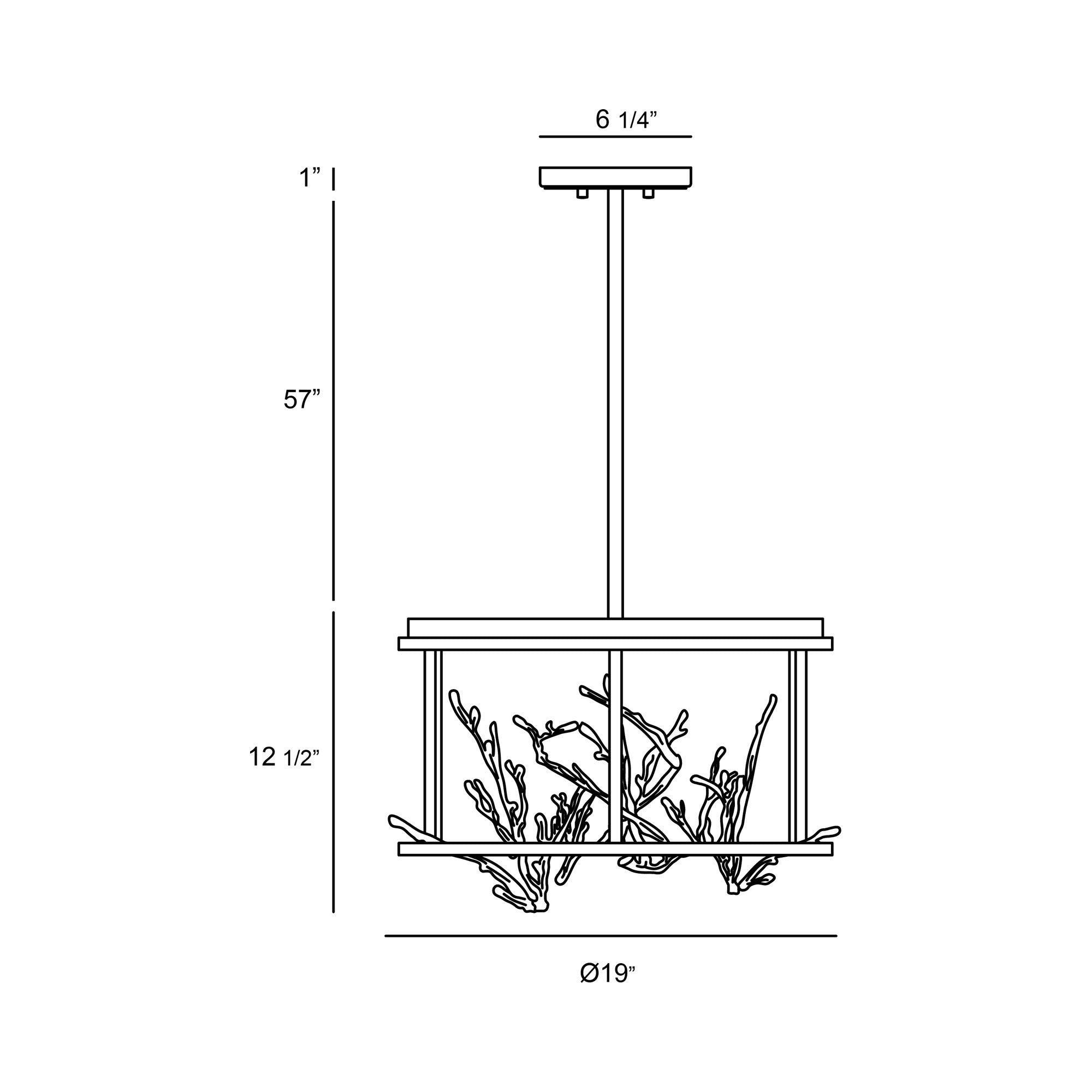 - 4-Light: 19"D X 12.5"H; 70" max height