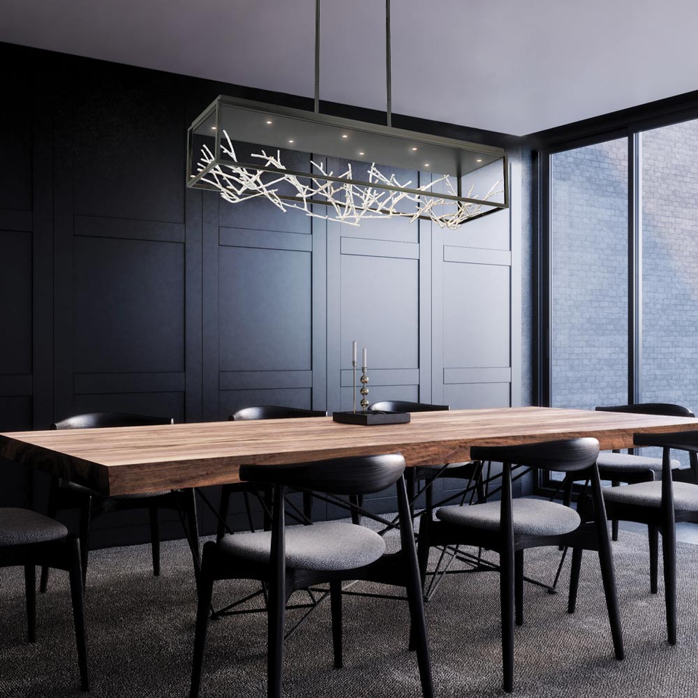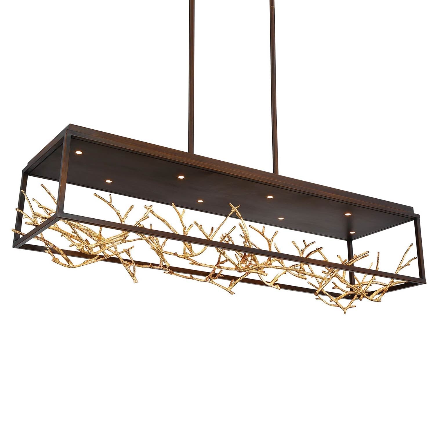 Ethereal lightness in lighting offers a truly artisanal gallery vibe suited to the most custom of living spaces. With an open metal cage design, the Aerie LED Linear Pendant Light from Eurofase dazzles as it features clusters of delicate twigs that adopt earthy elegance. This energy-efficient pendant highlights dining ensembles, kitchen islands, and entertaining spaces.