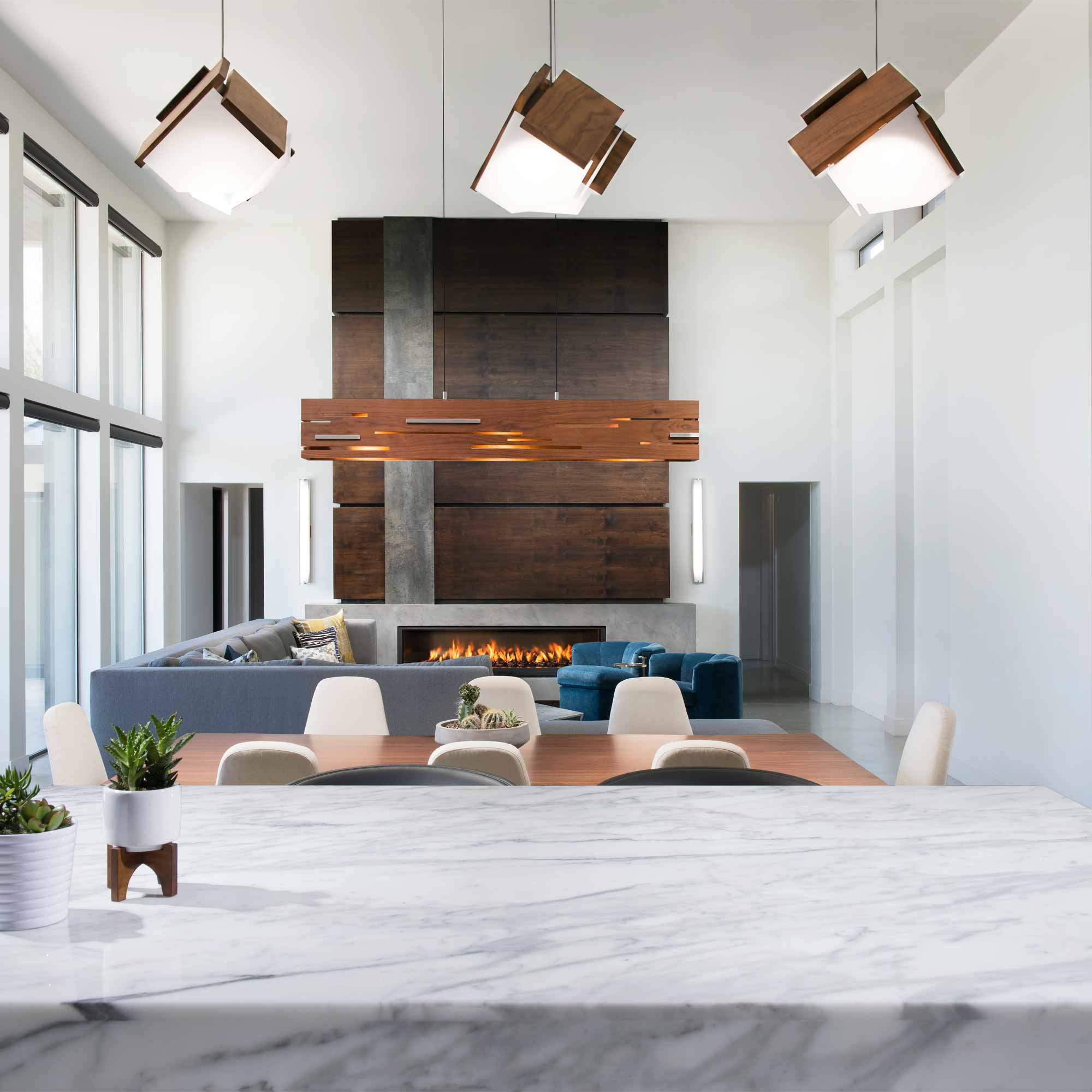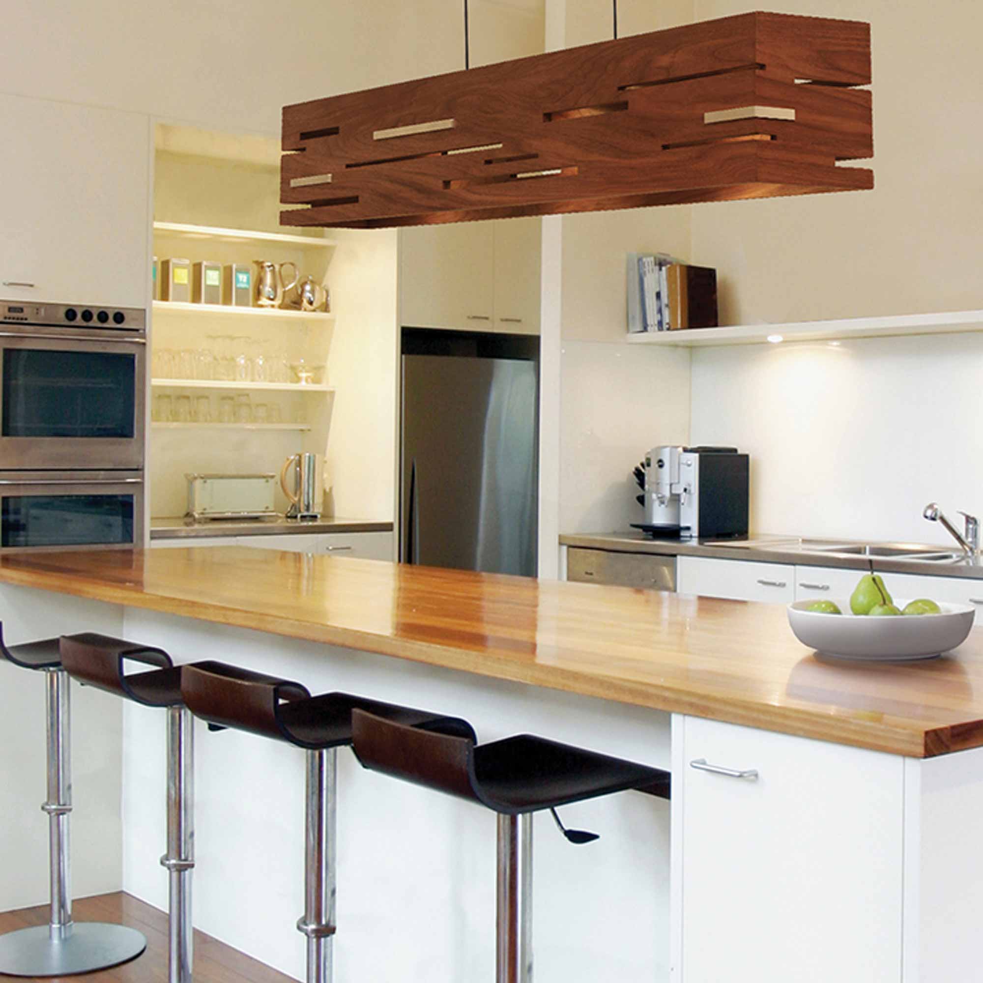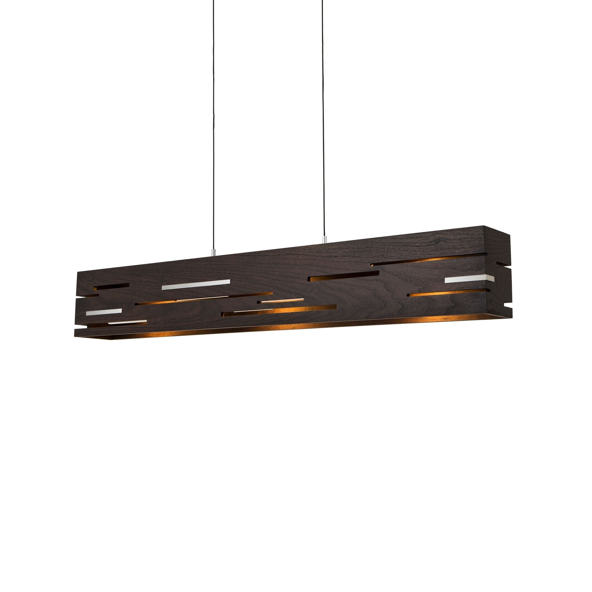 Solid wood and aluminum construction begin the natural ambiance of a rustic aesthetic, lending an earthy effect to the Aeris LED Linear Pendant Light from Cerno. Its semi-choppy motif adds geometric attitude and creates paths for energy-efficient ambient lighting to radiate over a casual contemporary kitchen island or entertaining space.