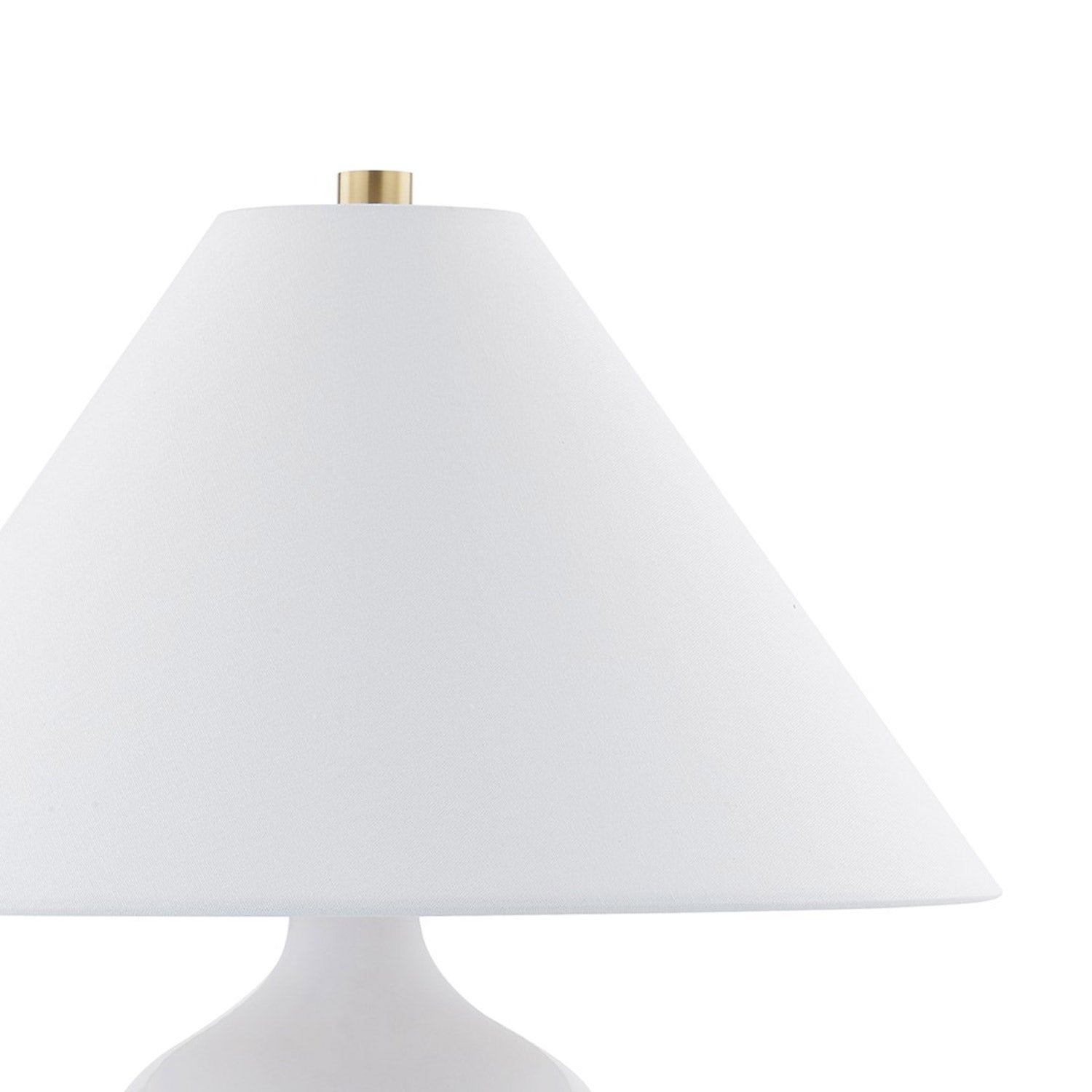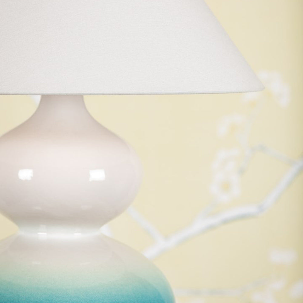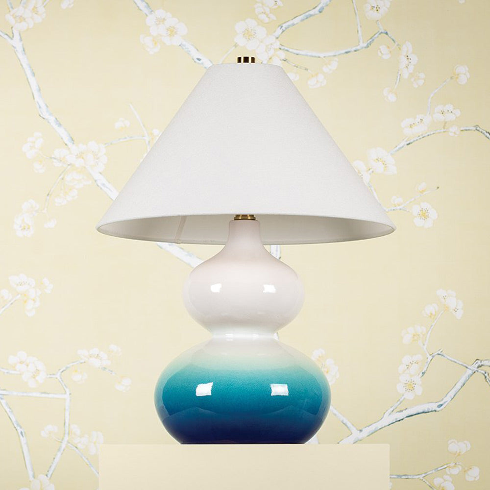 A delicate ombre finish and shapely, romantic silhouette stands out to deliver artisan charm with the Aimee Table Lamp from Mitzi. A chic hourglass profile embellishes this lamp, as a white and blue ombre finish palette is perfectly balanced to blend versatility with a blush of color. An exposed aged brass finial and cone-shaped white linen shade completes its design package.