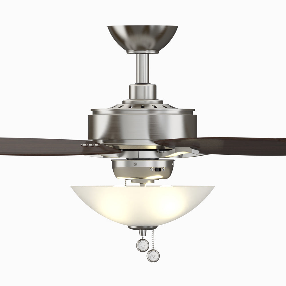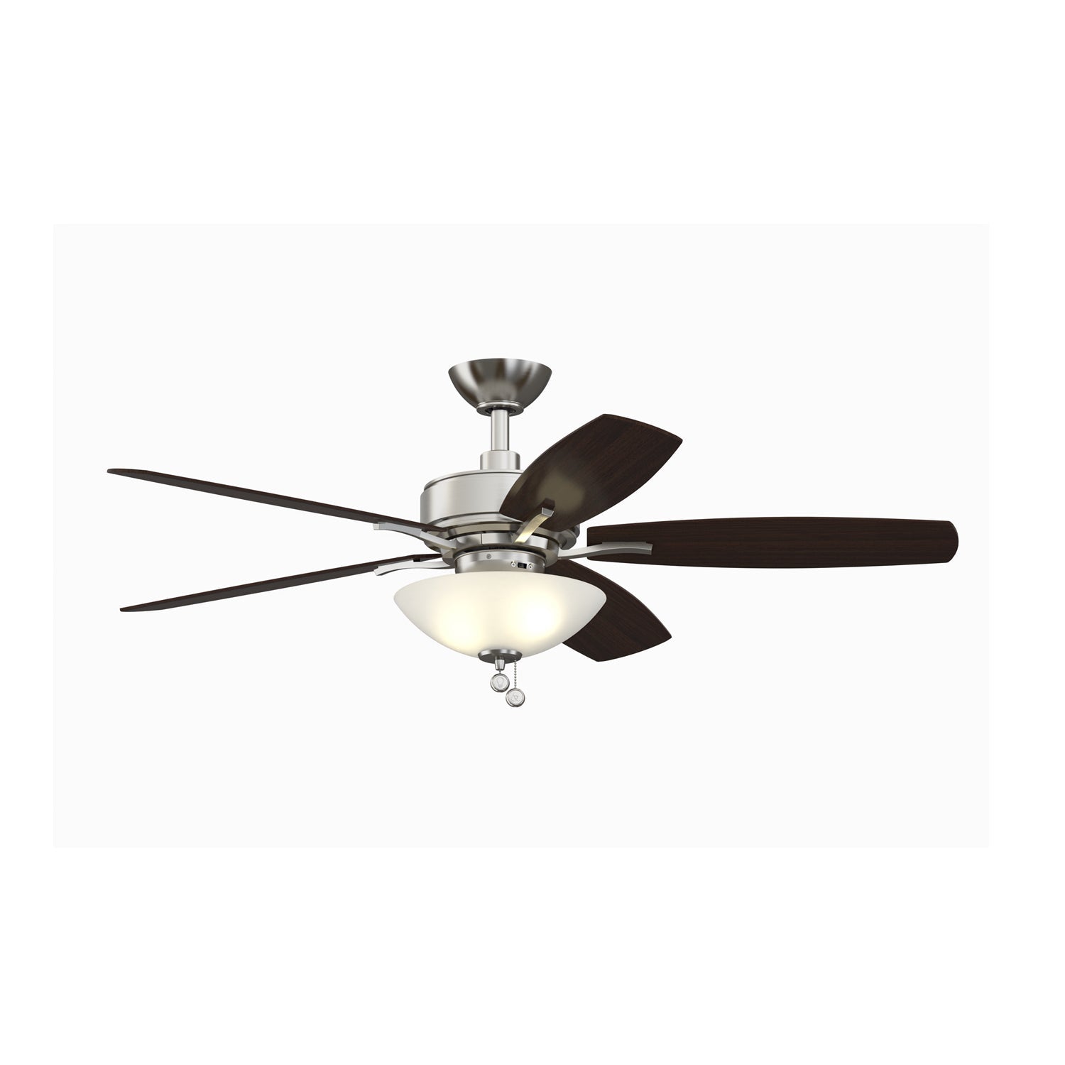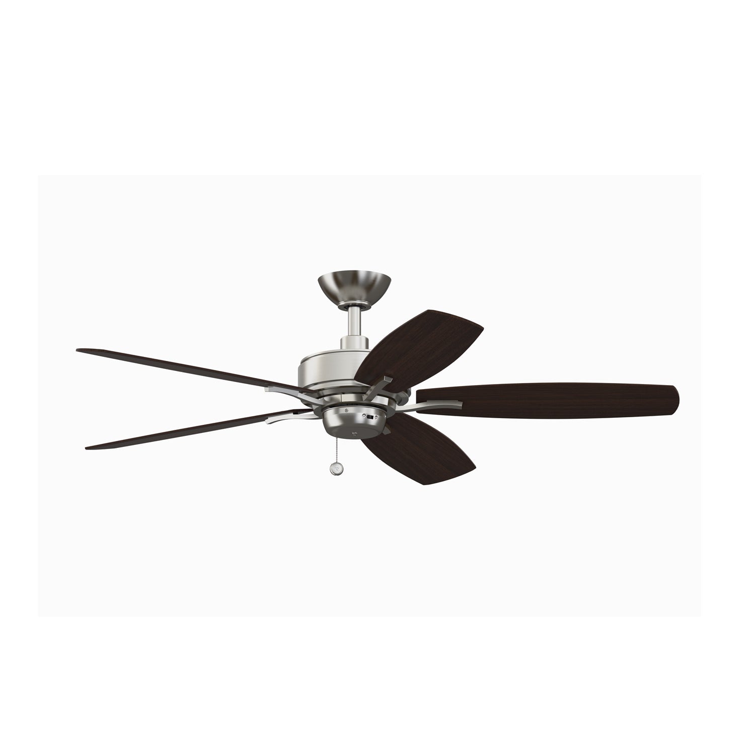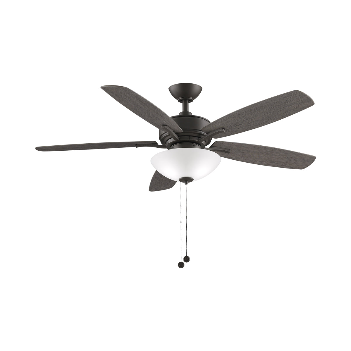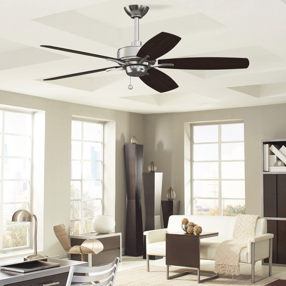 A cool breeze and cool style join to create a chic look as the Aire Deluxe Indoor Ceiling Fan from Fanimation completes the design checklist with functionality and sophistication. Careful design elements appear tasteful and operate superbly, adding proportion to a room design and creating air circulation for more pleasing living conditions. Metal construction attaches five blades to a central motor, shapely and significant in utility and traditional style.