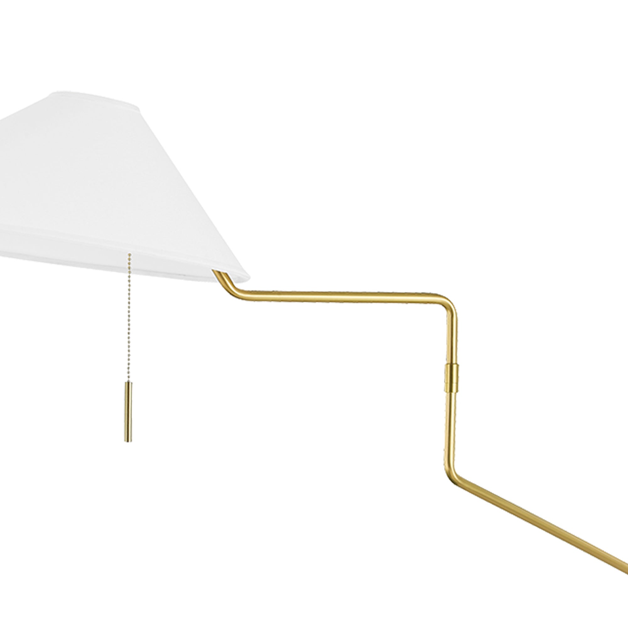 Sleek lines and jutting angles make up the elegant Mid-Century Modern Aisa Plug-In Wall Light from Mitzi. Versatile and functional as a quick plug-in lighting piece, this retro-inspired wall light extends over accent chairs in reading nooks and across nightstands in bedrooms. A drop pull chain dangles from a bright white shell-shaped shade, offering an easily reachable illumination and modern akimbo touch.