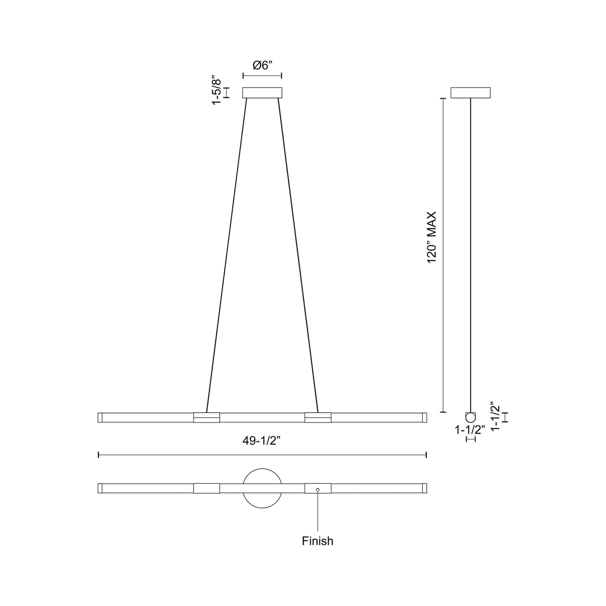 - Large: 49.5"W X 1.5"H; 49.13" max height