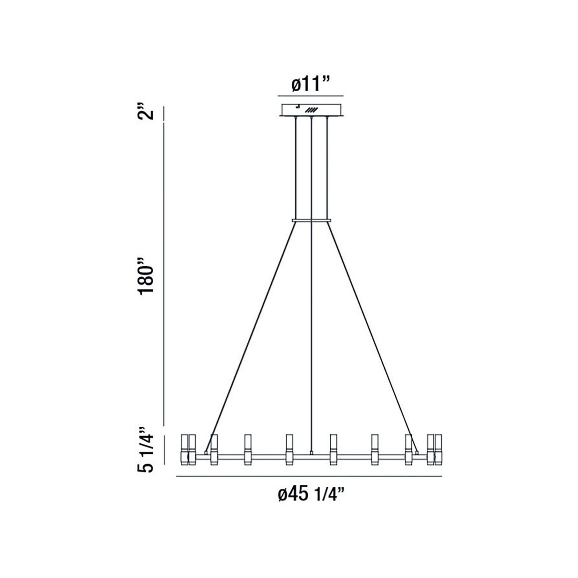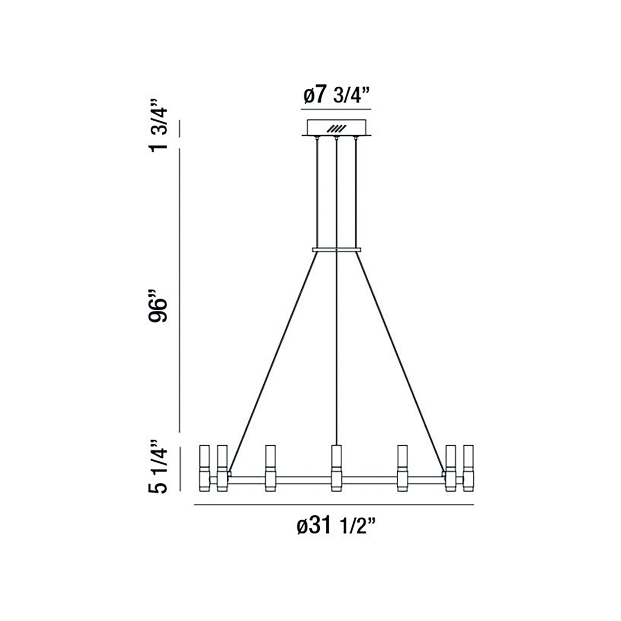 - 12-Light: 31.5"D X 5.25"H; 103" max height