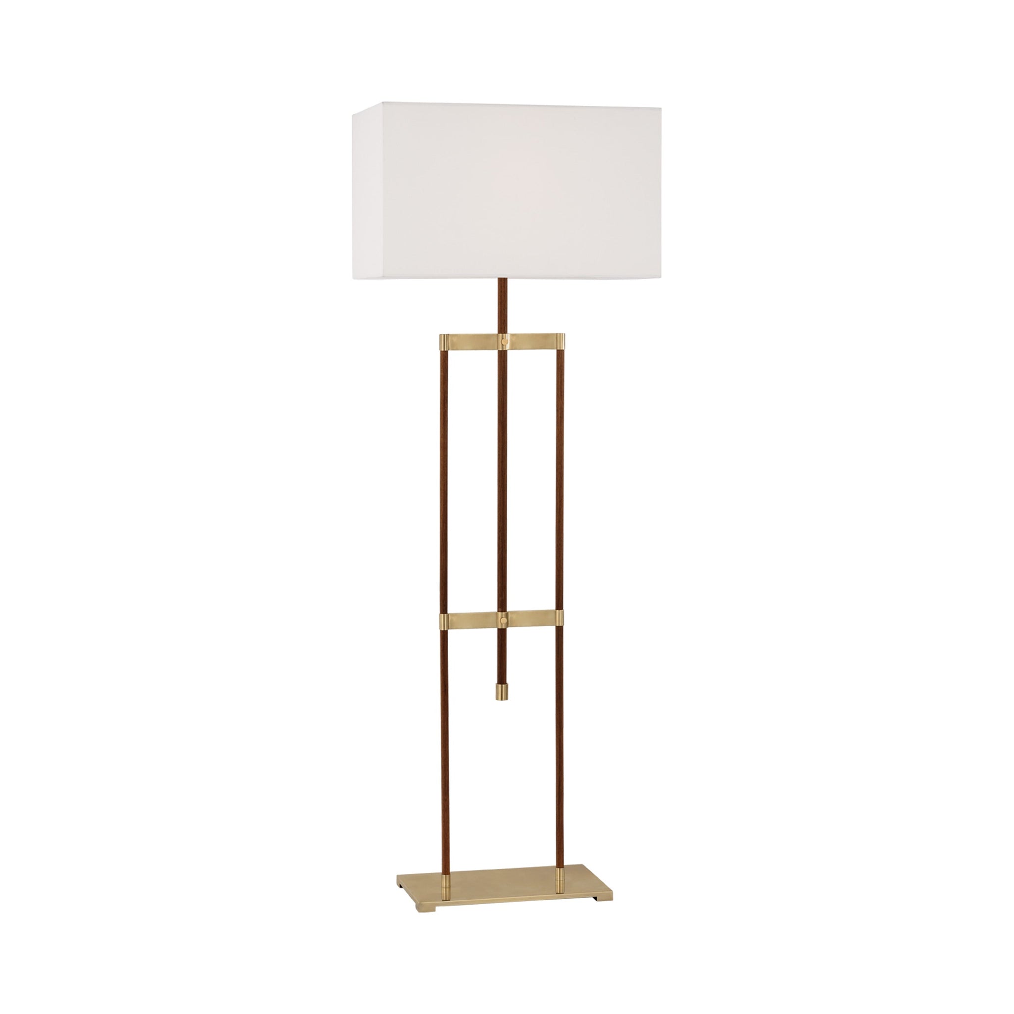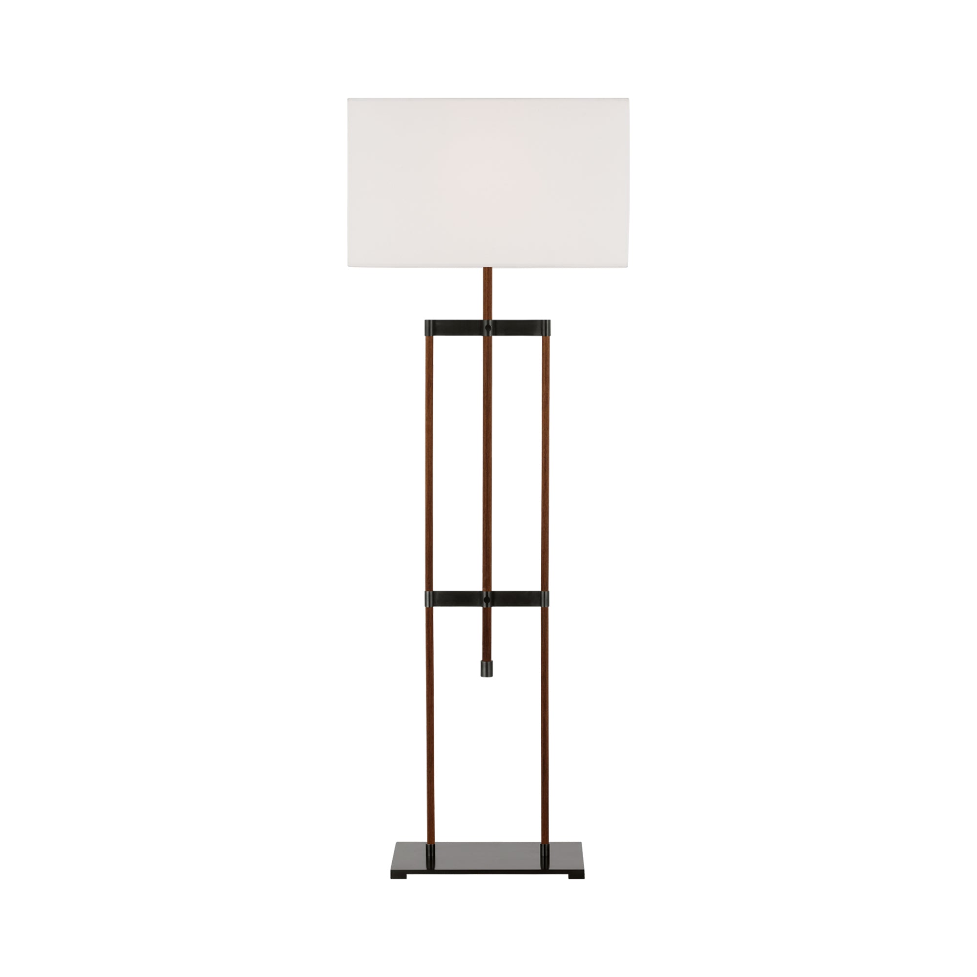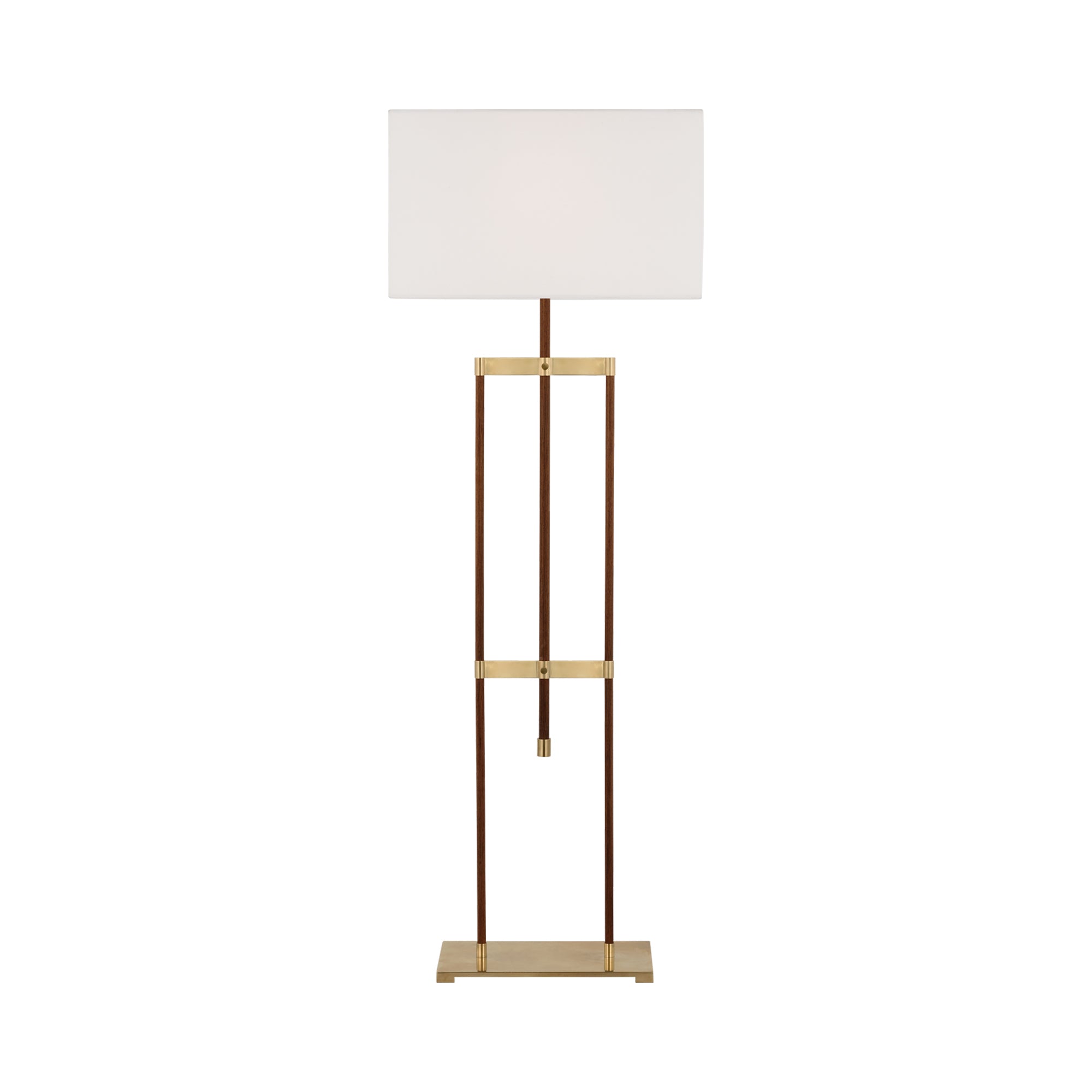 Indulge a thirst for crisp linear attitude with the Alda Floor Lamp from Visual Comfort Signature. Openwork metal blends horizontal and vertical straight lines, leaving a free-standing motif with maximum impact. A traditional linen rectangle shade delivers softening influence to a lamp that works in home offices or residences.