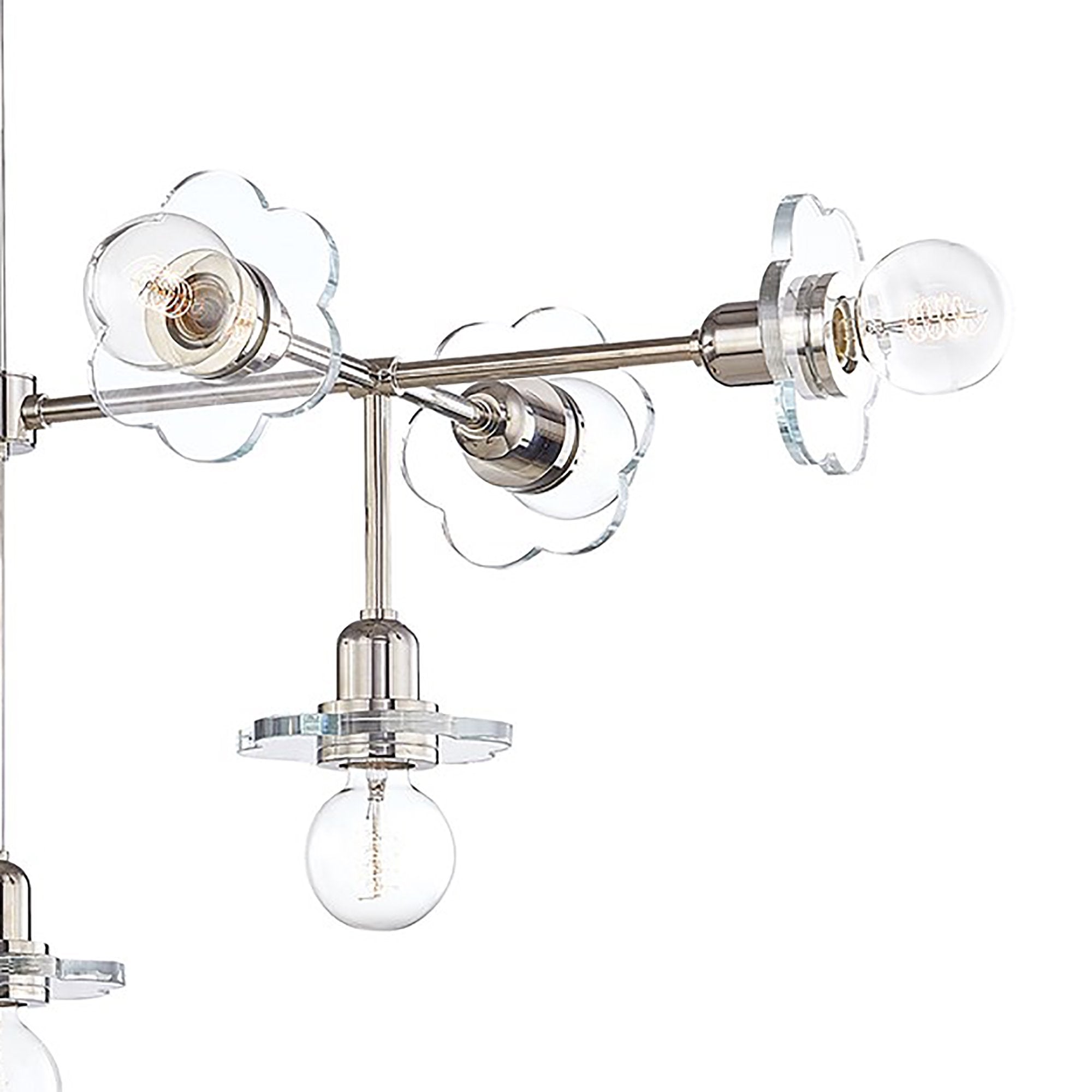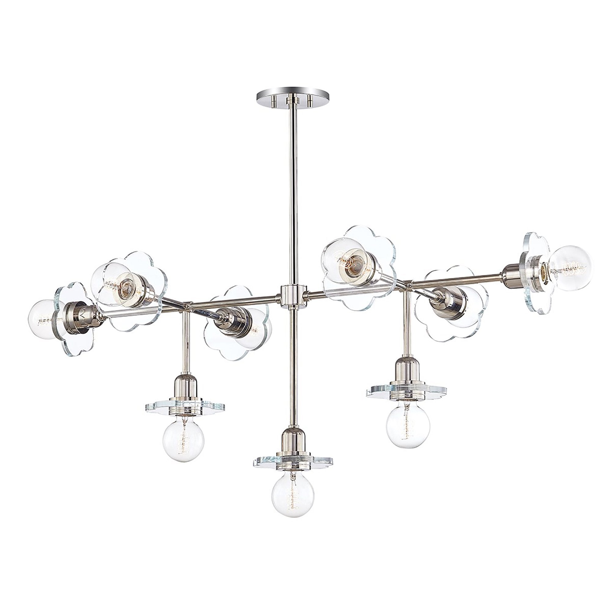 Take your home lighting to dizzyingly delightful heights with the simple yet elegant design of this Alexa Chandelier from Mitzi. The five floral clear-cut glass foils accentuate the bare bulbs for a delicate, feminine look and feel that lights up any dining space, living space, or bedroom.