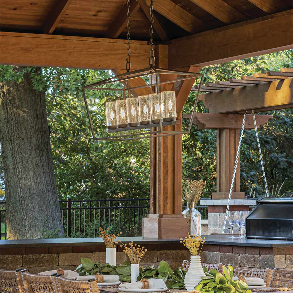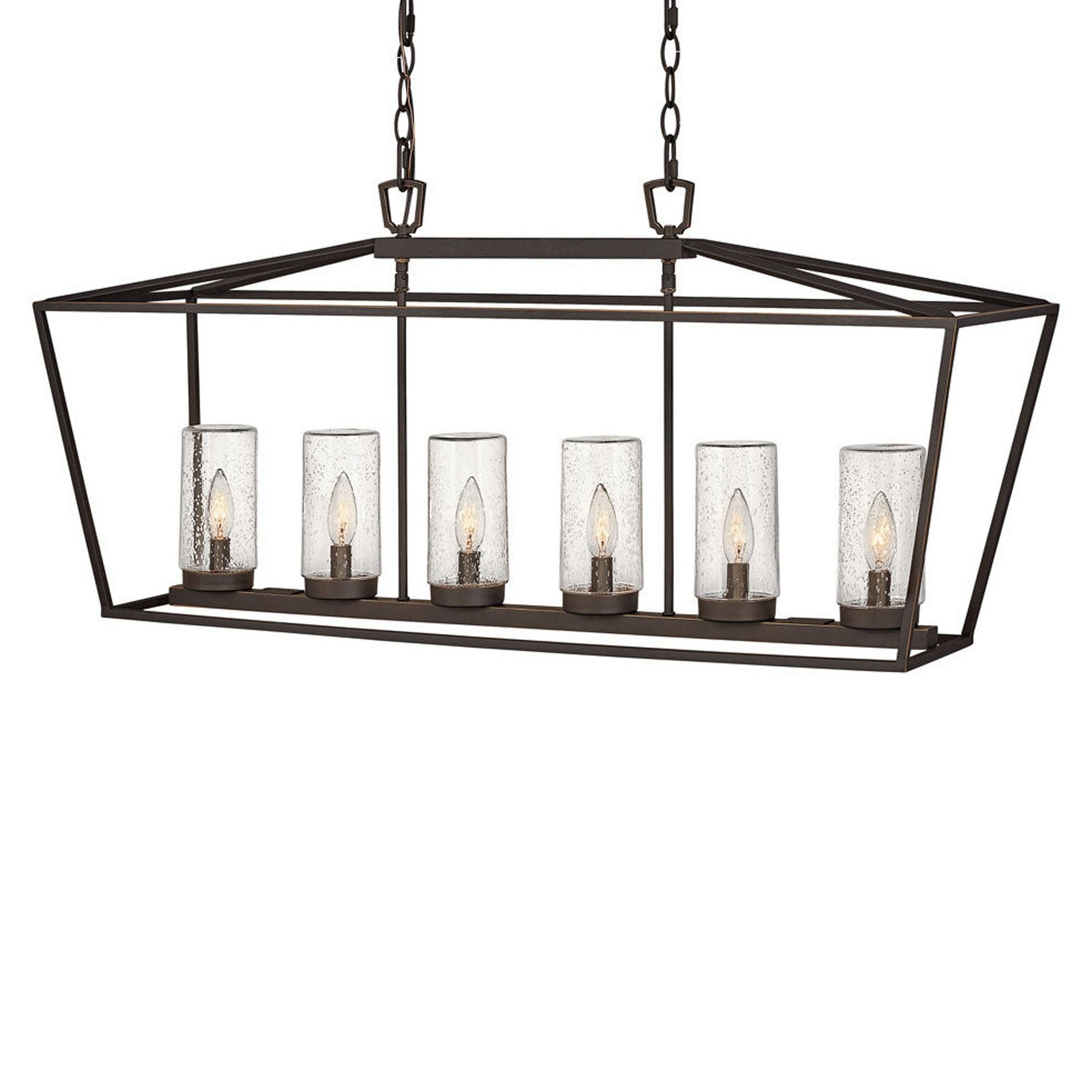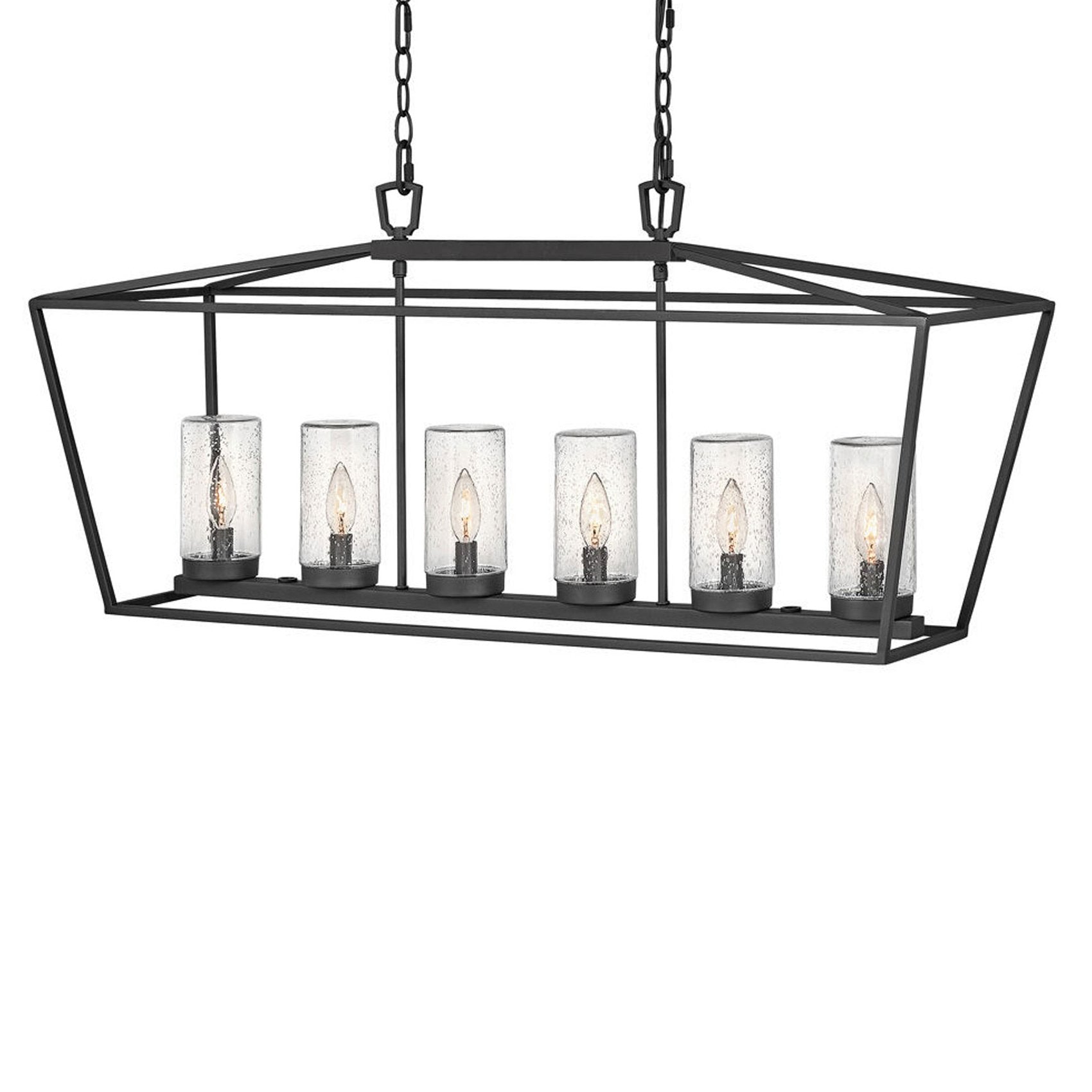 The clean and classic design of Alford Place from the Open Air Collection features a line of chandelier options. Each traditional oversized cage entraps a series of lamps enclosed by clear seedy glass. Available in Oil Rubbed Bronze and Museum Black finish, Alford Place provides excellent illumination from all sides. The clean and classic design of Alford Place features a traditional oversized cage entrapping a series of lamps enclosed by clear seedy glass. Available in a variety of finishes, Alford Place provides excellent illumination from all sides.