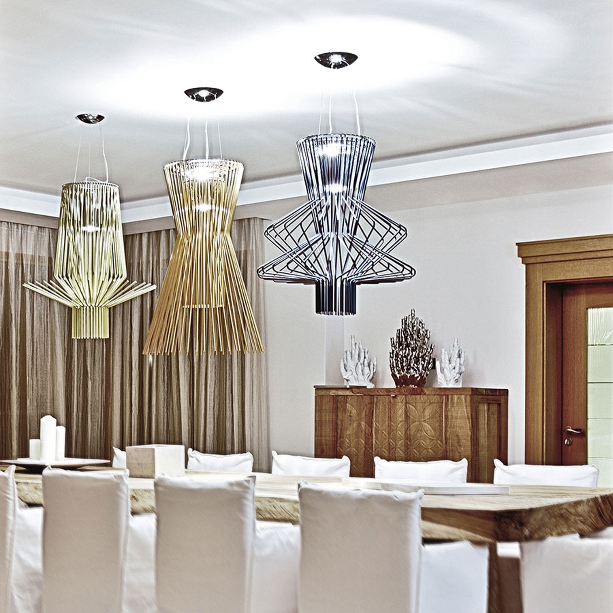 Bands of light will illuminate though the three-dimension shade of the Allegretto Assai Suspension Light from Foscarini. Hang this dramatic yet modern piece above your dining room table to spark instant conversation with dinner guests.