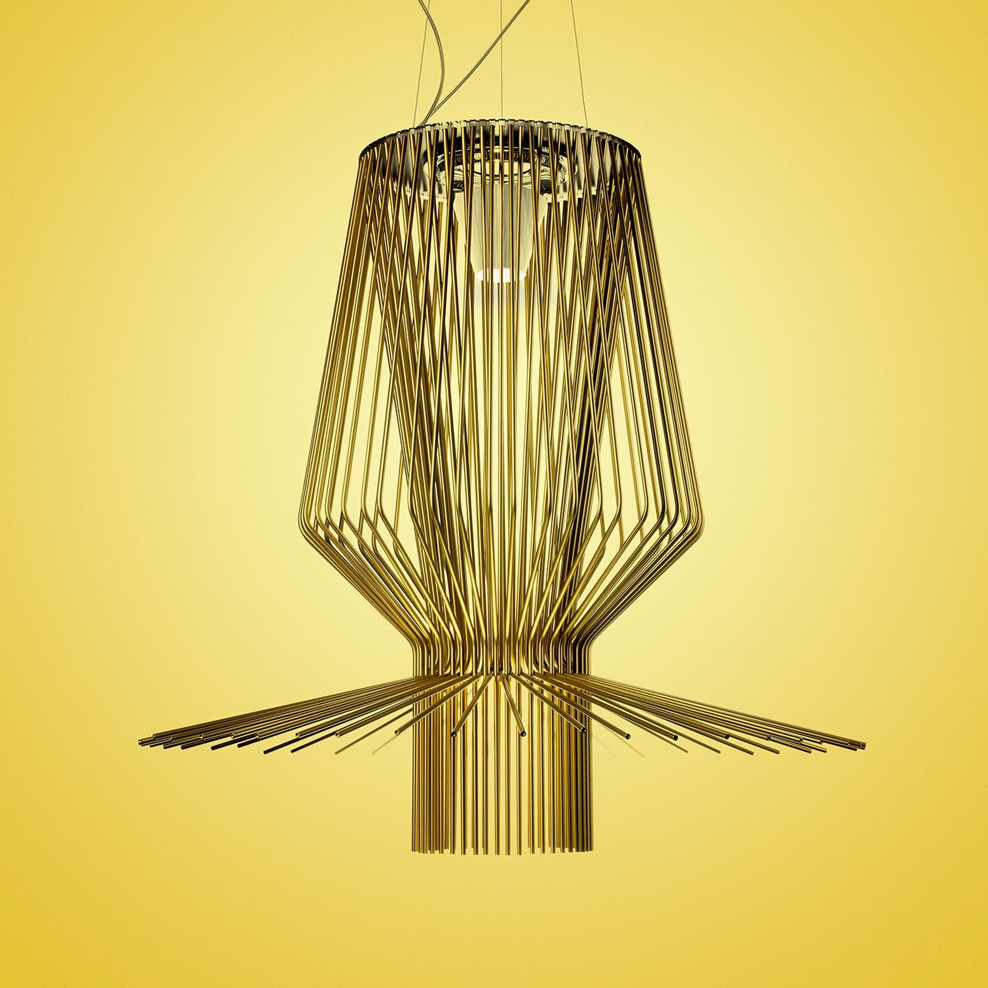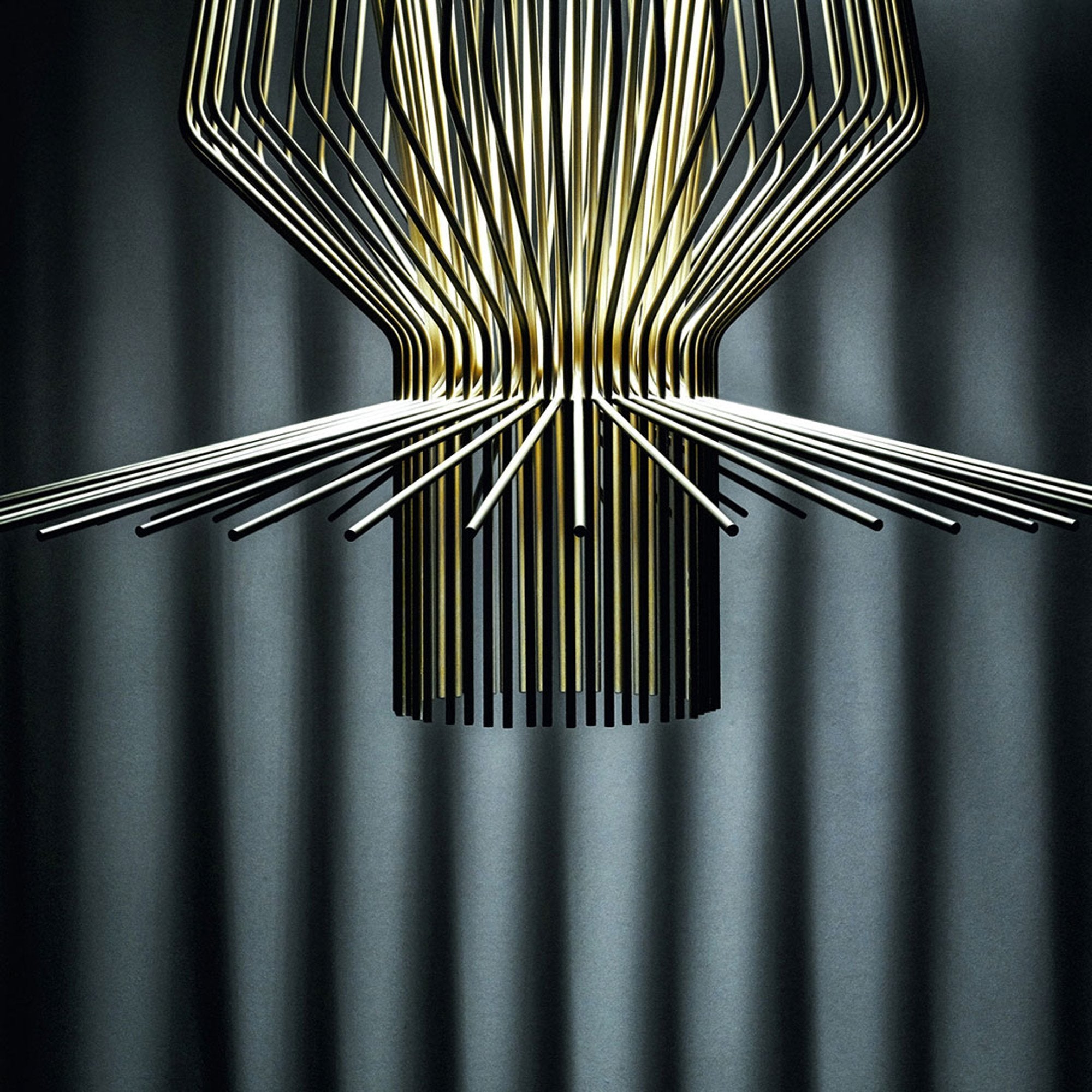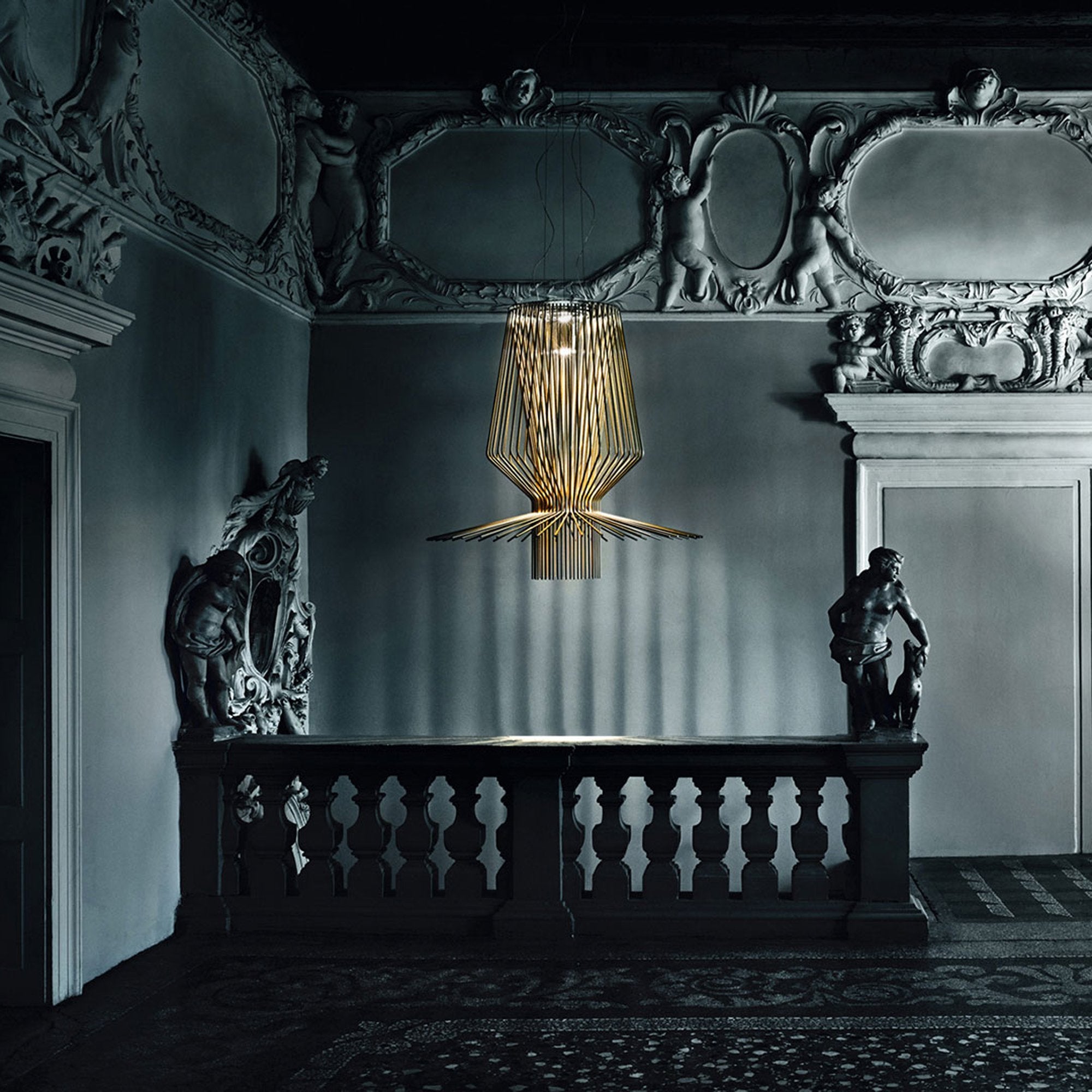Turn heads with the Allegro Assai Suspension Light from Foscarini. The impeccable design allows light to filter through the bands, suspended in an artful way in a large foyer or dining space.
