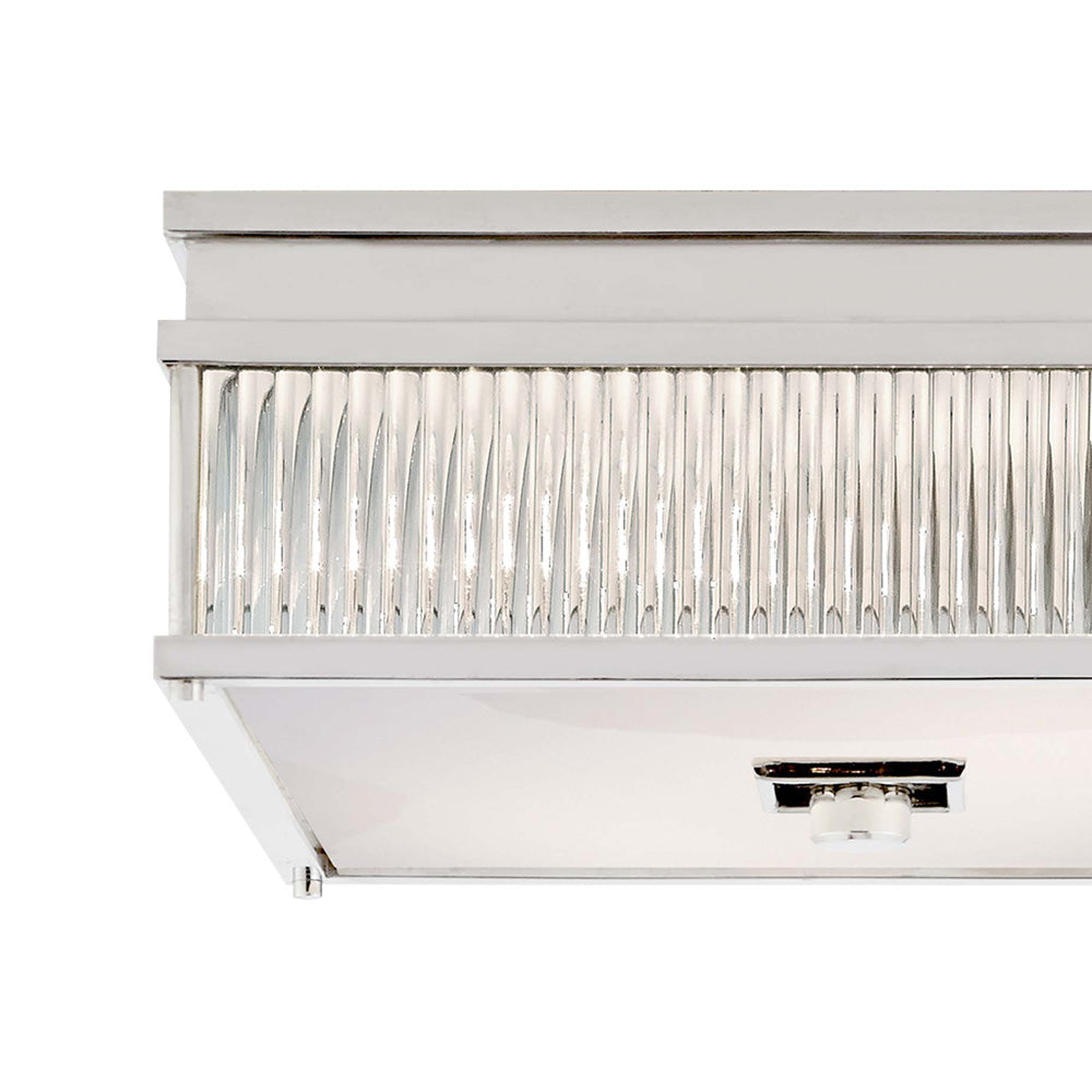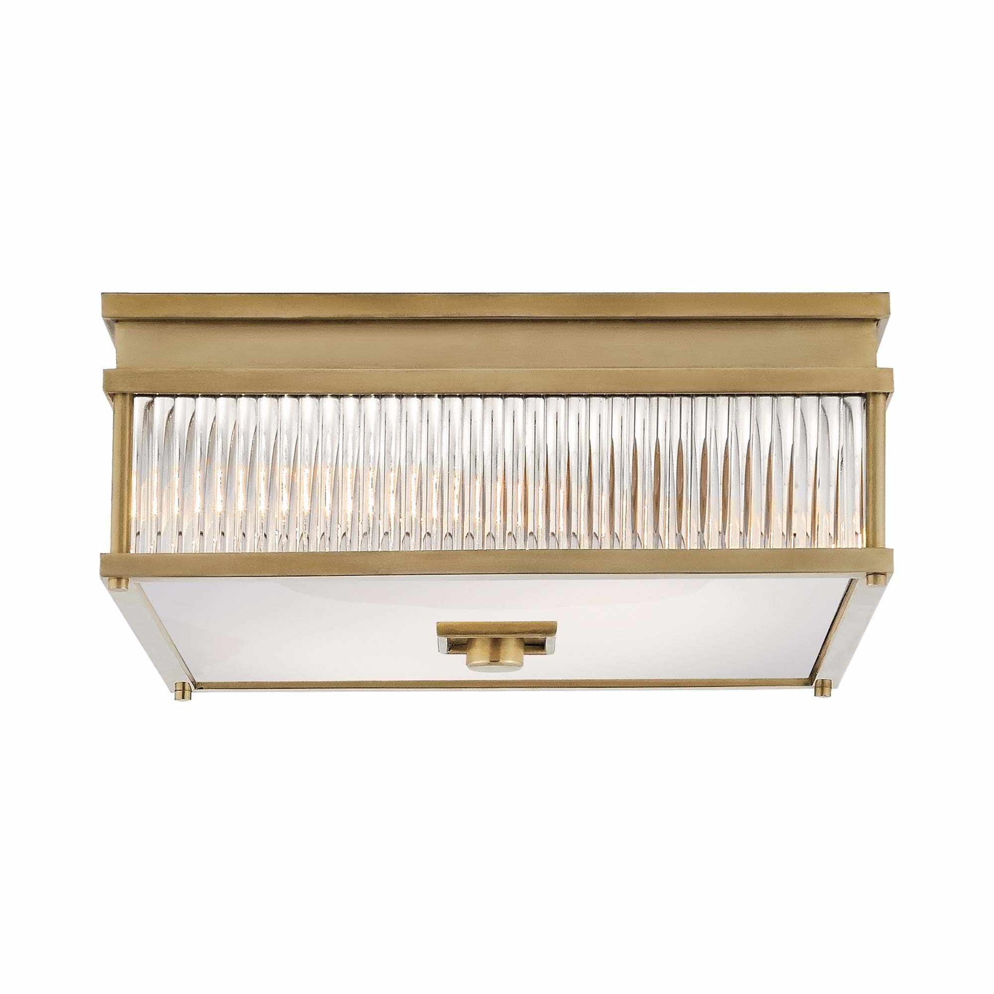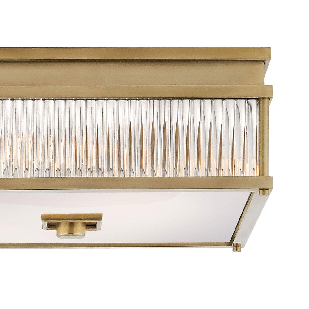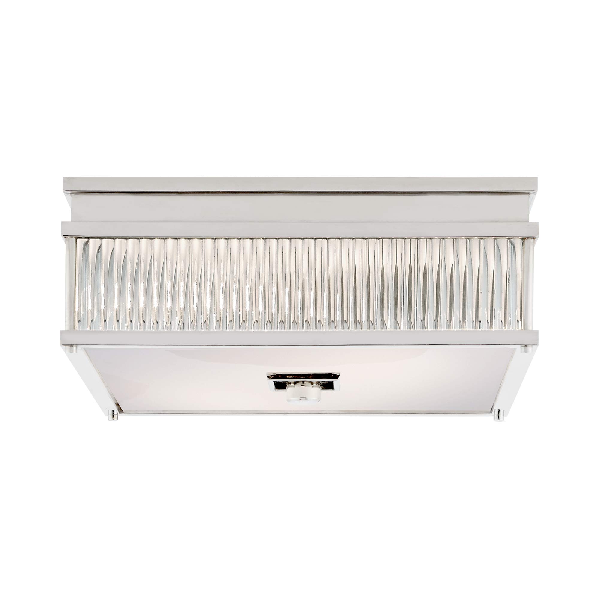 The impact of Art Deco elegance on clean lines delivers a stellar aesthetic in this light fixture with an abundance of style. The Allen Square Flush Mount Ceiling Light from Visual Comfort Signature replicates artisan retro vibes, with sculptural glass rods joining to form a squared shade, and a solid diffuser beautifully filtering illumination. Classic metal framing is geometric and crisp as it infuses sophistication in a kitchen, dining space, or foyer.