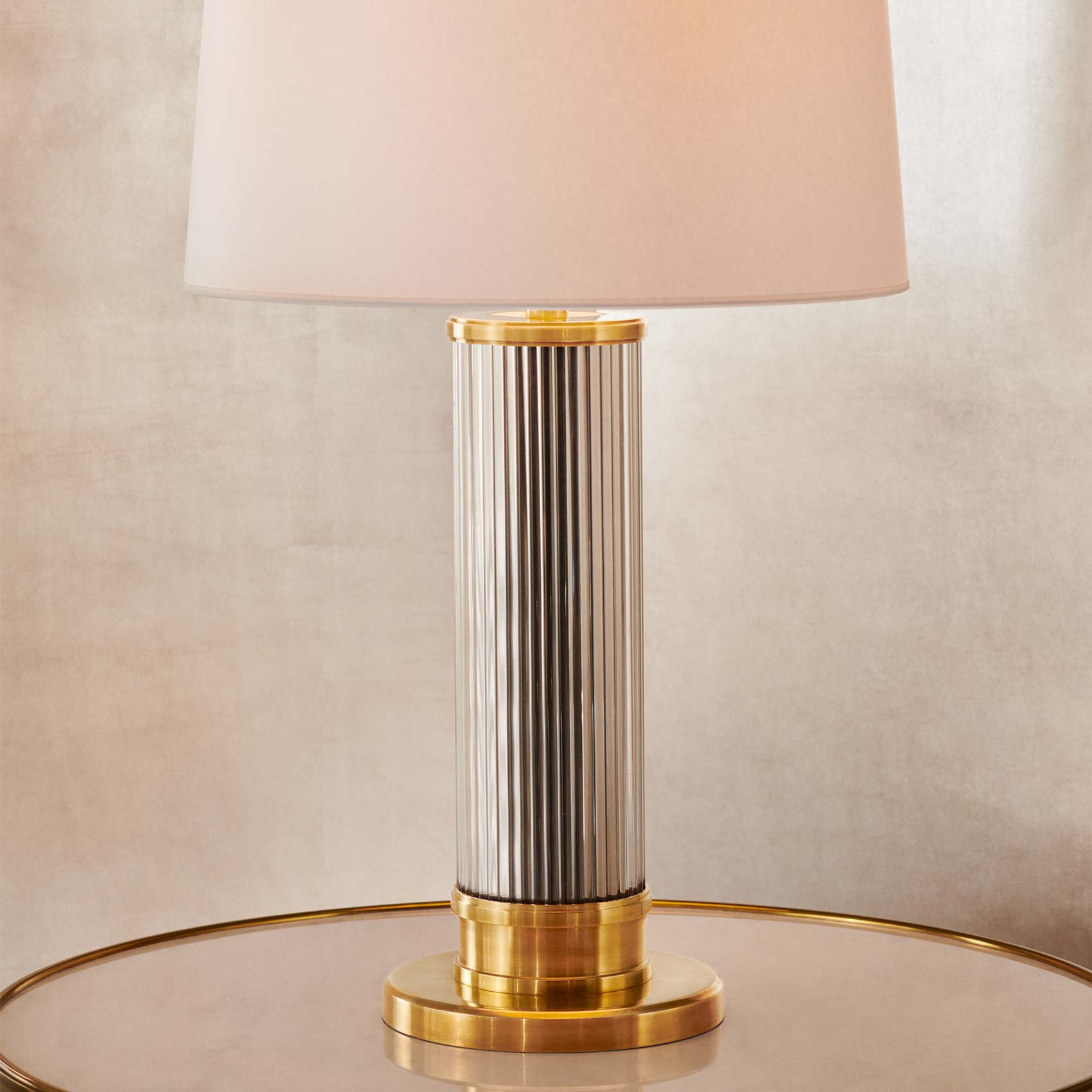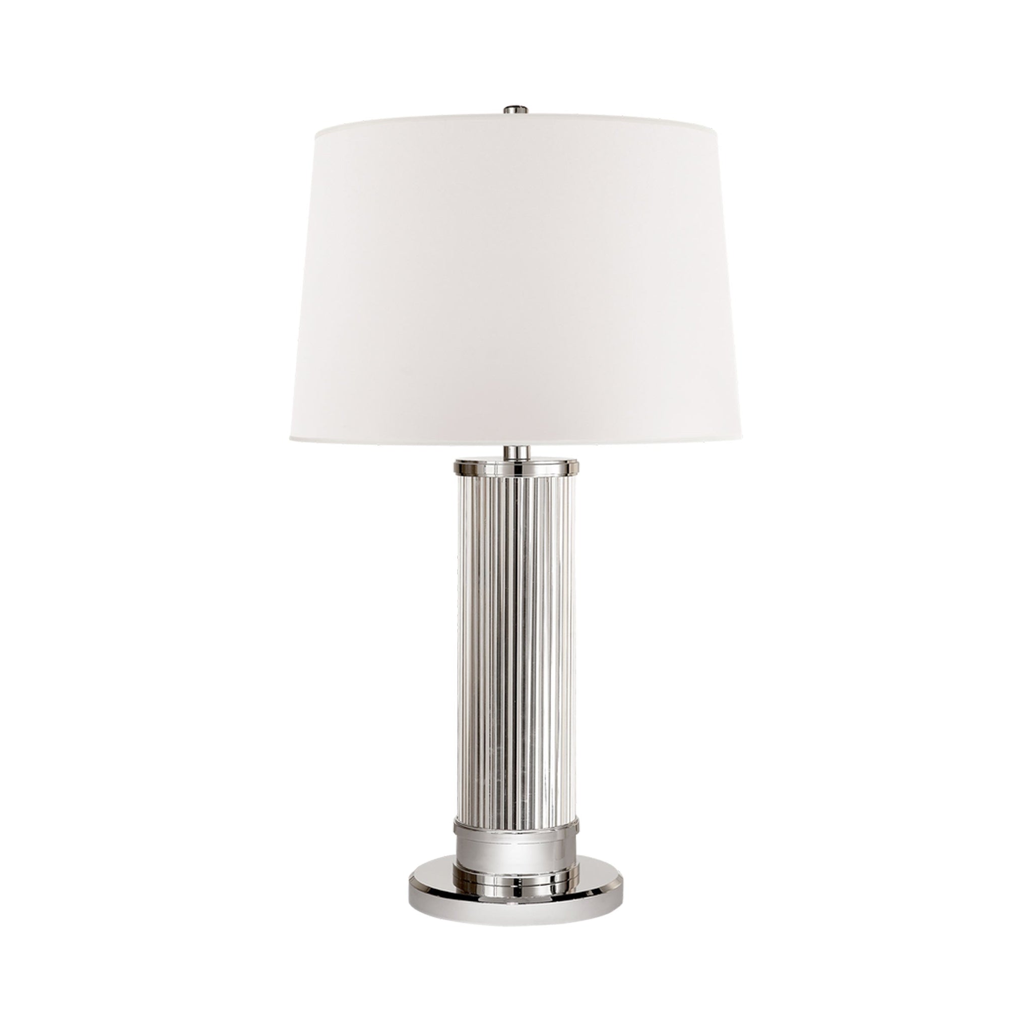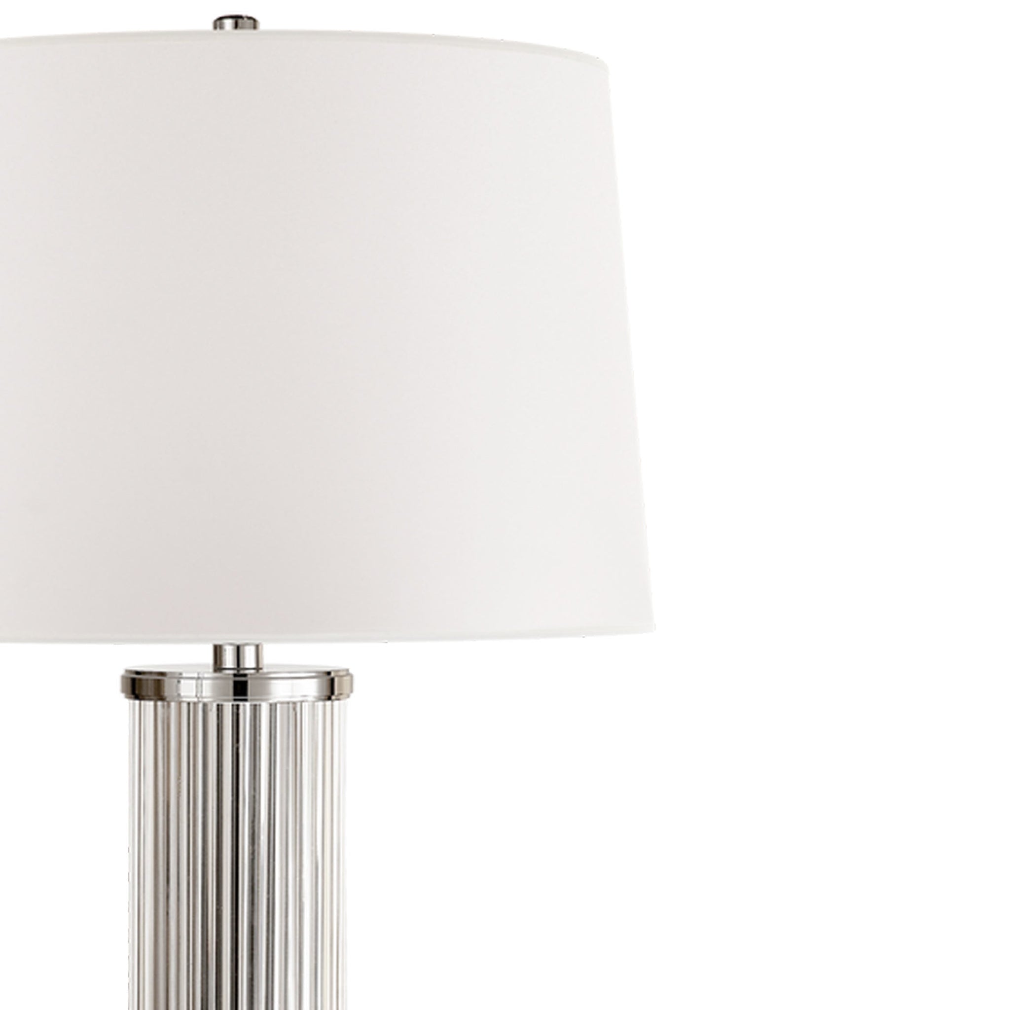 Light reflection is dazzling and sophisticated as the Allen Table Lamp from Visual Comfort Signature becomes a fast favorite. Living rooms and bedrooms welcome this cylinder-shaped lamp featuring vertical glass rods and clean metal framing with engineered accents. Topped with a traditional fabric shade, this lamp is a perfect example of where versatility and decadence converge.