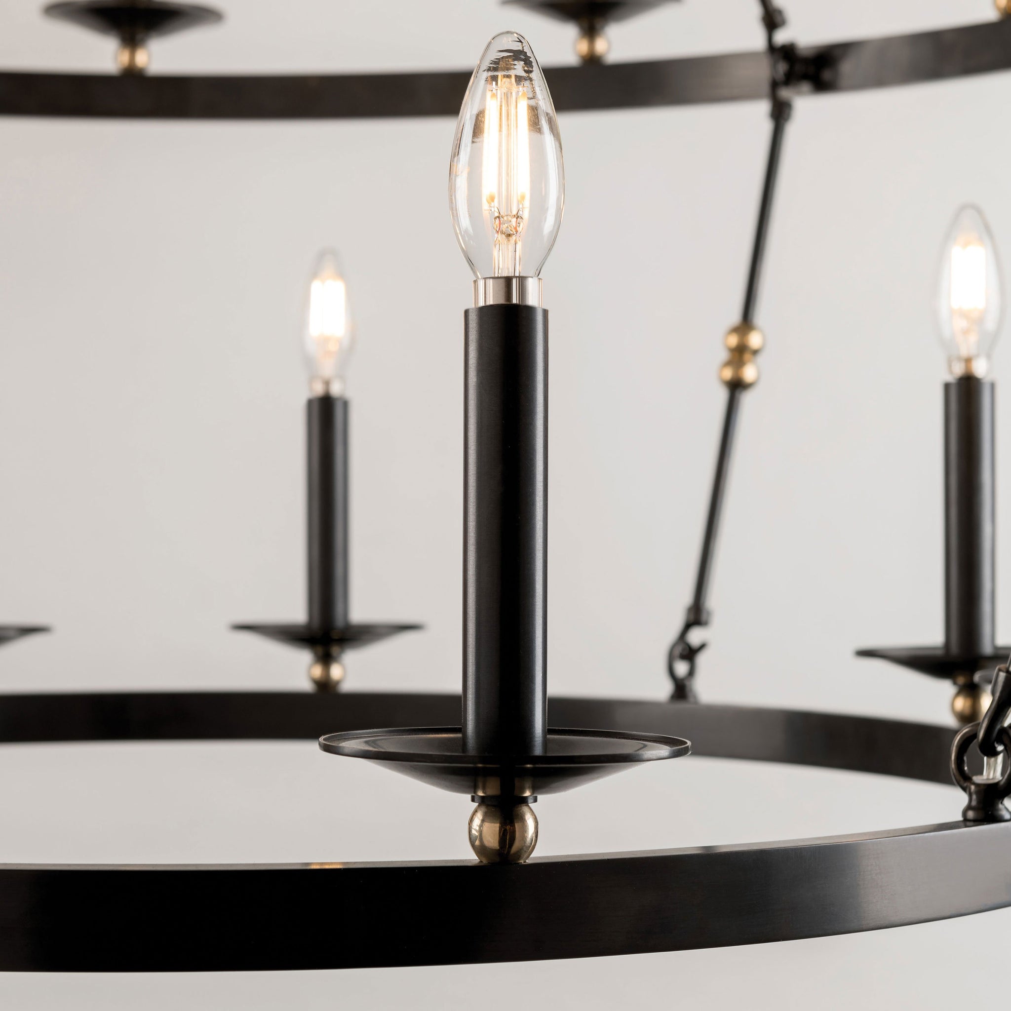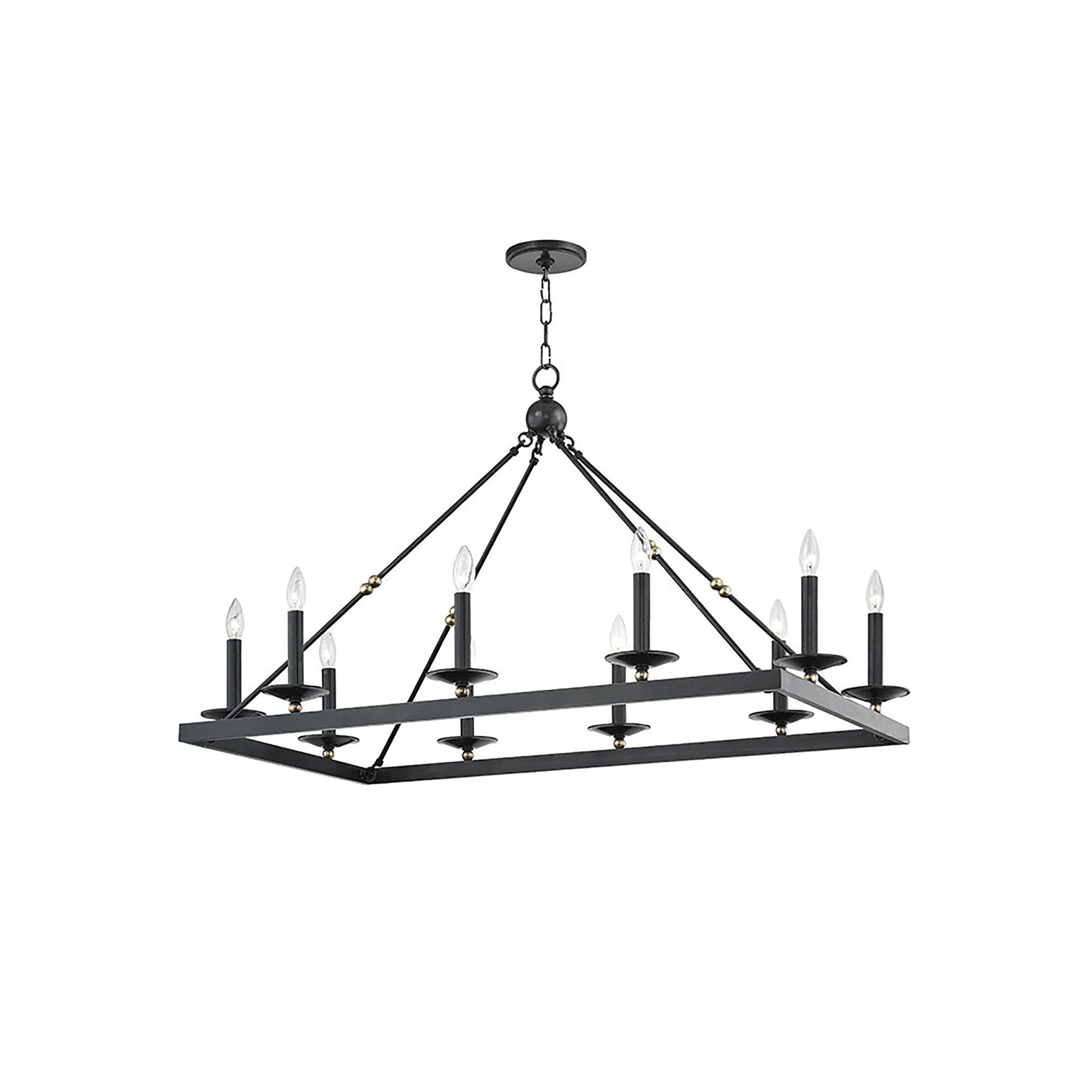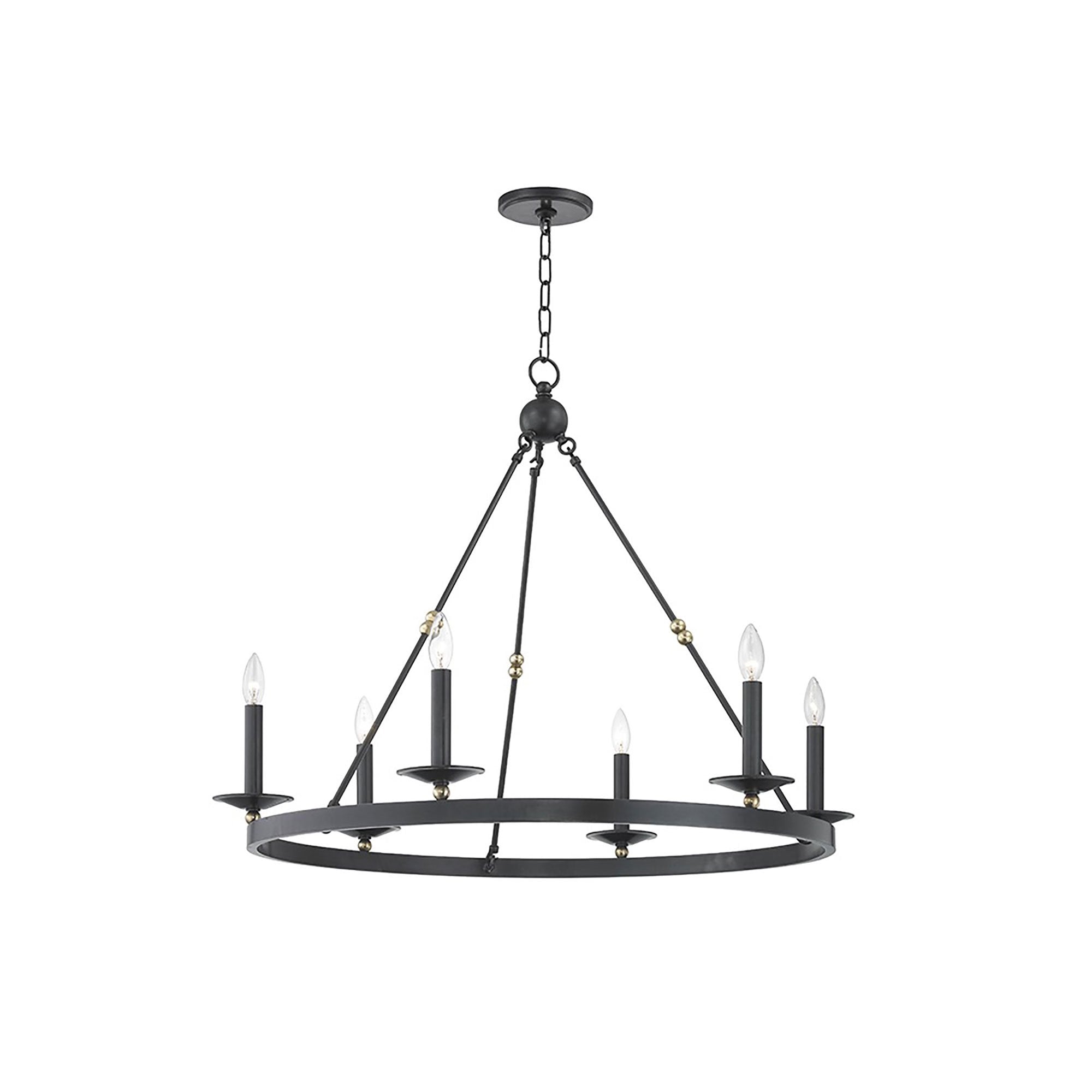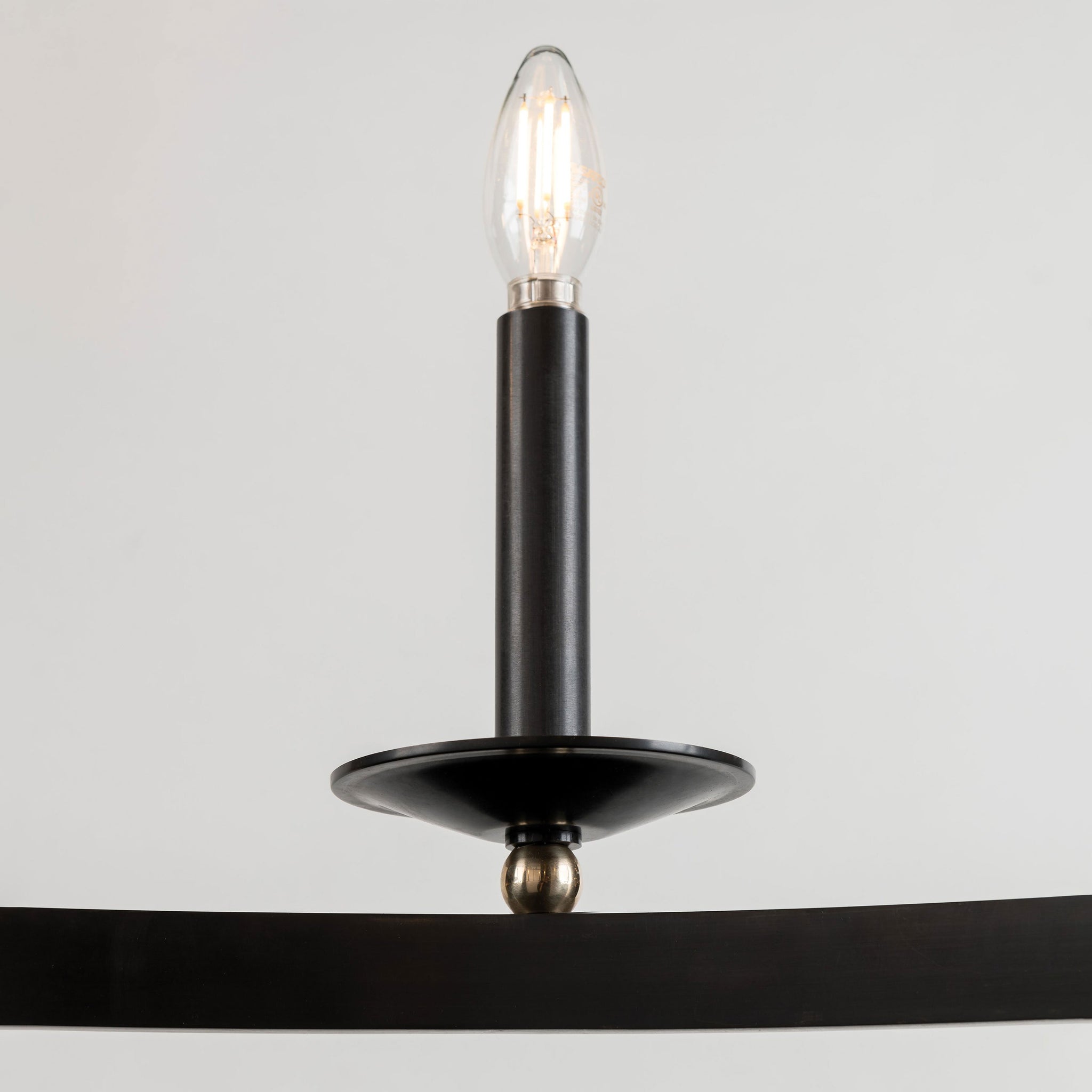 Allendale Chandelier repurposes the rustic, offering a few variations on an enduring primitive chandelier form. In ring or rectangle, Allendale Chandelier presents this form as cleanly as possible, with minor sphere details added at the holder, along the hook-and-rod arms, and beneath the bobeches for contrast. In our usual fashion, the piece is uniform in finish, except for our Old Bronze offering, which adds Aged Brass accents along the ball details beneath the bobeches and in the middle of each arm.