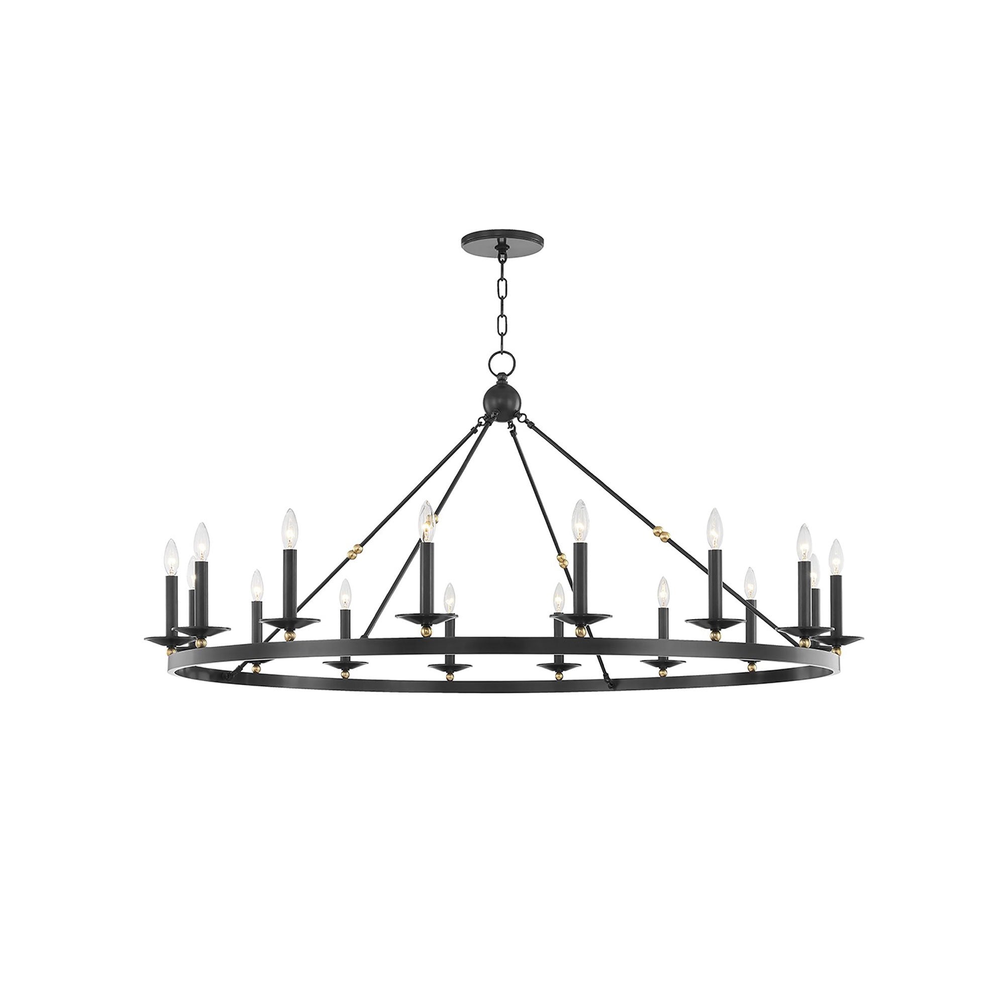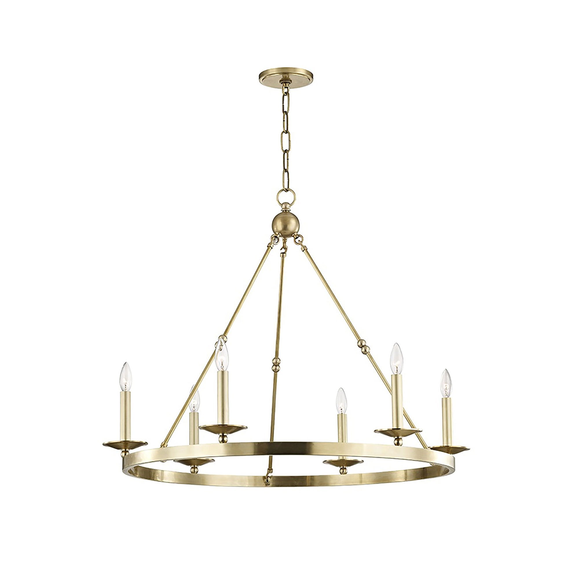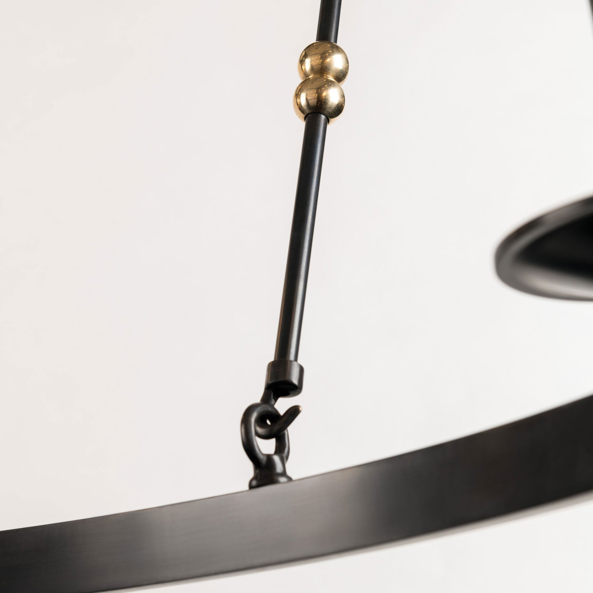 Allendale Chandelier repurposes the rustic, offering a few variations on an enduring primitive chandelier form. In ring or rectangle, Allendale Chandelier presents this form as cleanly as possible, with minor sphere details added at the holder, along the hook-and-rod arms, and beneath the bobeches for contrast. In our usual fashion, the piece is uniform in finish, except for our Old Bronze offering, which adds Aged Brass accents along the ball details beneath the bobeches and in the middle of each arm.