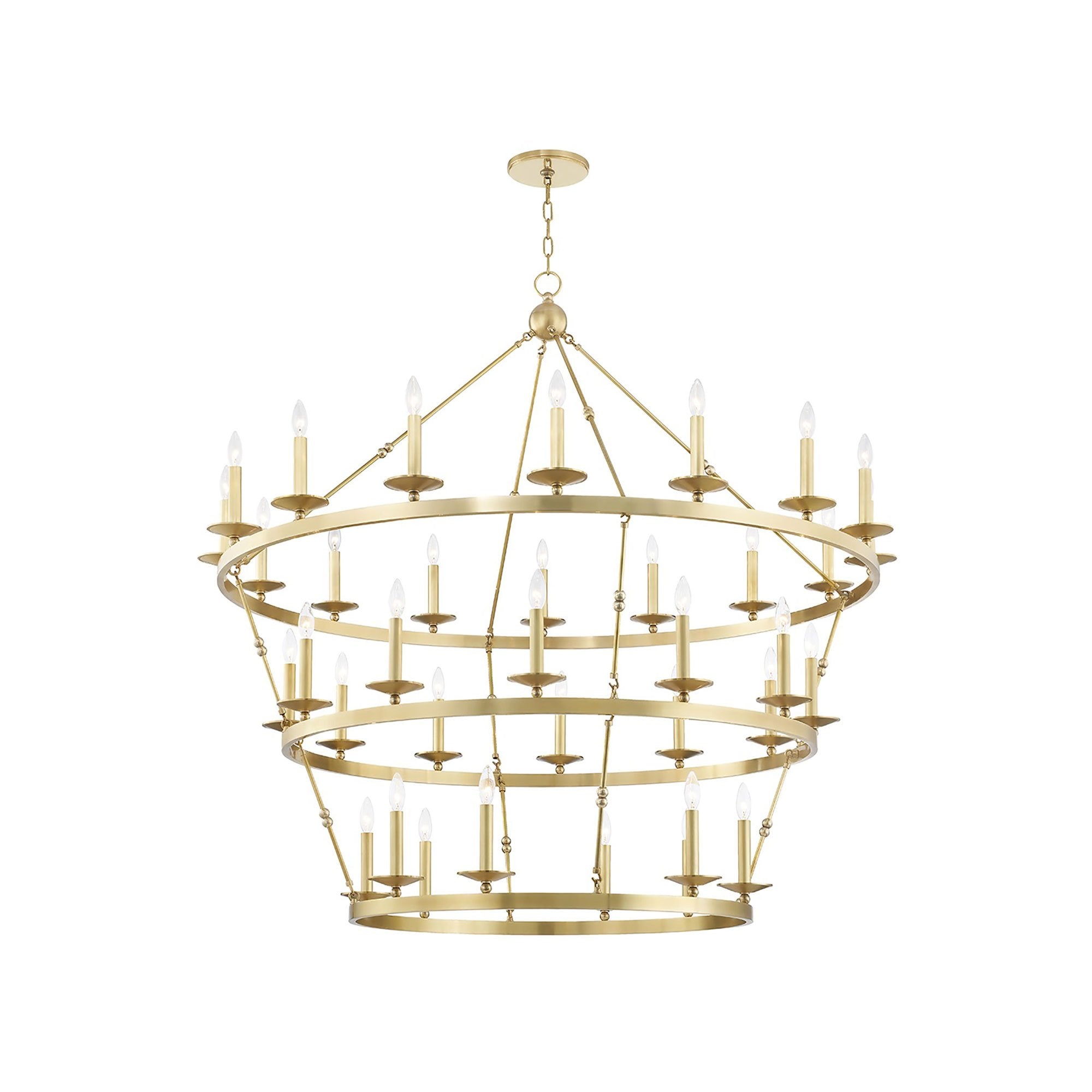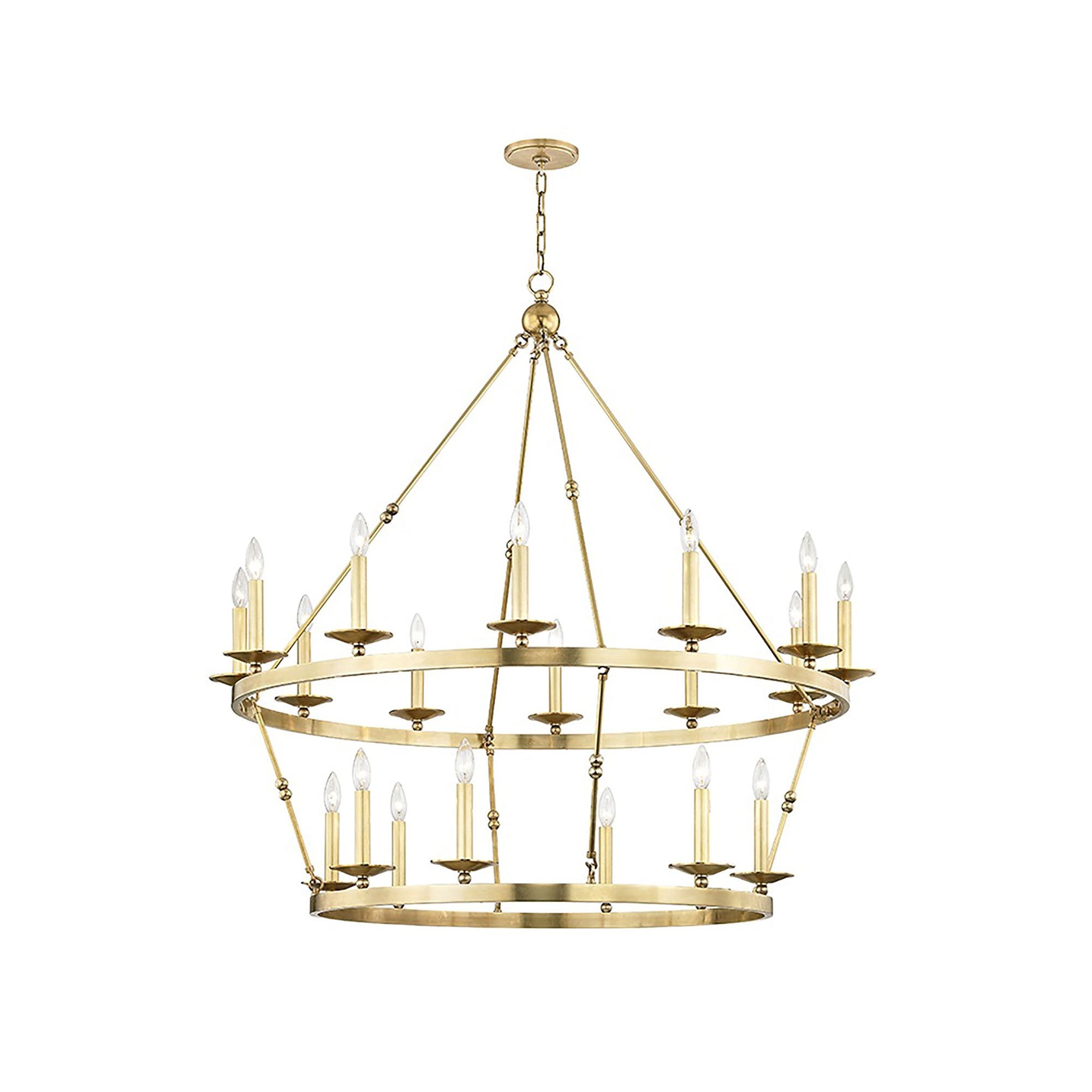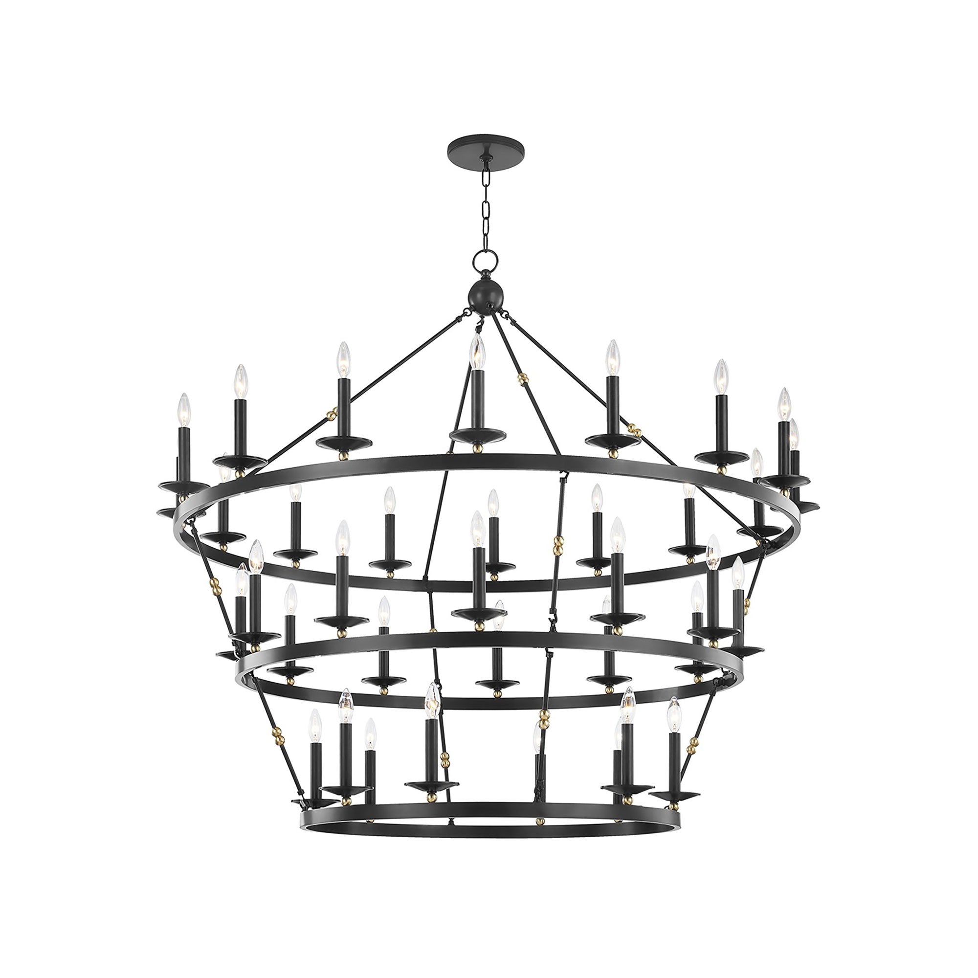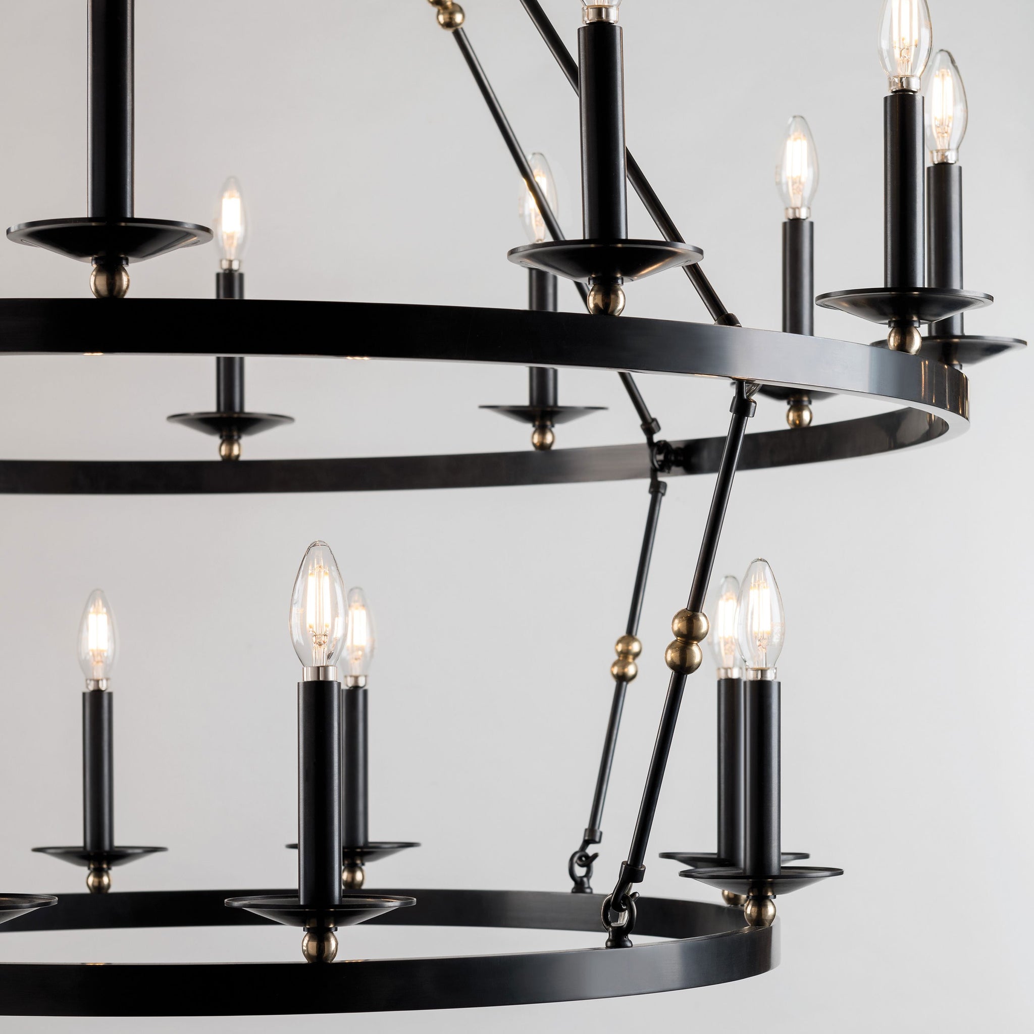Allendale Chandelier repurposes the rustic, offering a few variations on an enduring primitive chandelier form. In ring or rectangle, Allendale Chandelier presents this form as cleanly as possible, with minor sphere details added at the holder, along the hook-and-rod arms, and beneath the bobeches for contrast. In our usual fashion, the piece is uniform in finish, except for our Old Bronze offering, which adds Aged Brass accents along the ball details beneath the bobeches and in the middle of each arm.