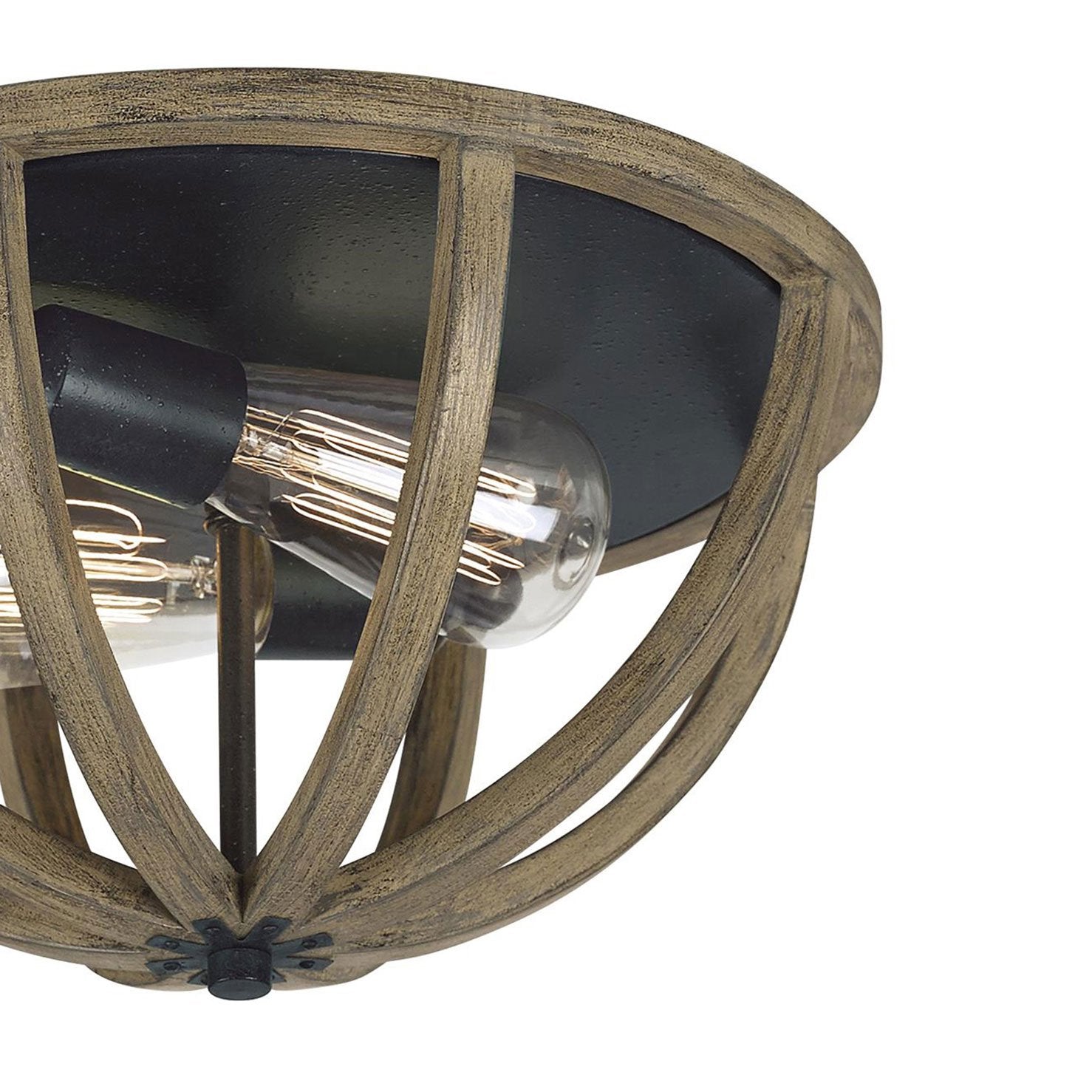 Enclosed with rustic weathered oak finish ribs, the Allier Flush Mount Ceiling Light from Visual Comfort Studio highlights a modern farmhouse interior to perfection.