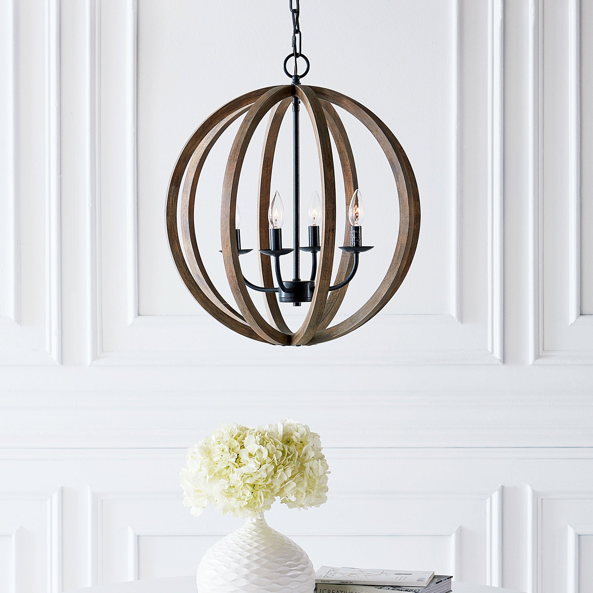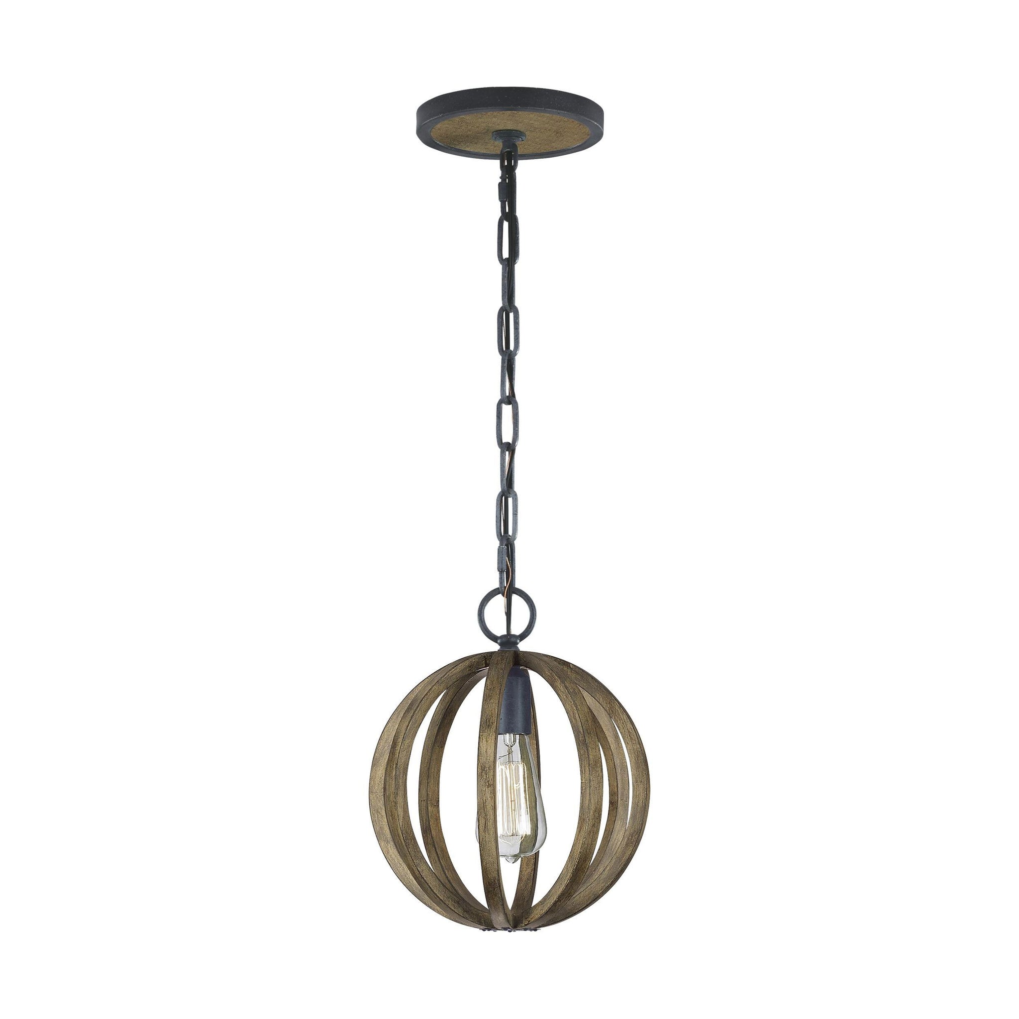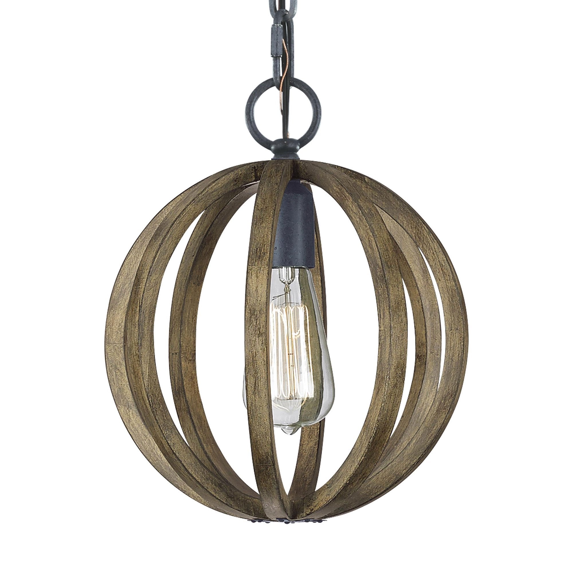 Weathered oak finish ribs create an open orb silhouette for the intriguing Allier Pendant Light from Visual Comfort Studio.