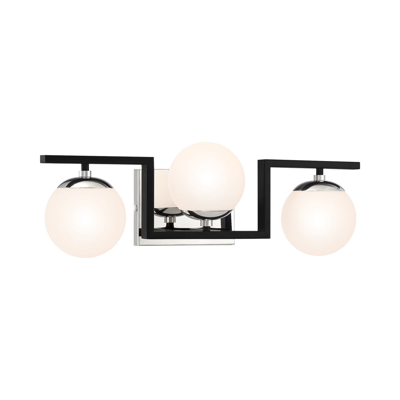 The Alluria ll Bath Vanity Light from George Kovacs checks all the boxes of a bold, stylish fixture that transforms the personality of a master or guest bathroom. Transitional and modern spaces come to life with this creative, artisan-focused light featuring coal and polished nickel finish framing in a chic geometric shape. Adding elegance are charming etched opal finish globe shades that send ambient lighting to illuminate a repurposed bathroom.