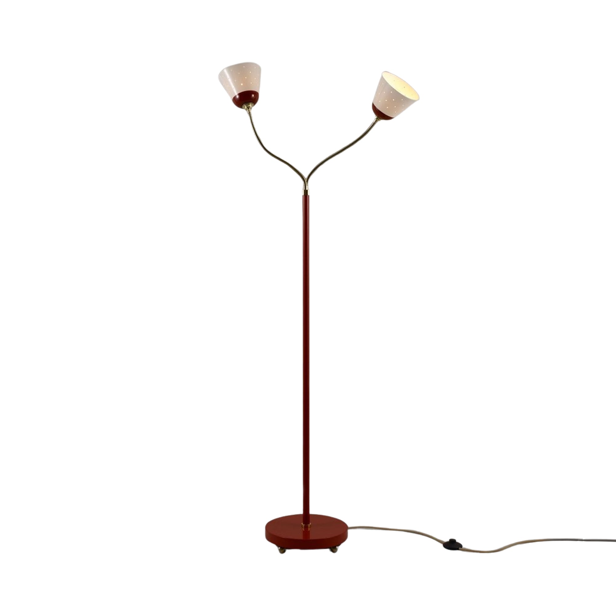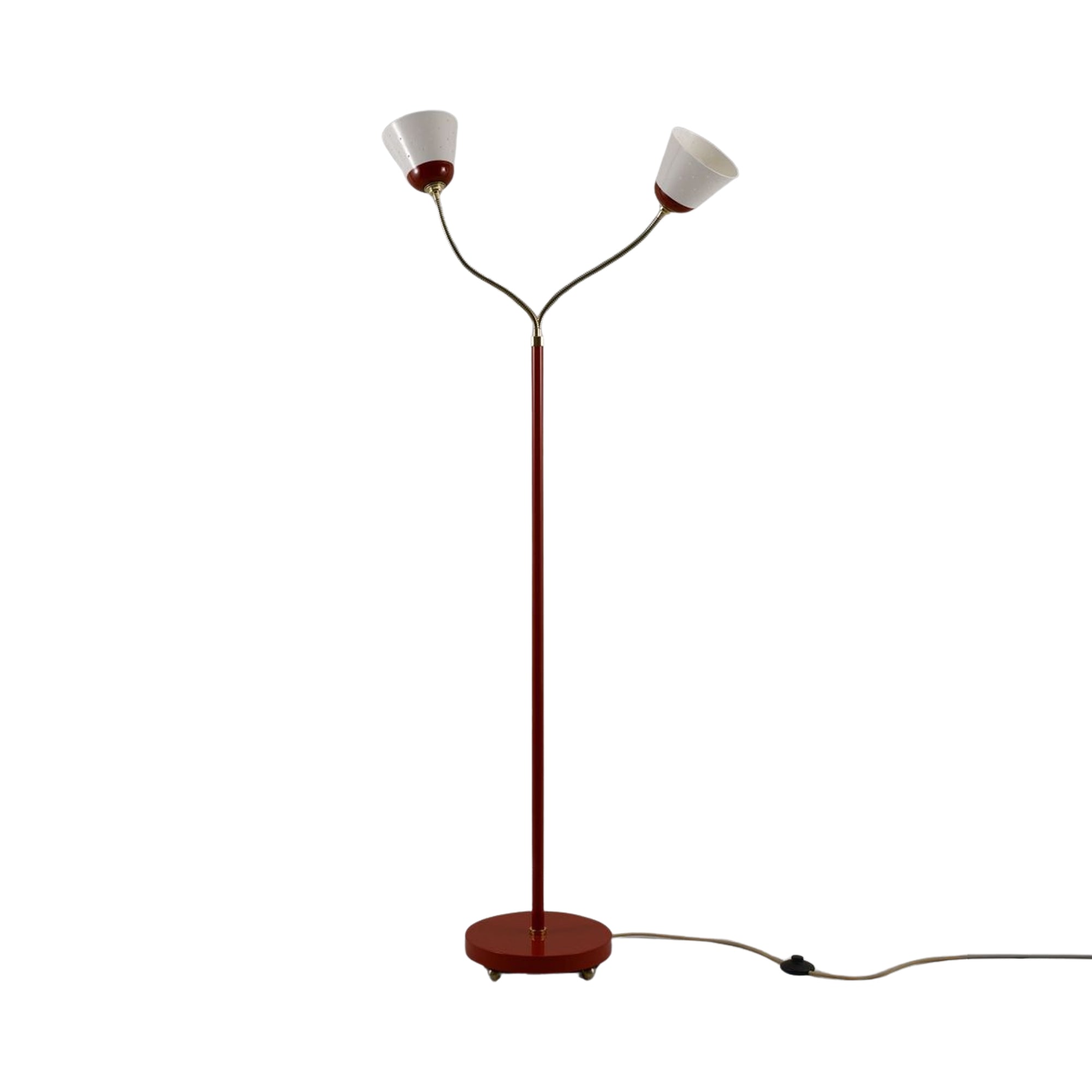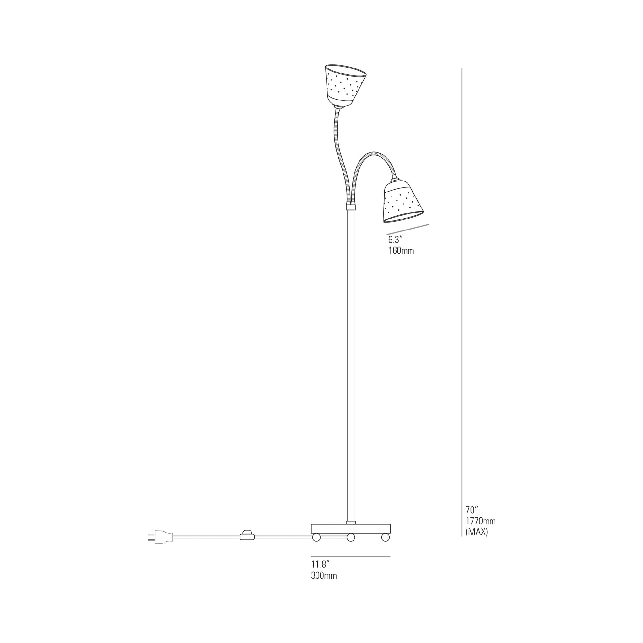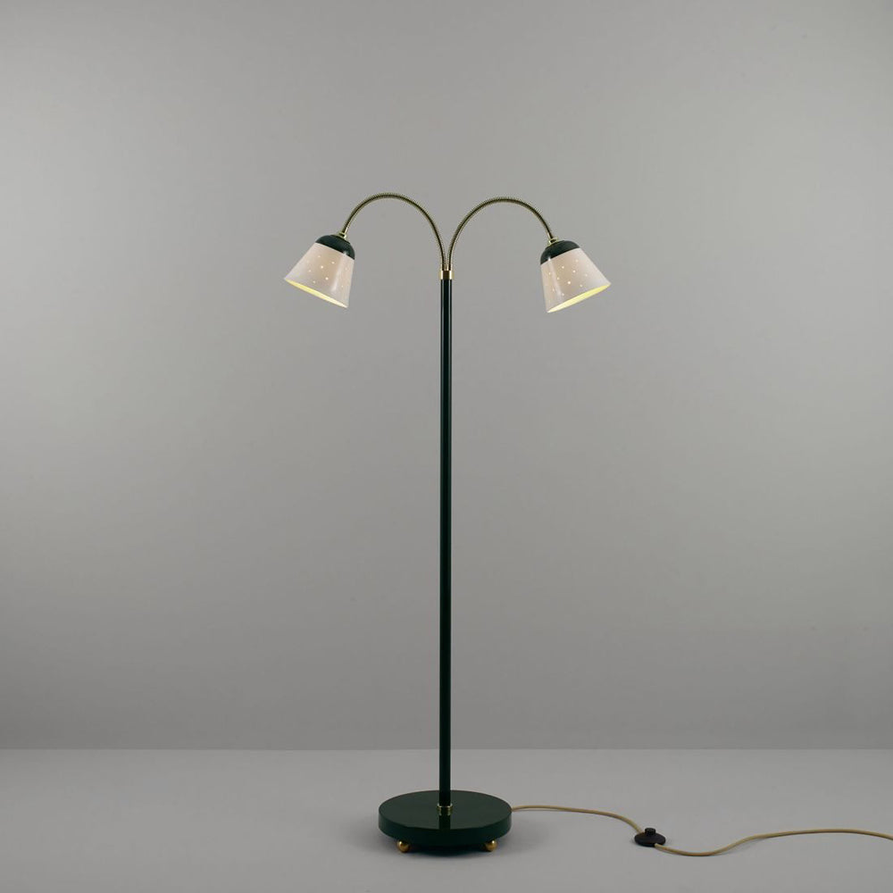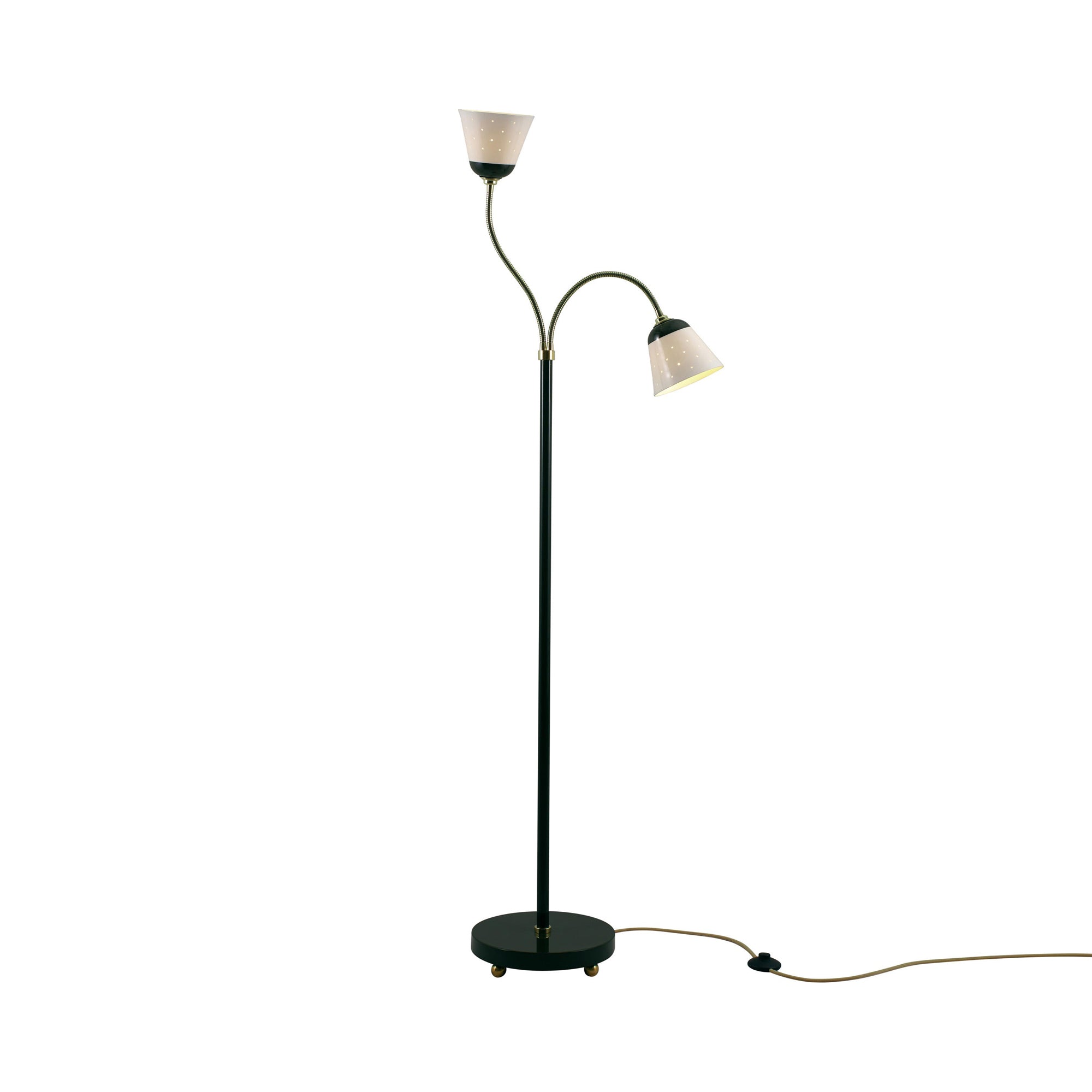 The Alma Floor Lamp from Original BTC revisits a mid-century design era with a classic and rich aesthetic. This two-light lamp delivers inherent symmetry at its starting point, customized with manually adjustable machined stems clinging to delightful shades as lighting angles shift with desirable effects.