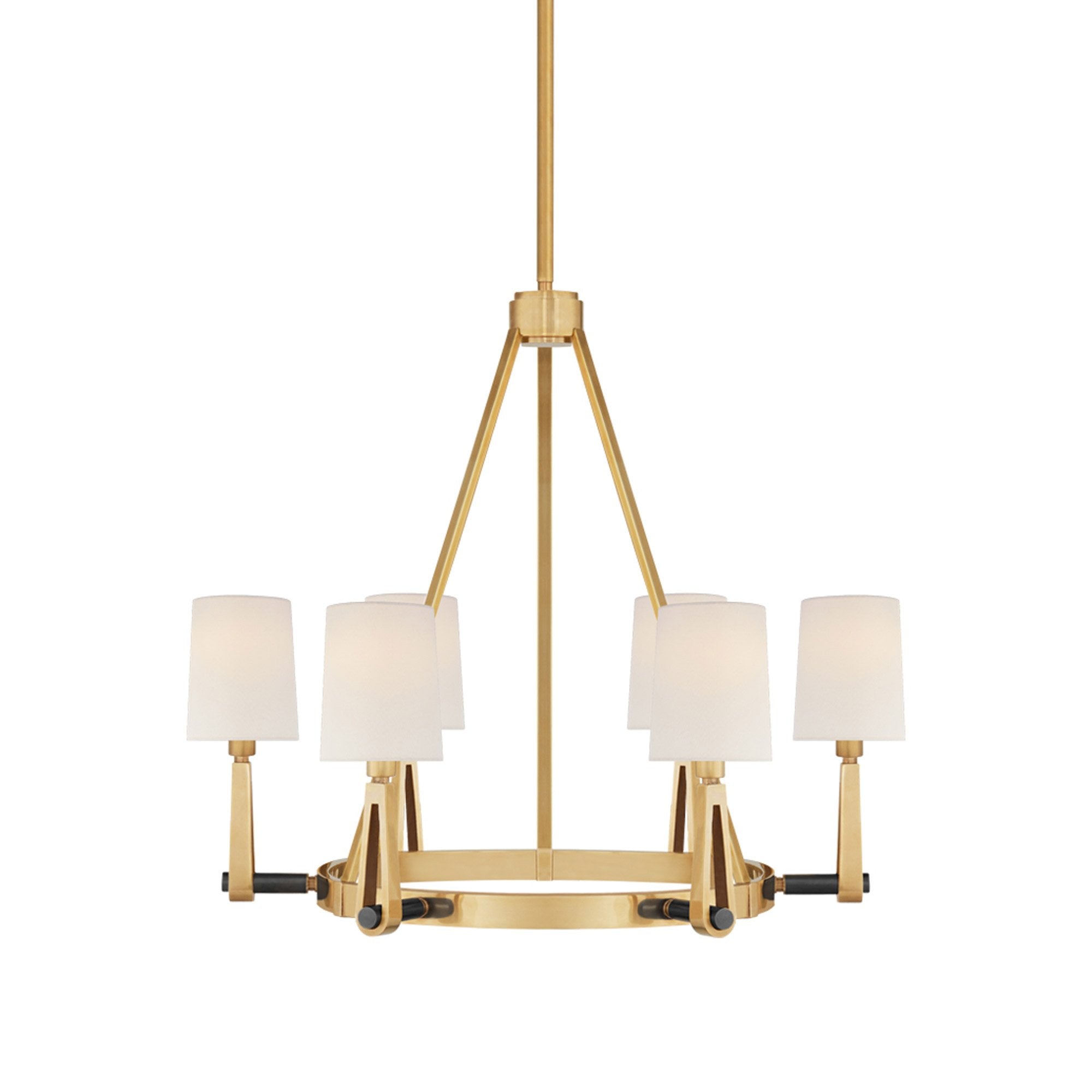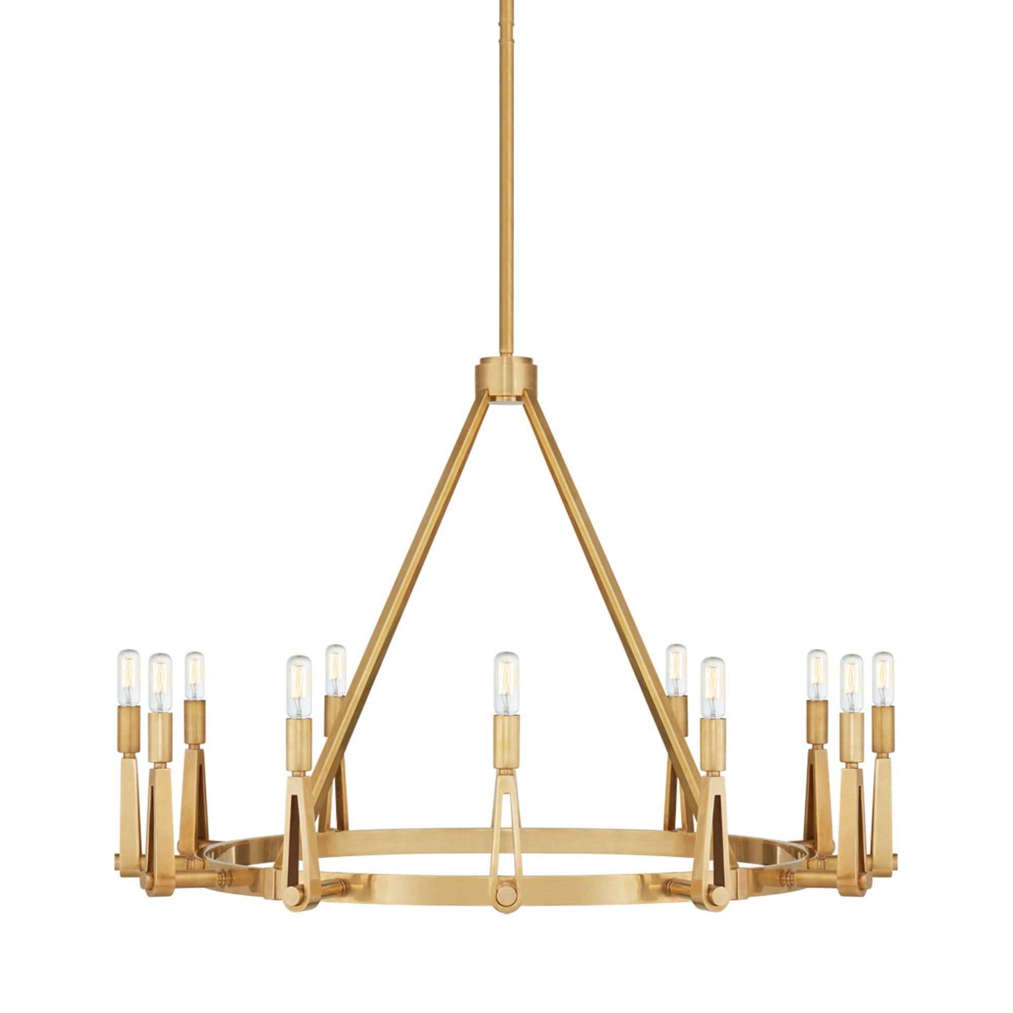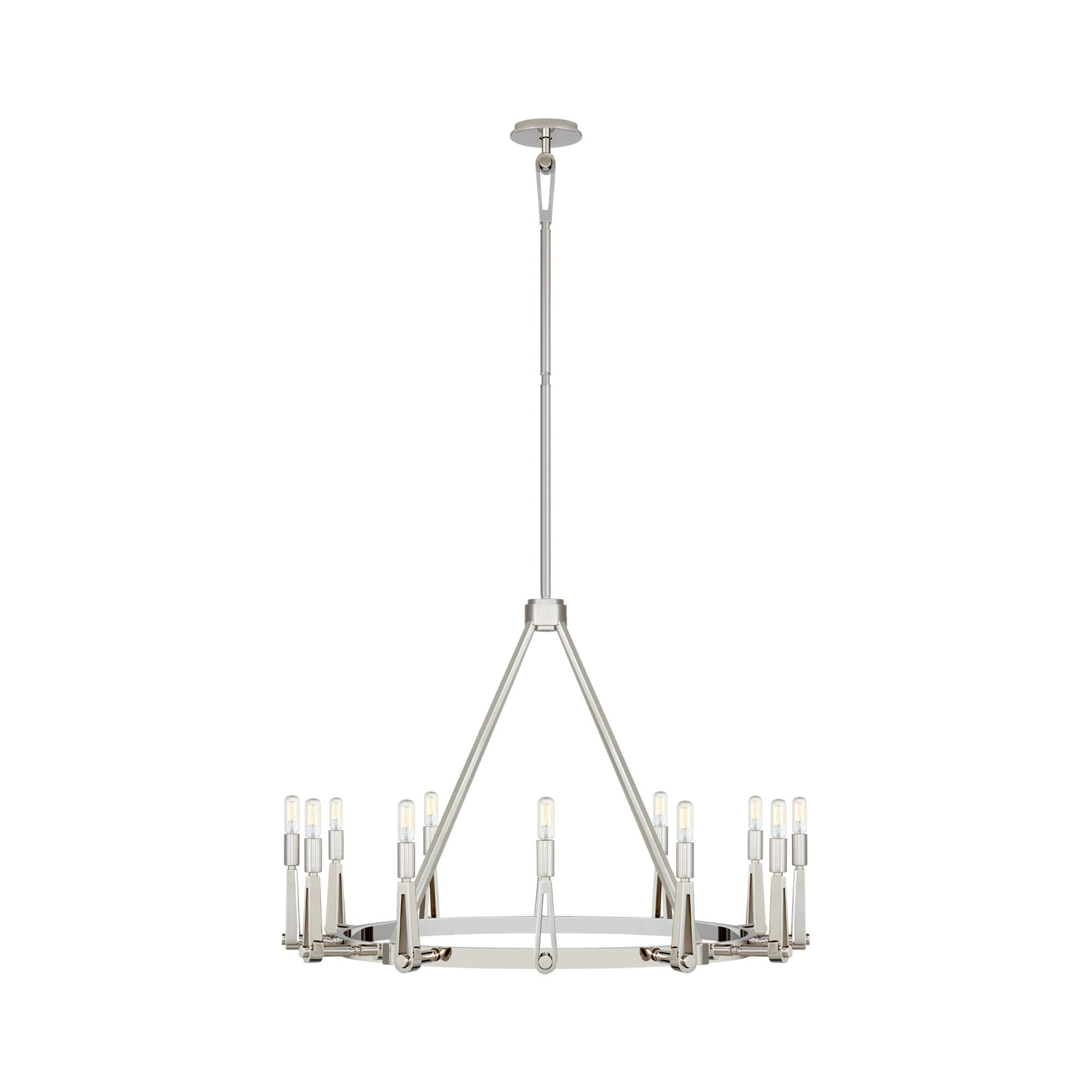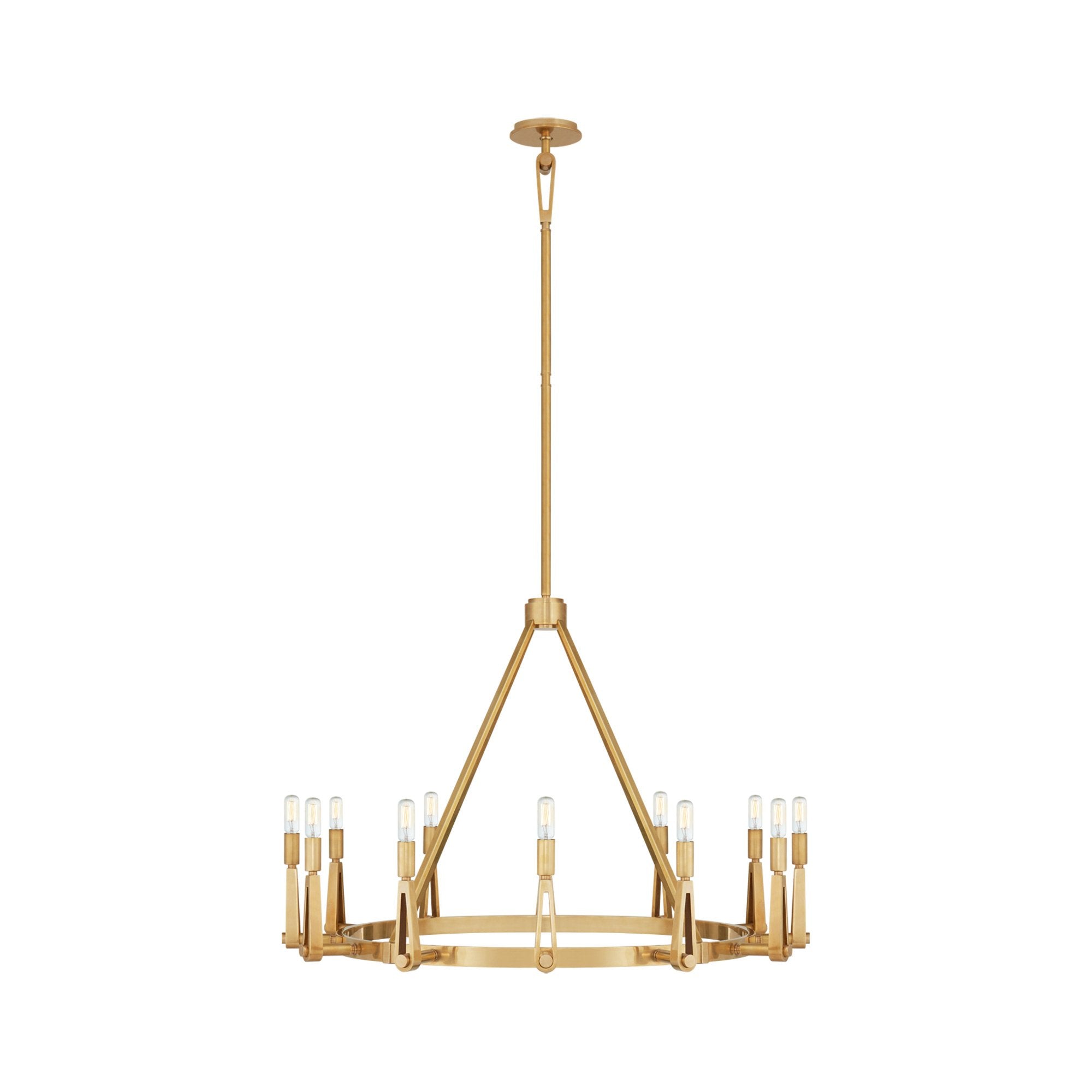 The Alpha Chandelier from Visual Comfort Signature reflects a modern version of Euro castle-inspired flavor, keeping its build slender and stylish. This decadent light blends geometric shapes with a circular frame showcasing tall, slender candelabra-style bulb sockets.