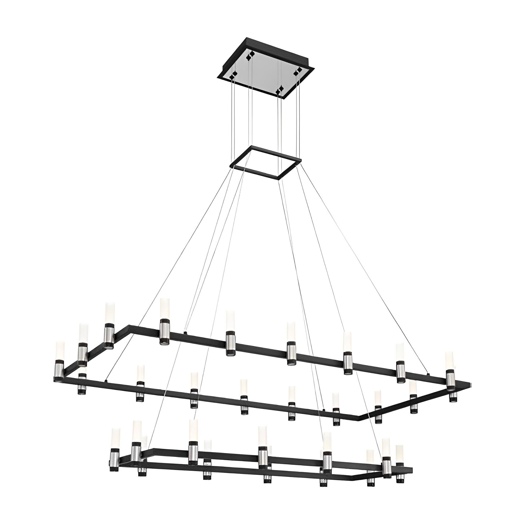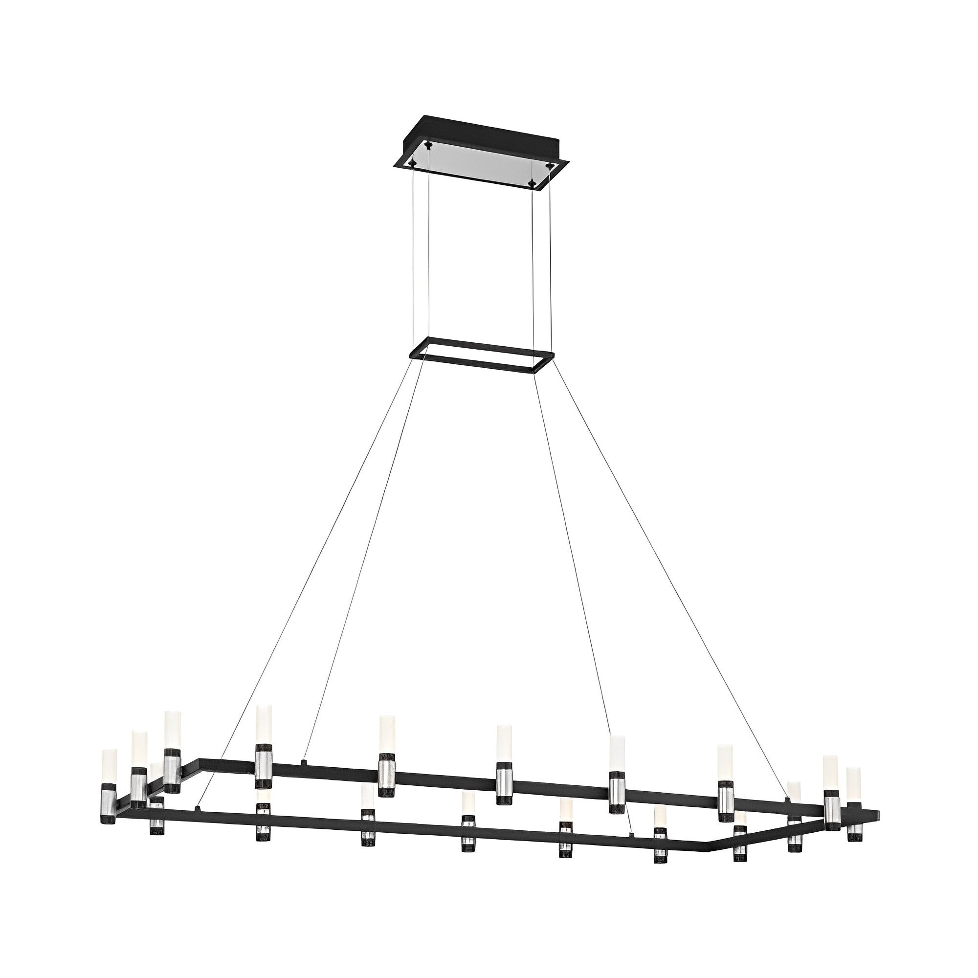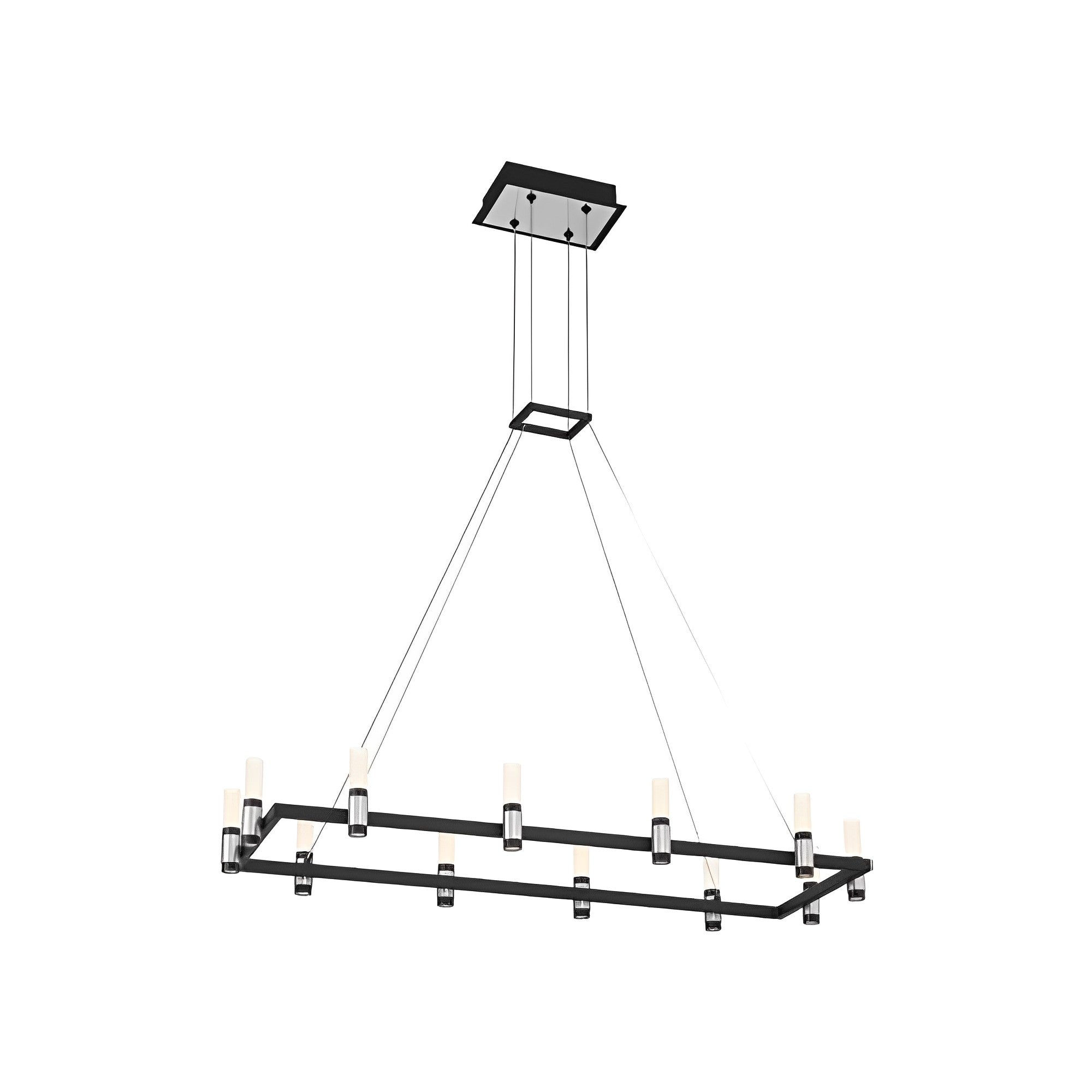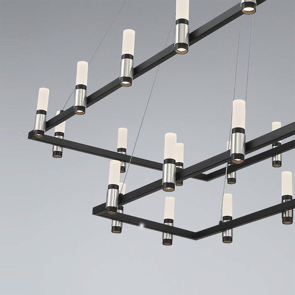 Embrace a dramatic version of Euro-inspired aesthetics with the Altamont LED Rectangular Chandelier from Eurofase. Inspired by an updated castle motif, this openwork metal fixture offers simplicity with a rectangular black finish metal frame hosting sleek black and satin nickel holders capped with cylinder acrylic bulbs.