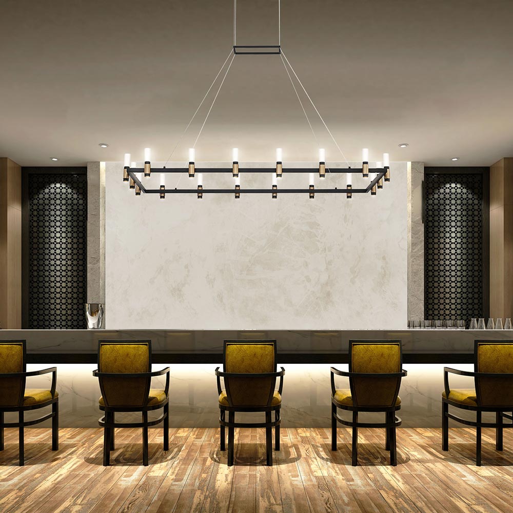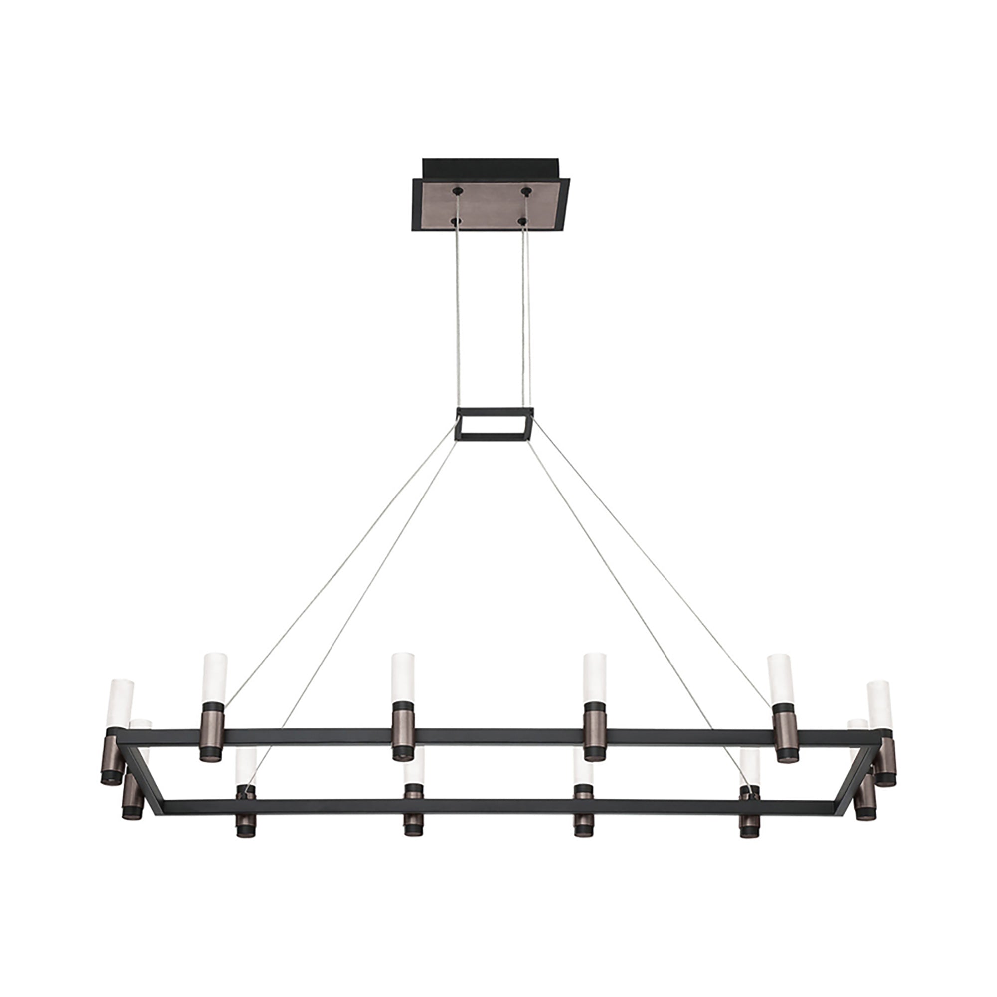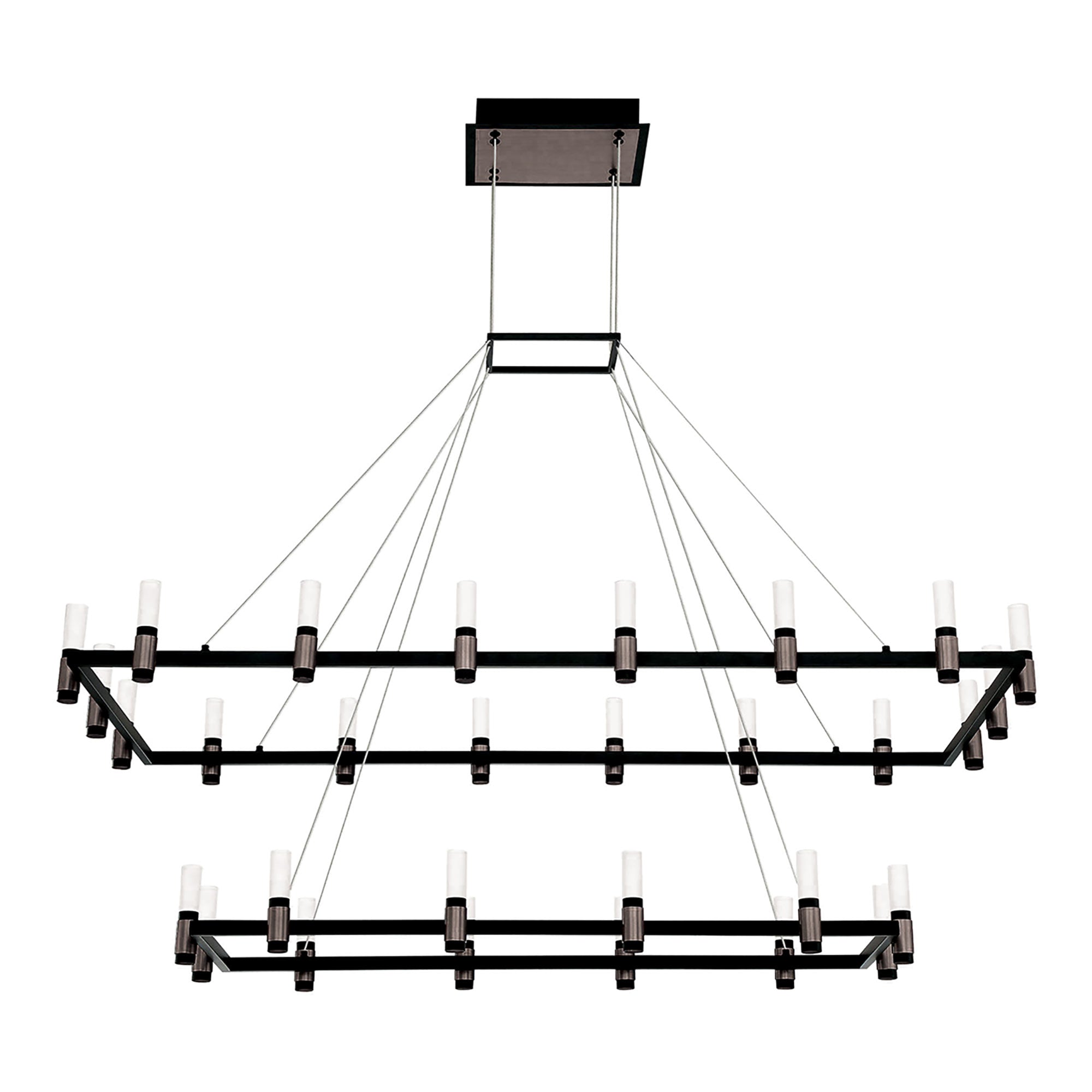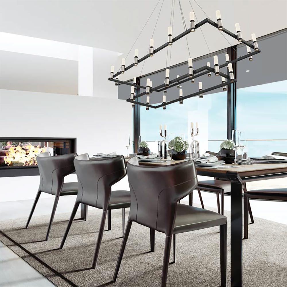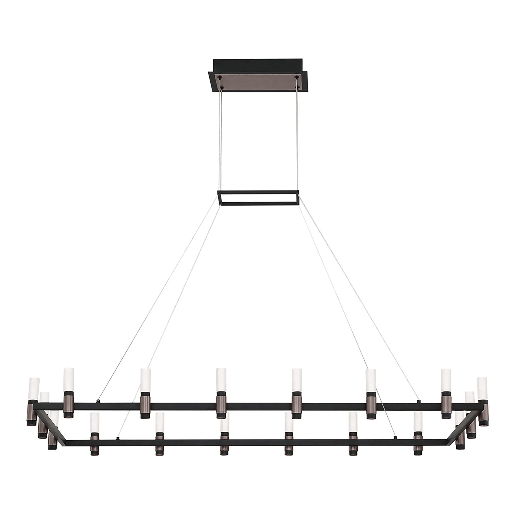 Embrace a dramatic version of Euro-inspired aesthetics with the Altamont LED Rectangular Chandelier from Eurofase. Inspired by an updated castle motif, this openwork metal fixture offers simplicity with a rectangular black finish metal frame hosting sleek black and satin nickel holders capped with cylinder acrylic bulbs.
