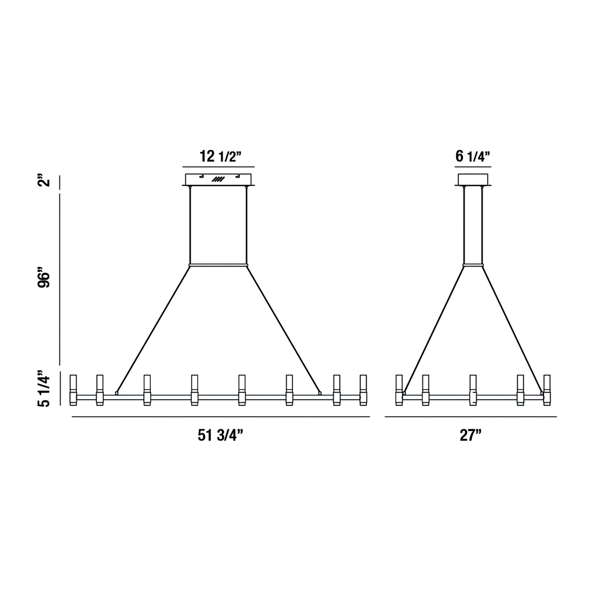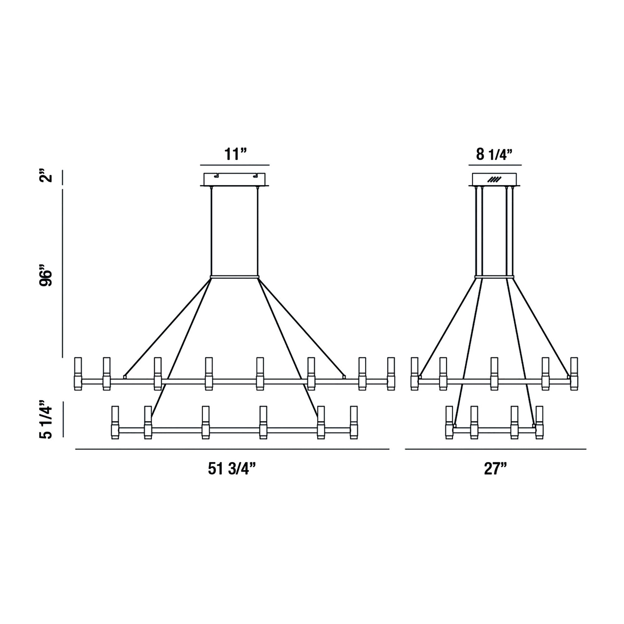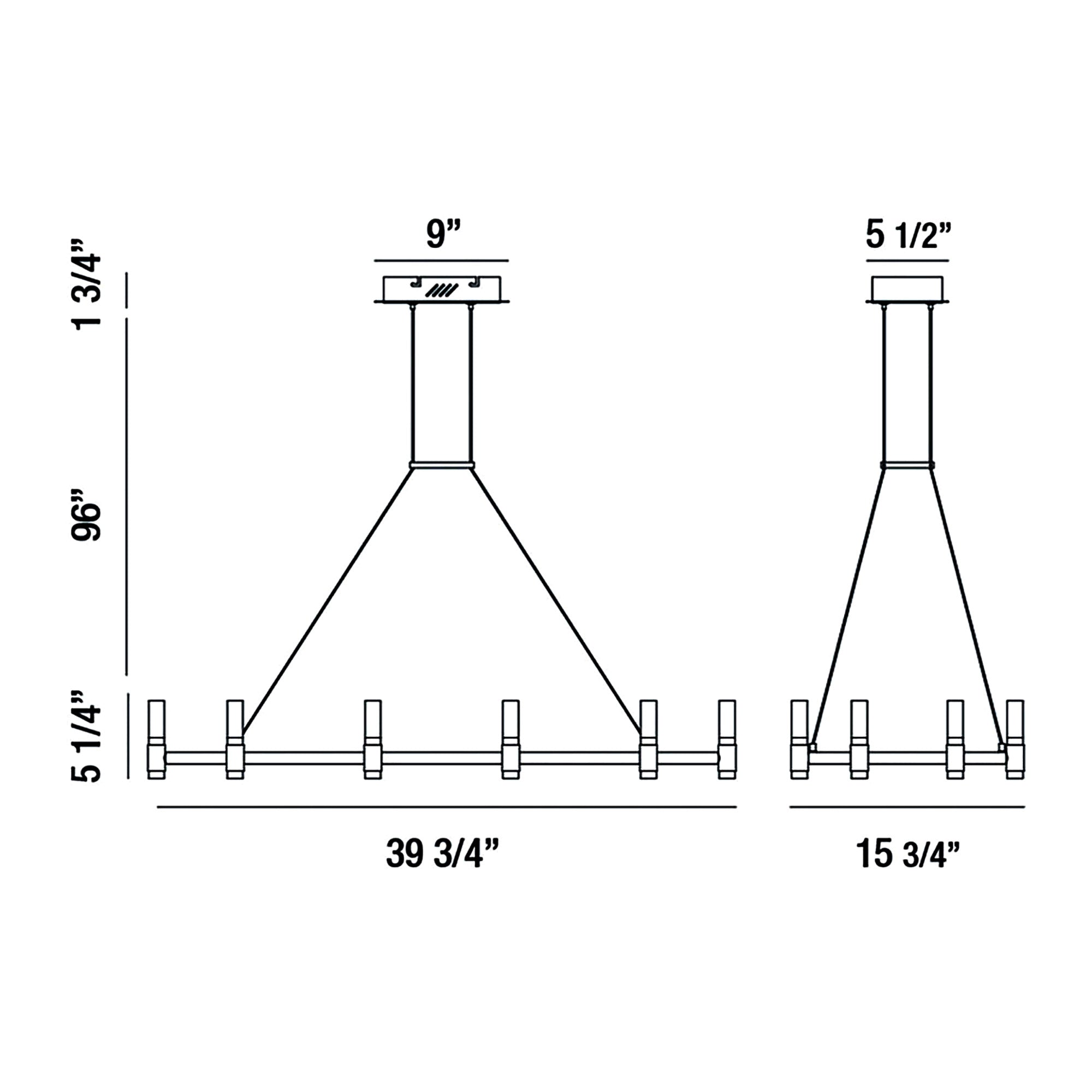- 12-Light: 39.75"W X 5.25"H; 103" max height